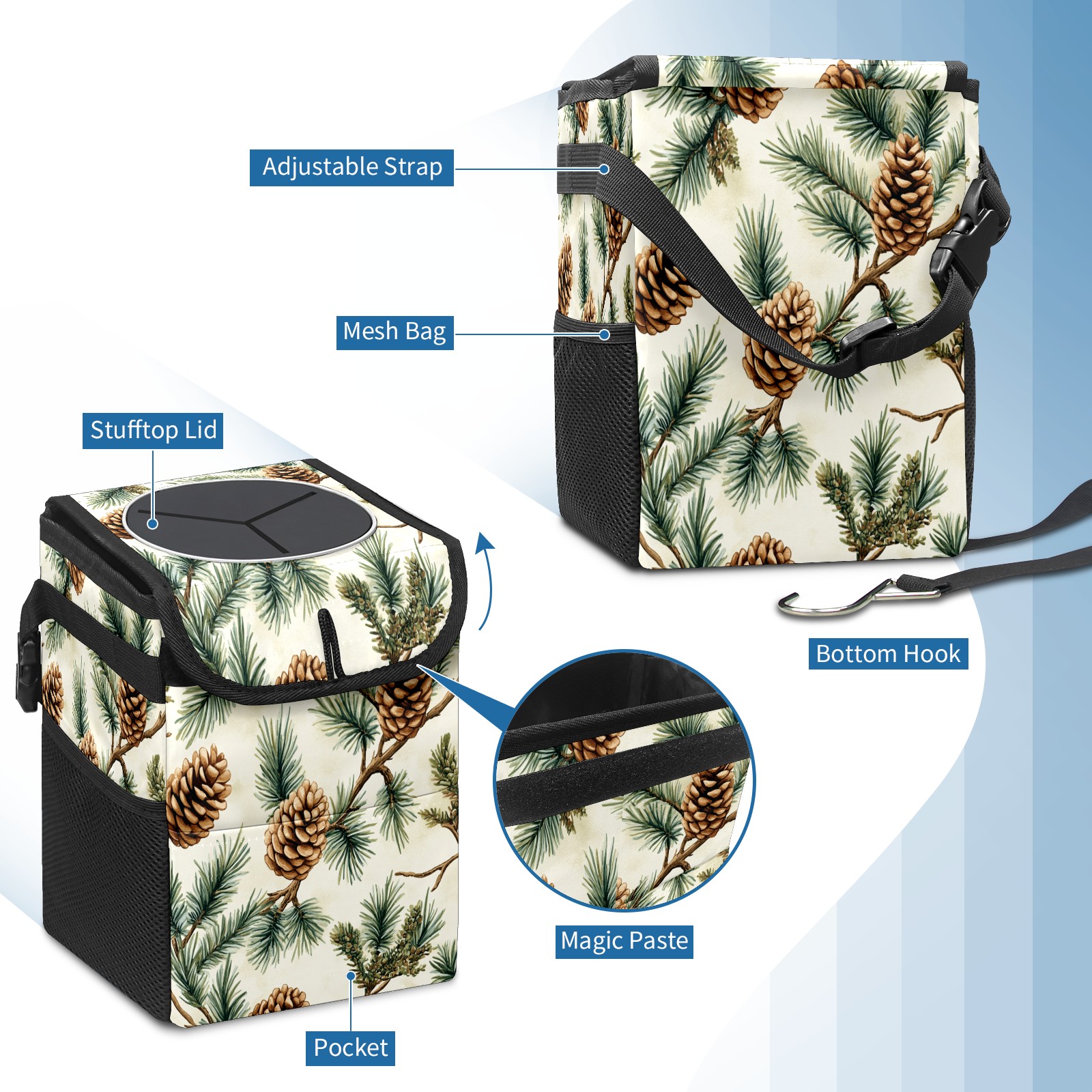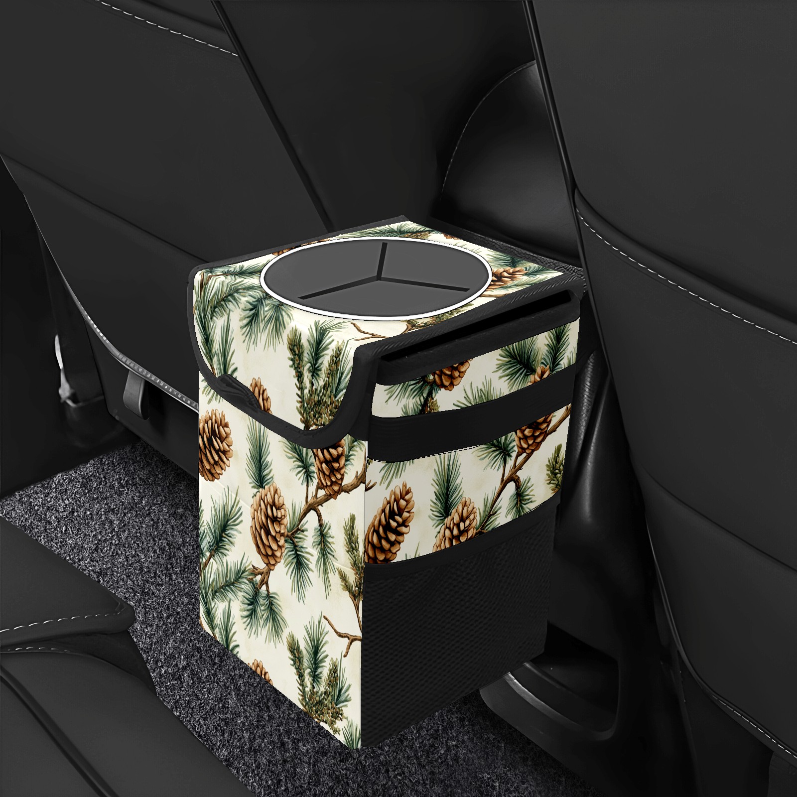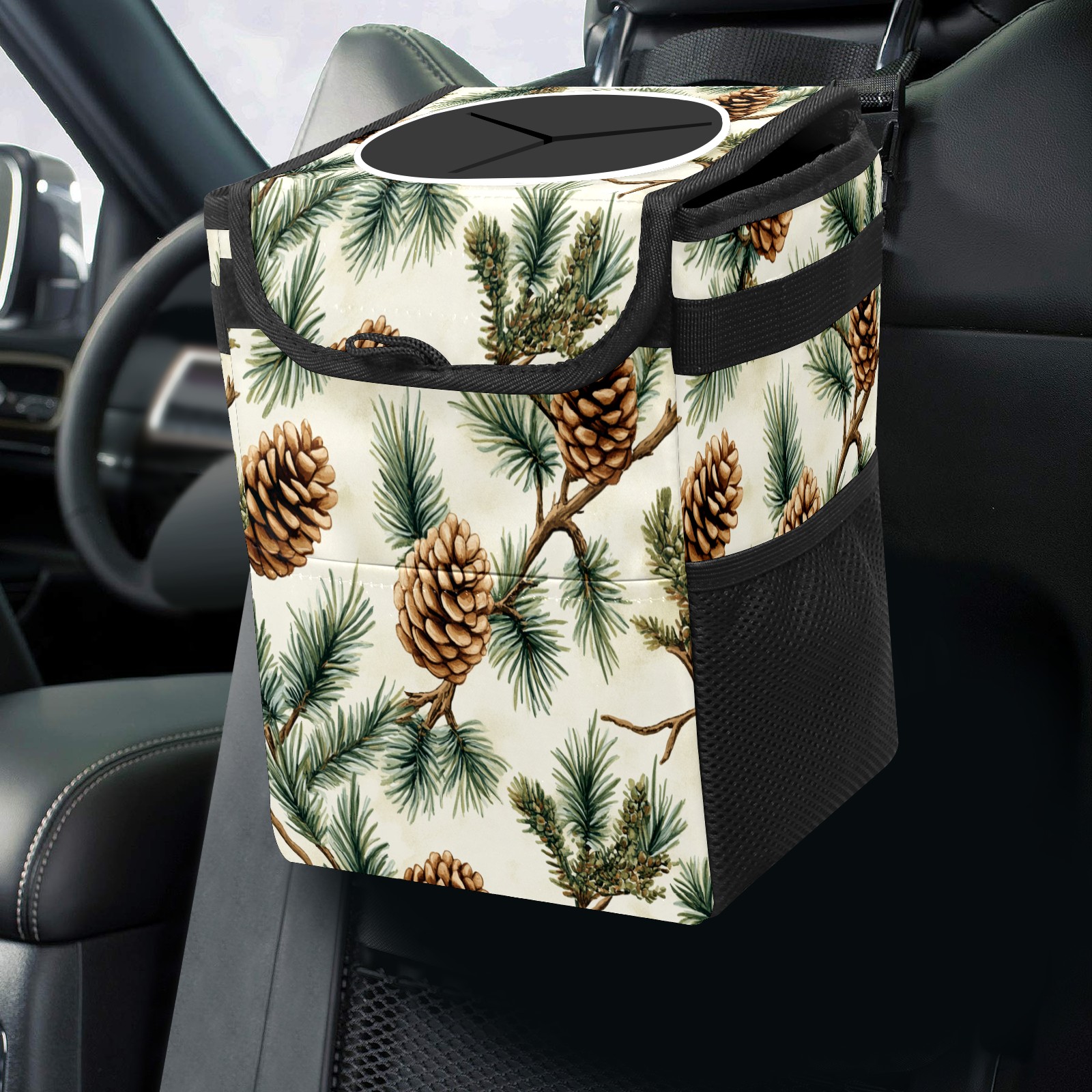Universal Hanging Car Trash Can - Leakproof Design with Secure Lid | Fits SUV, Truck, Van | Front & Back Seat Friendly | Smart Automotive Accessory Pine Cone Pattern