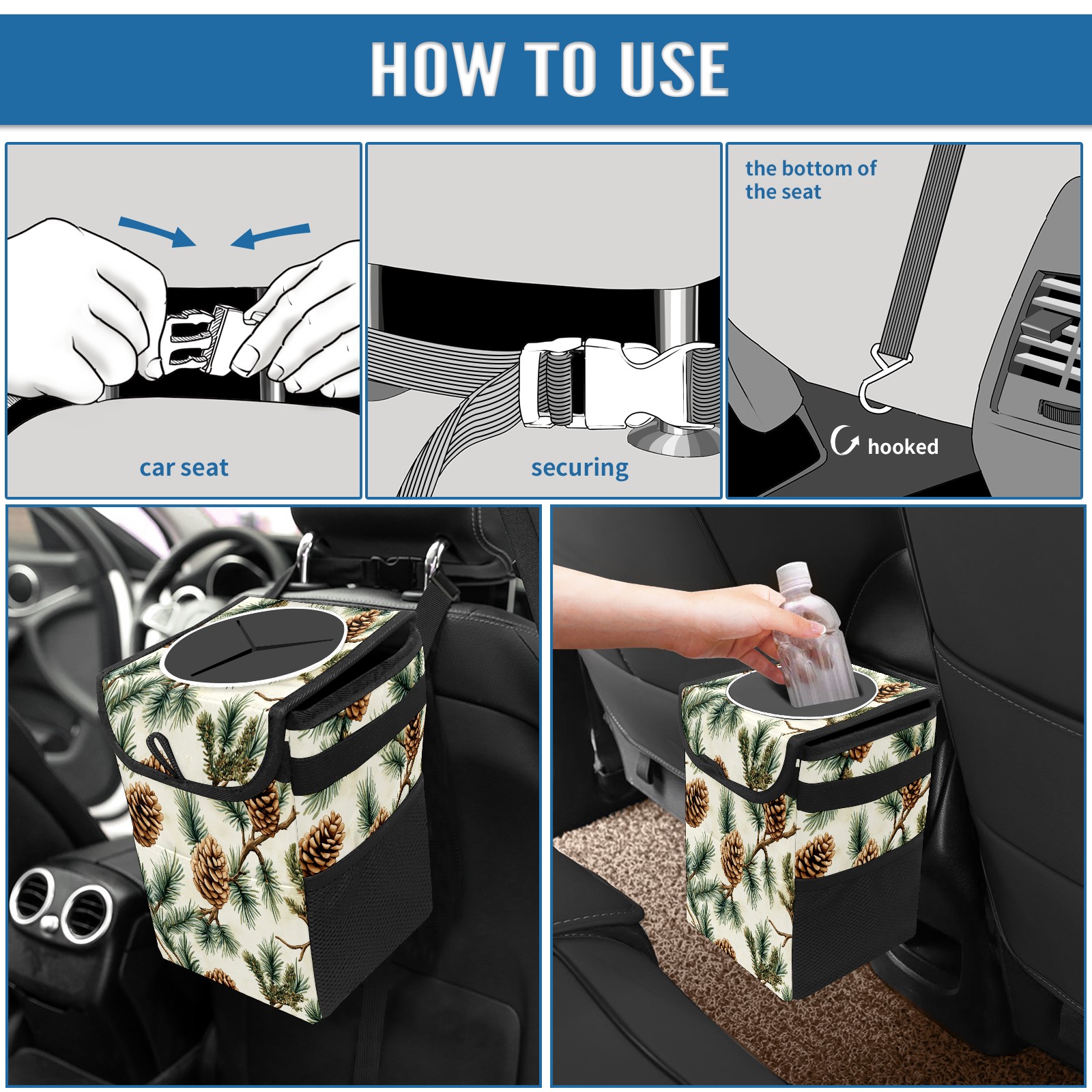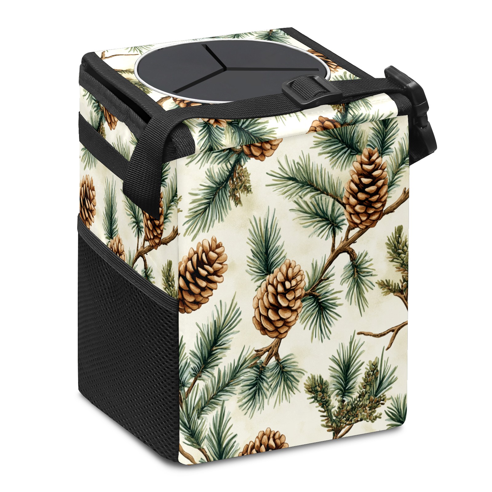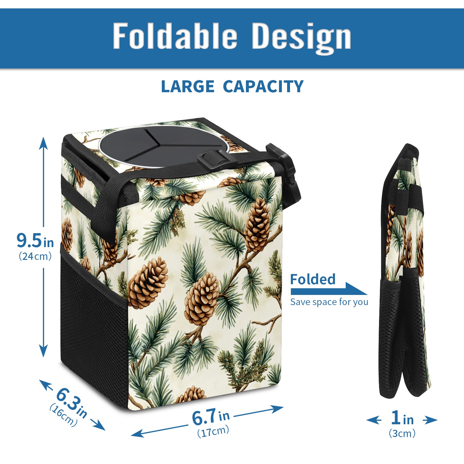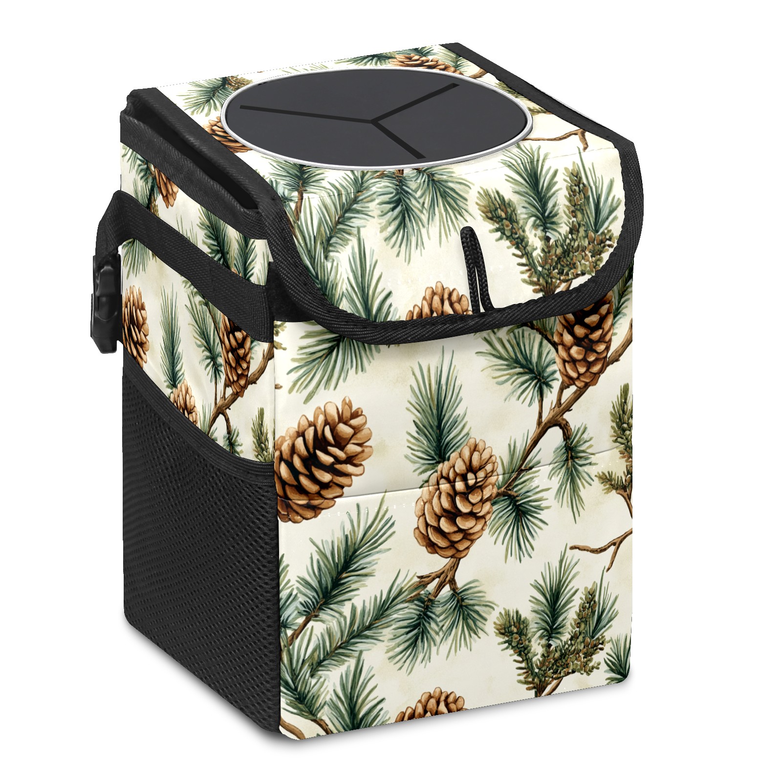 Universal Hanging Car Trash Can - Leakproof Design with Secure Lid | Fits SUV, Truck, Van | Front & Back Seat Friendly | Smart Automotive Accessory Pine Cone Pattern
