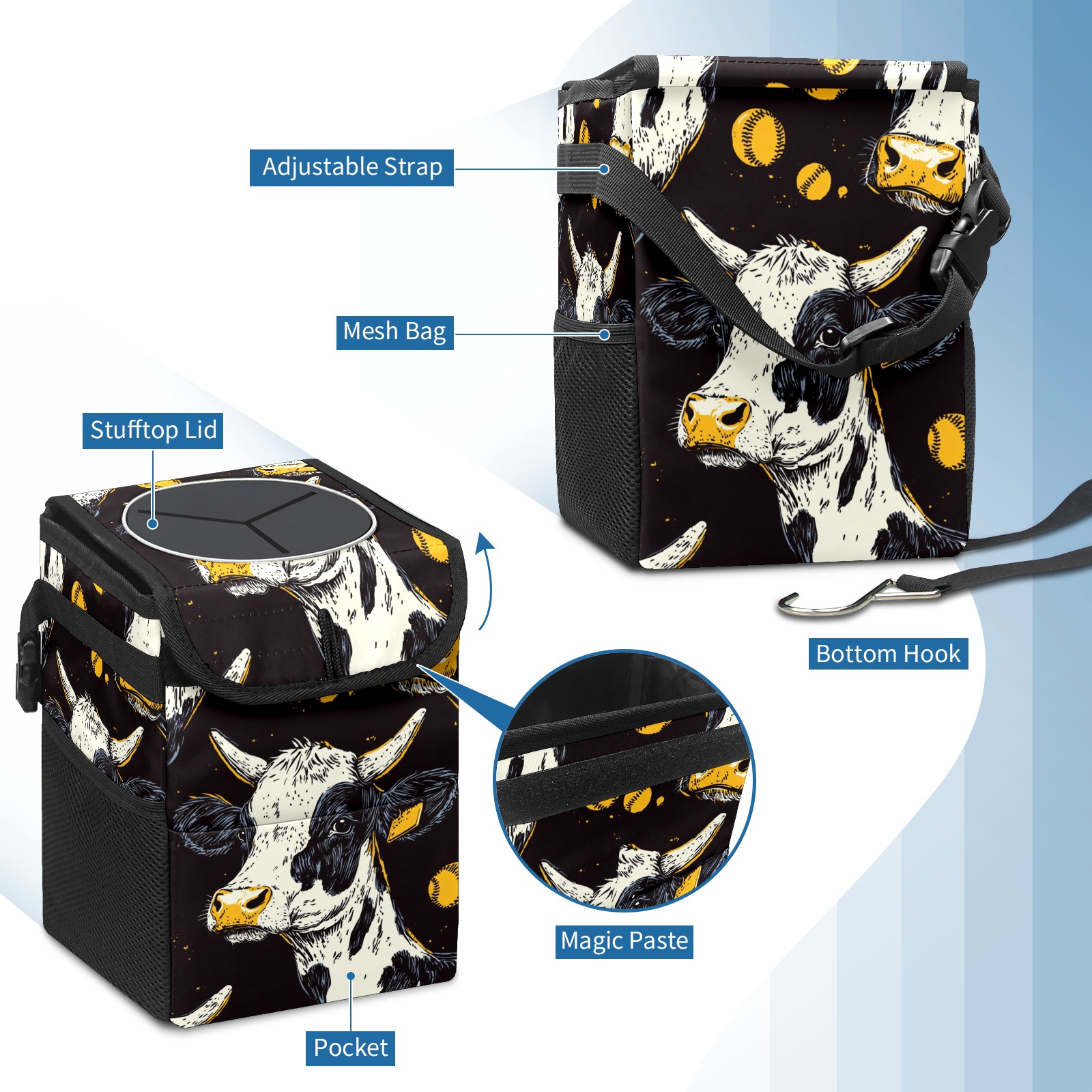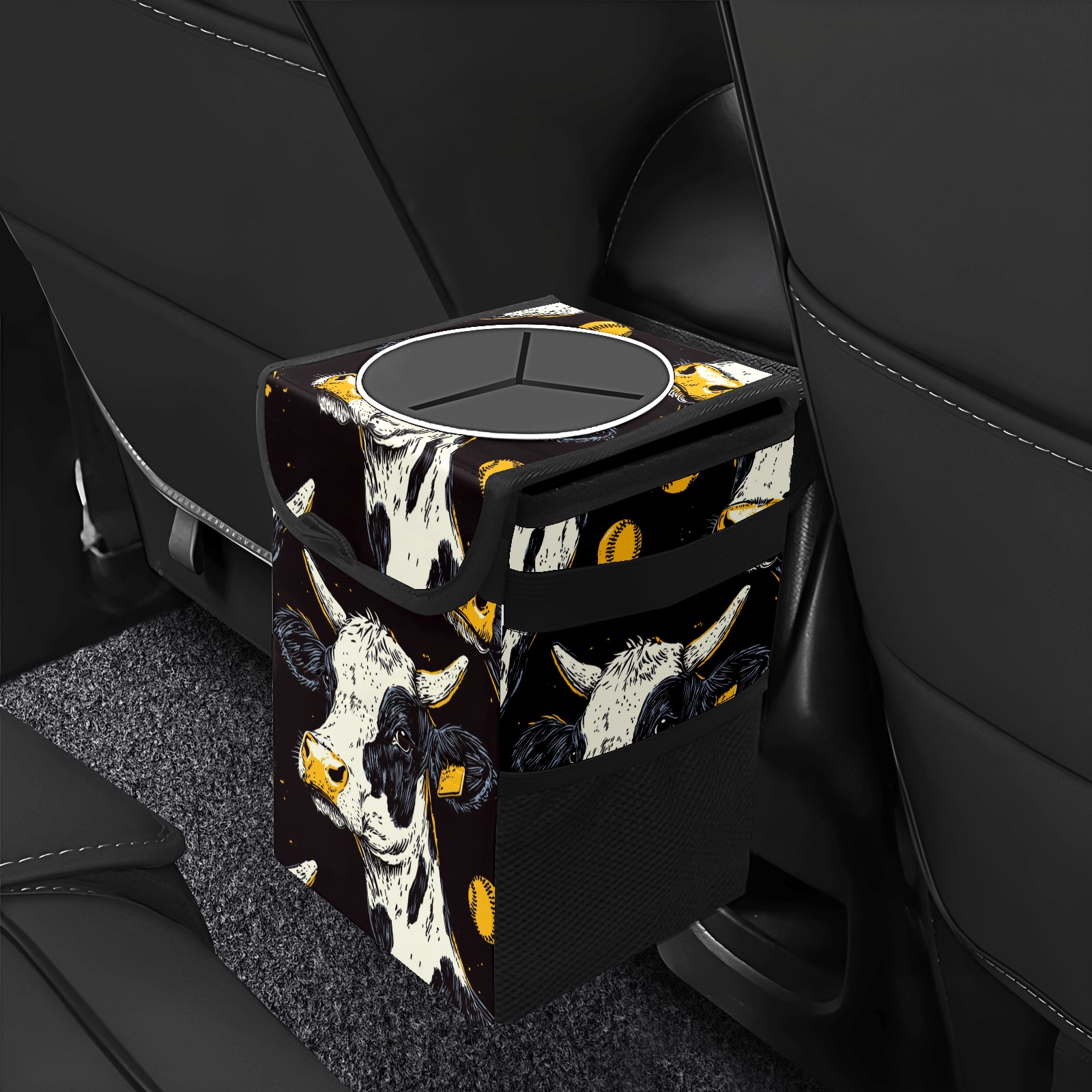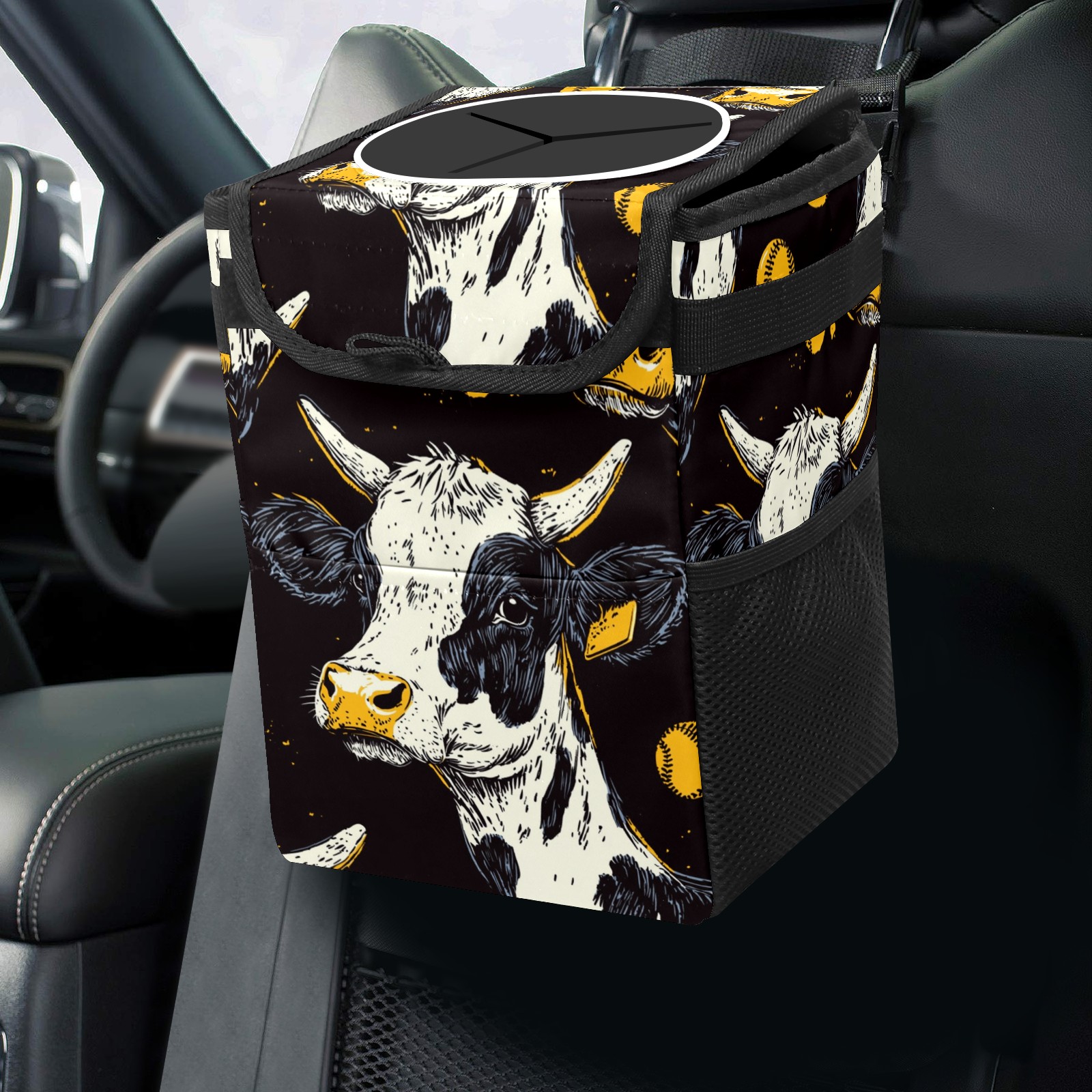Universal Hanging Car Trash Can - Leakproof Design with Secure Lid | Fits SUV, Truck, Van | Front & Back Seat Friendly | Smart Automotive Accessory Cow Pattern