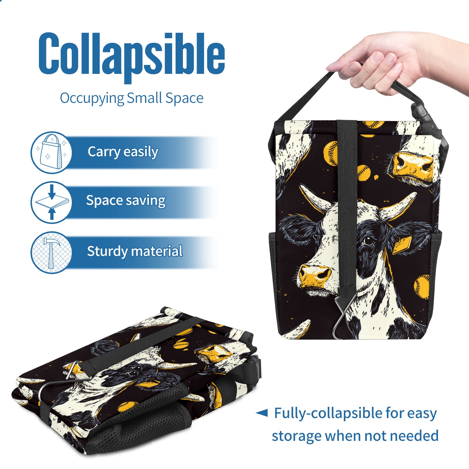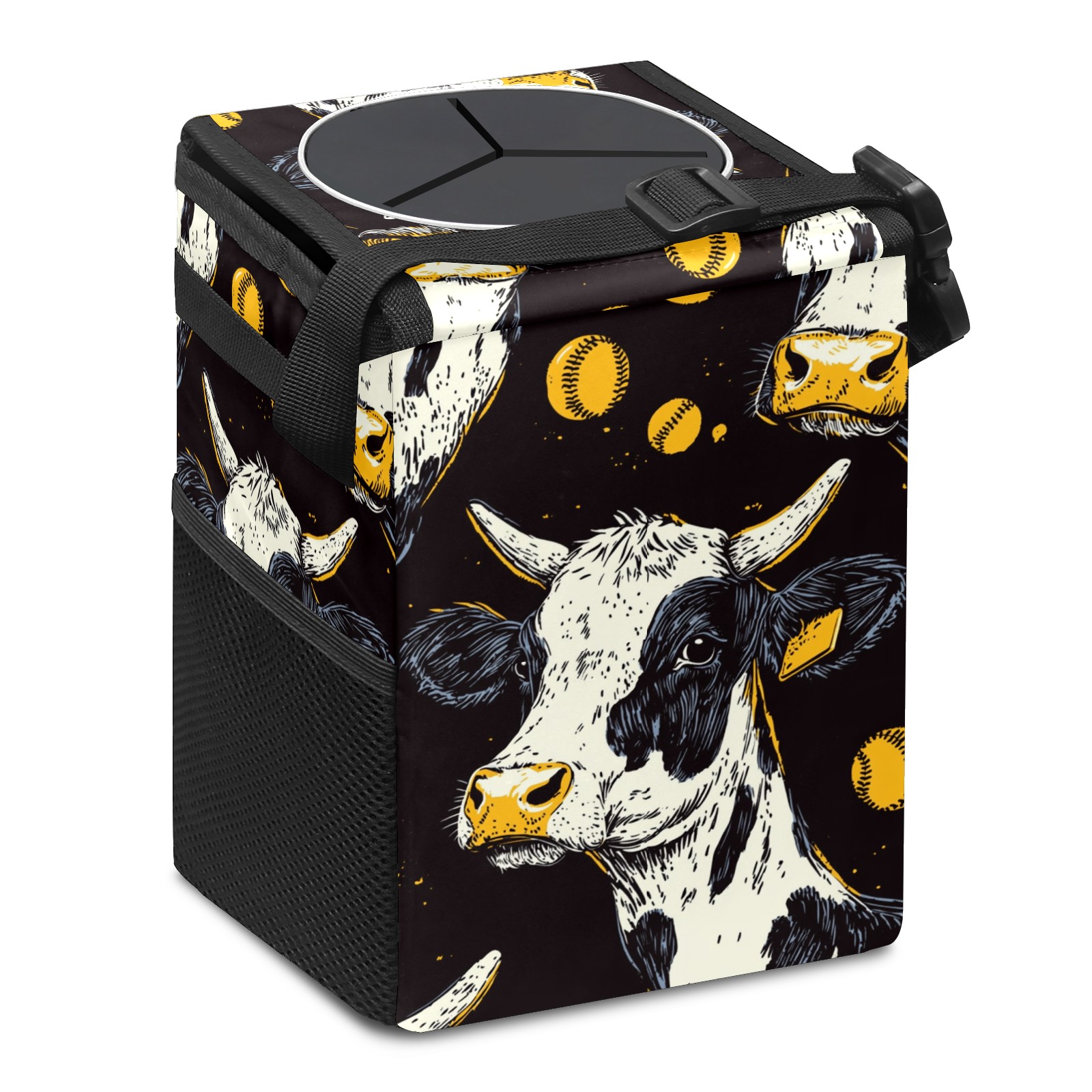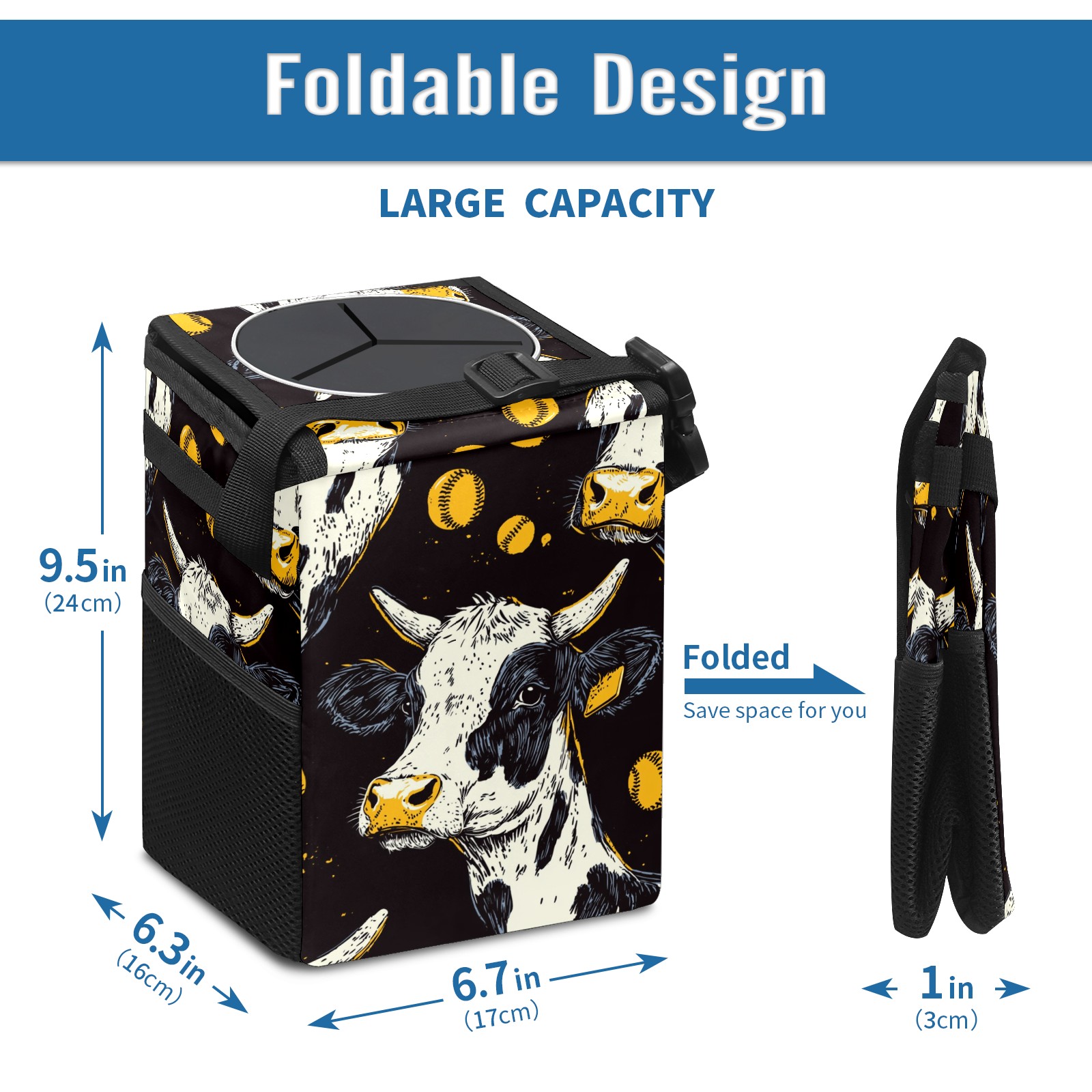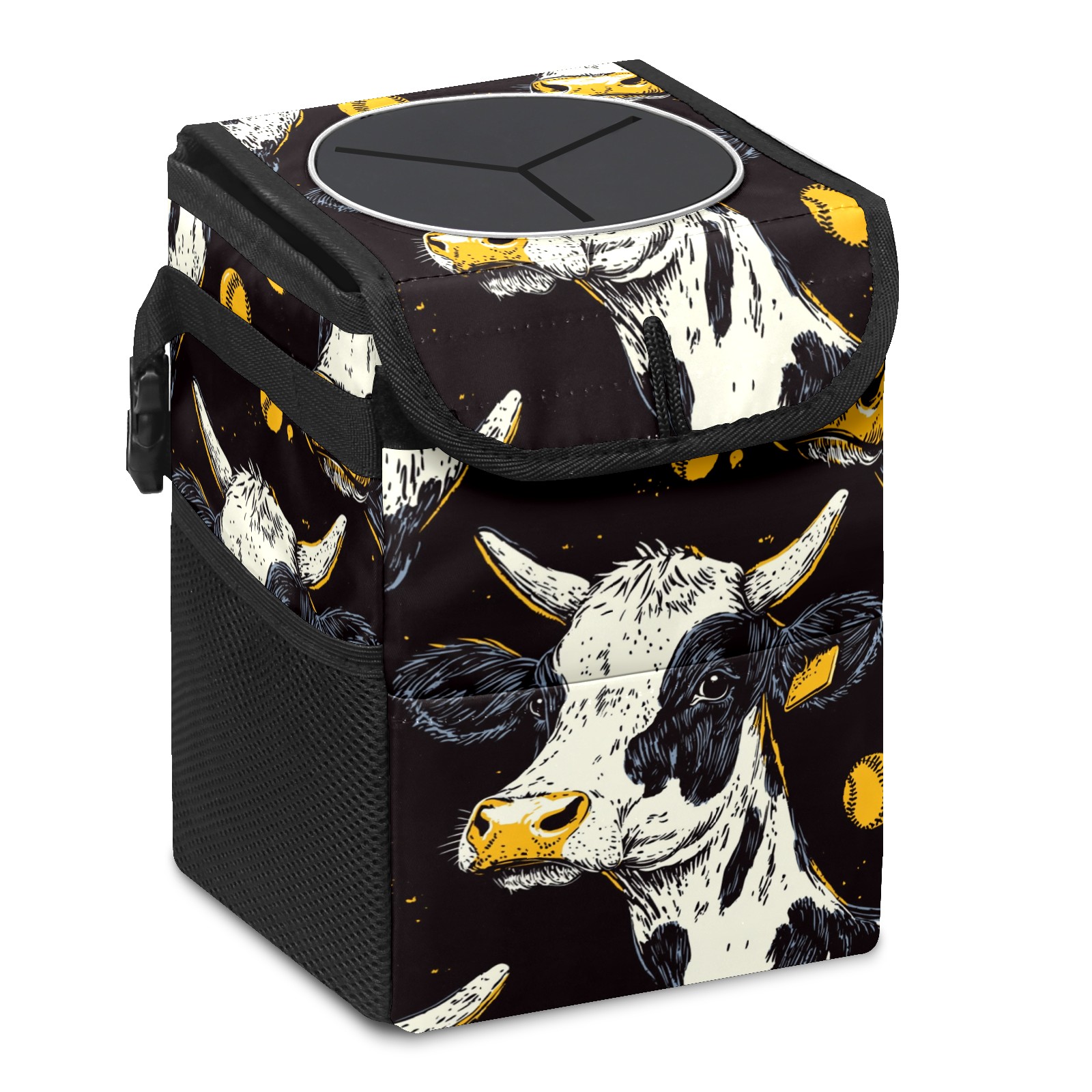 Universal Hanging Car Trash Can - Leakproof Design with Secure Lid | Fits SUV, Truck, Van | Front & Back Seat Friendly | Smart Automotive Accessory Cow Pattern