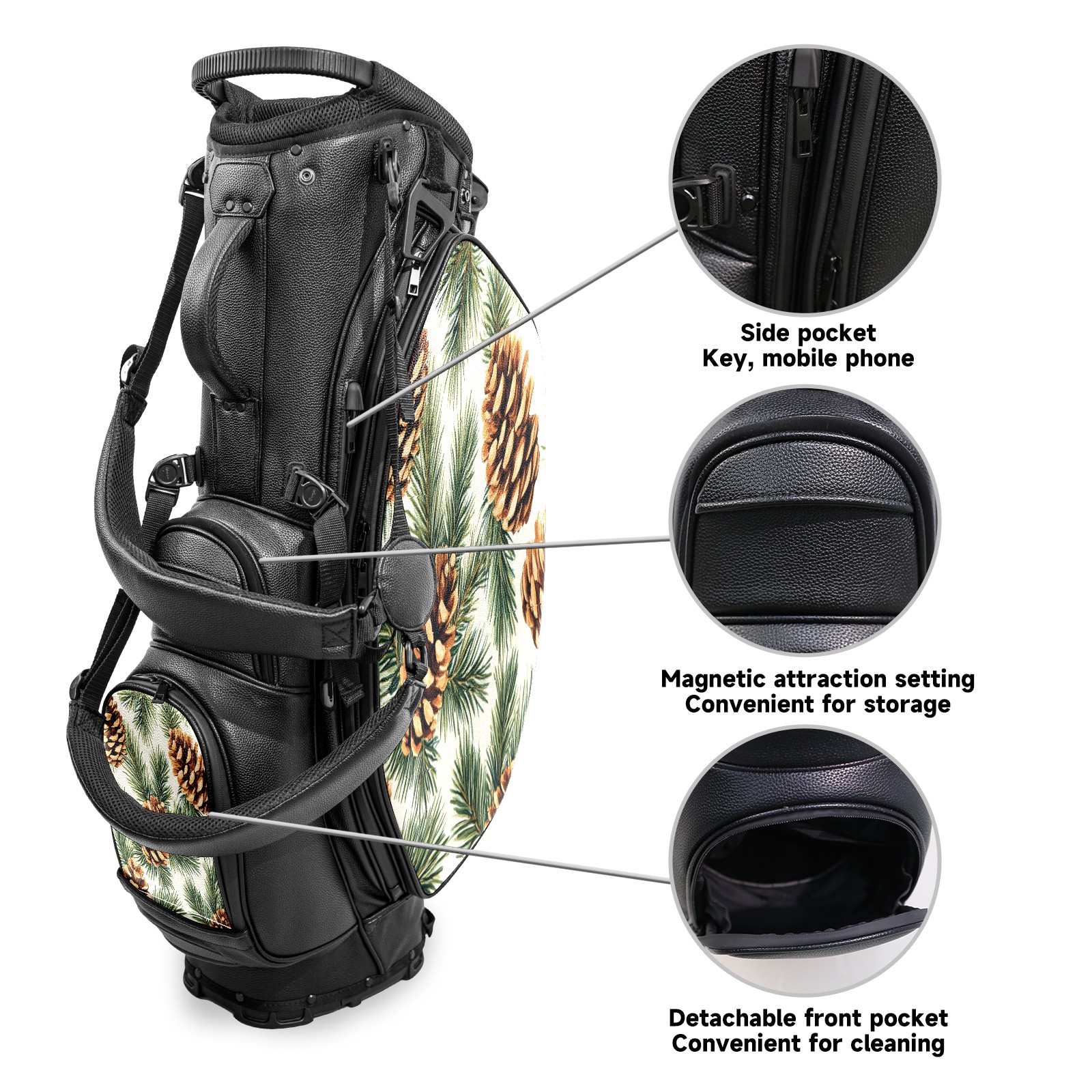 Lightweight Golf Stand Bag - 5-Way Top Divider, Golf Club Carry Bag with Adjustable Double Shoulder Straps, Zipper Storage Pockets, Rain Cover, Ideal for Golfers Pine Cone Pattern