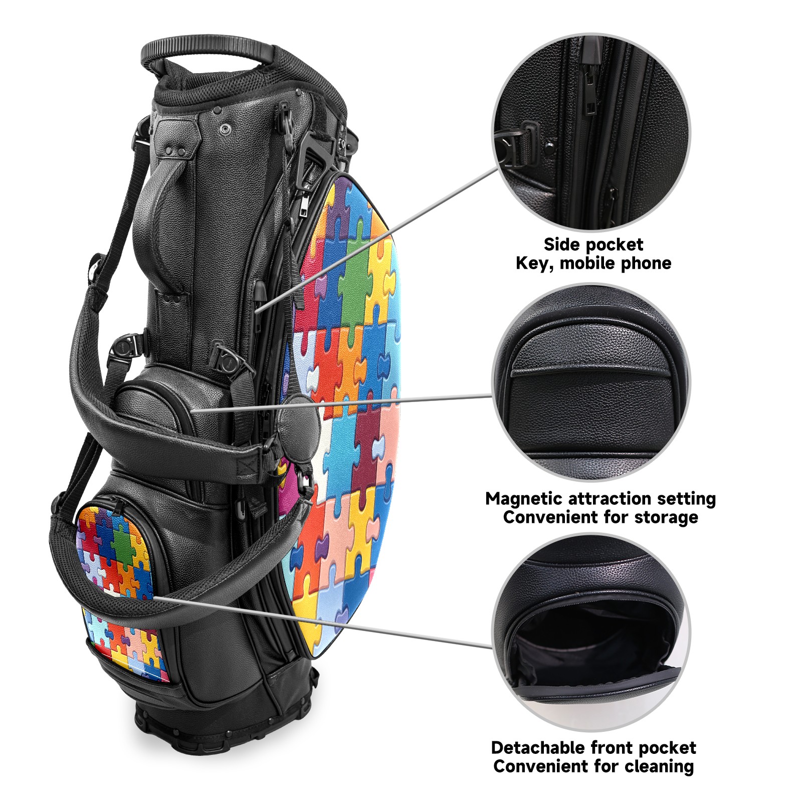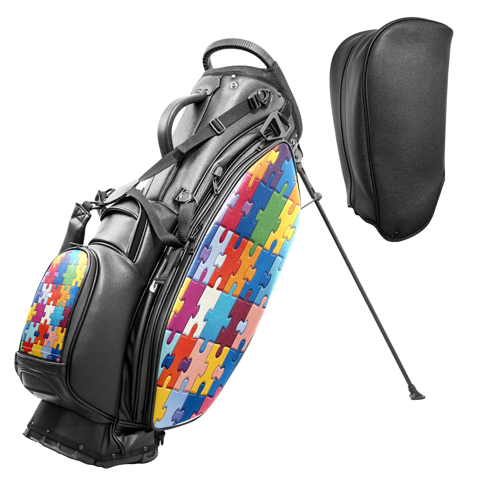 Lightweight Golf Stand Bag - 5-Way Top Divider, Golf Club Carry Bag with Adjustable Double Shoulder Straps, Zipper Storage Pockets, Rain Cover, Ideal for Golfers Puzzle Pattern