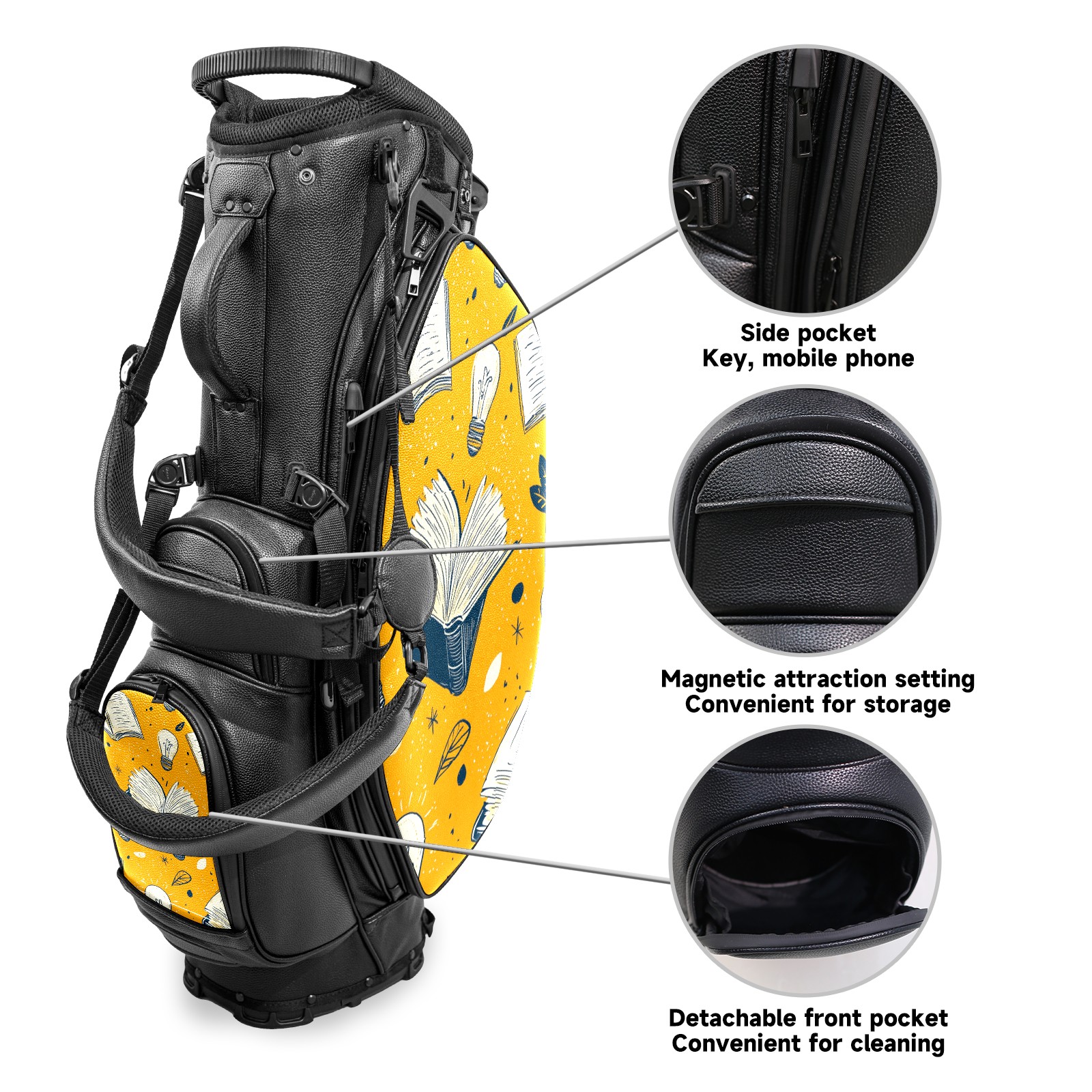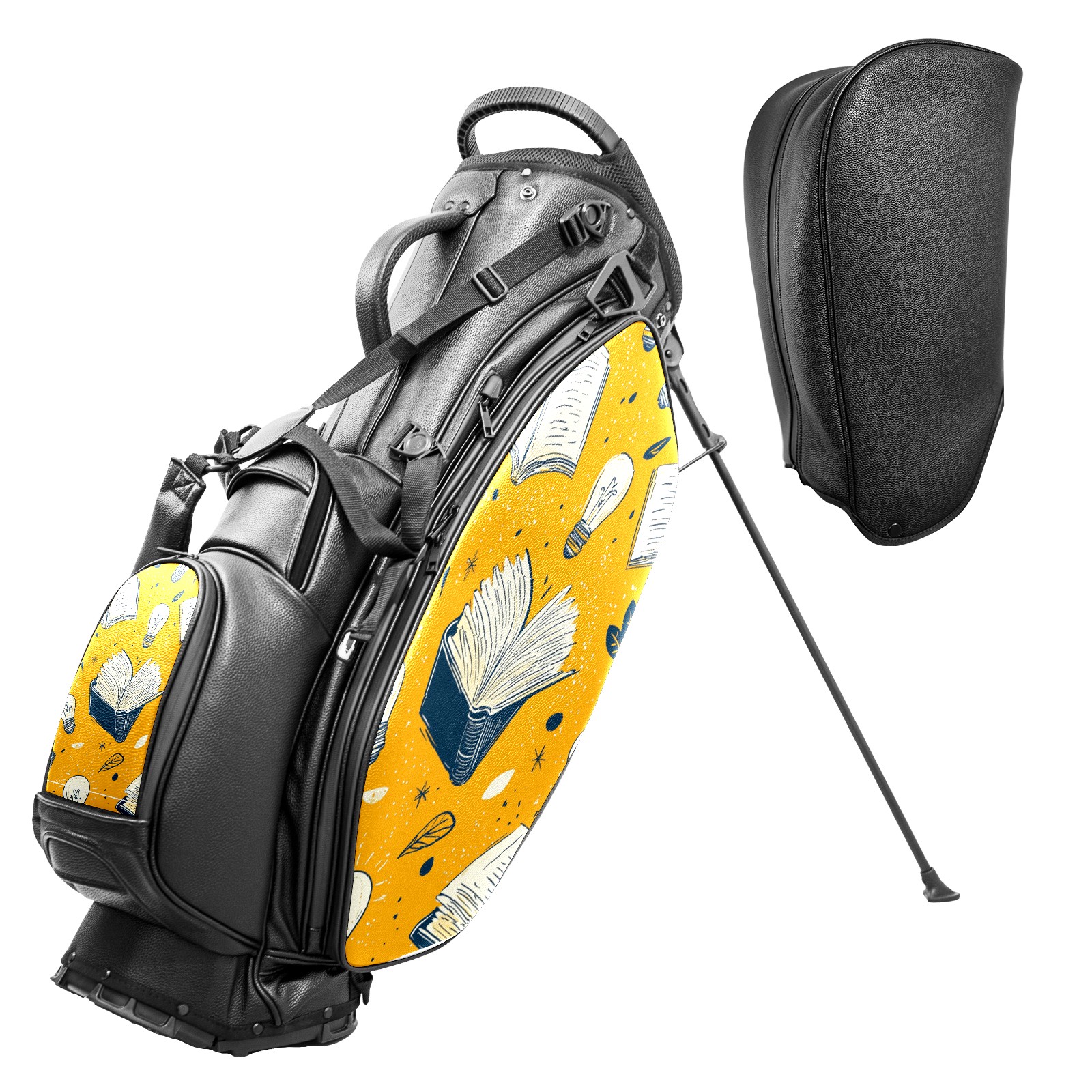 Lightweight Golf Stand Bag - 5-Way Top Divider, Golf Club Carry Bag with Adjustable Double Shoulder Straps, Zipper Storage Pockets, Rain Cover, Ideal for Golfers Book Pattern