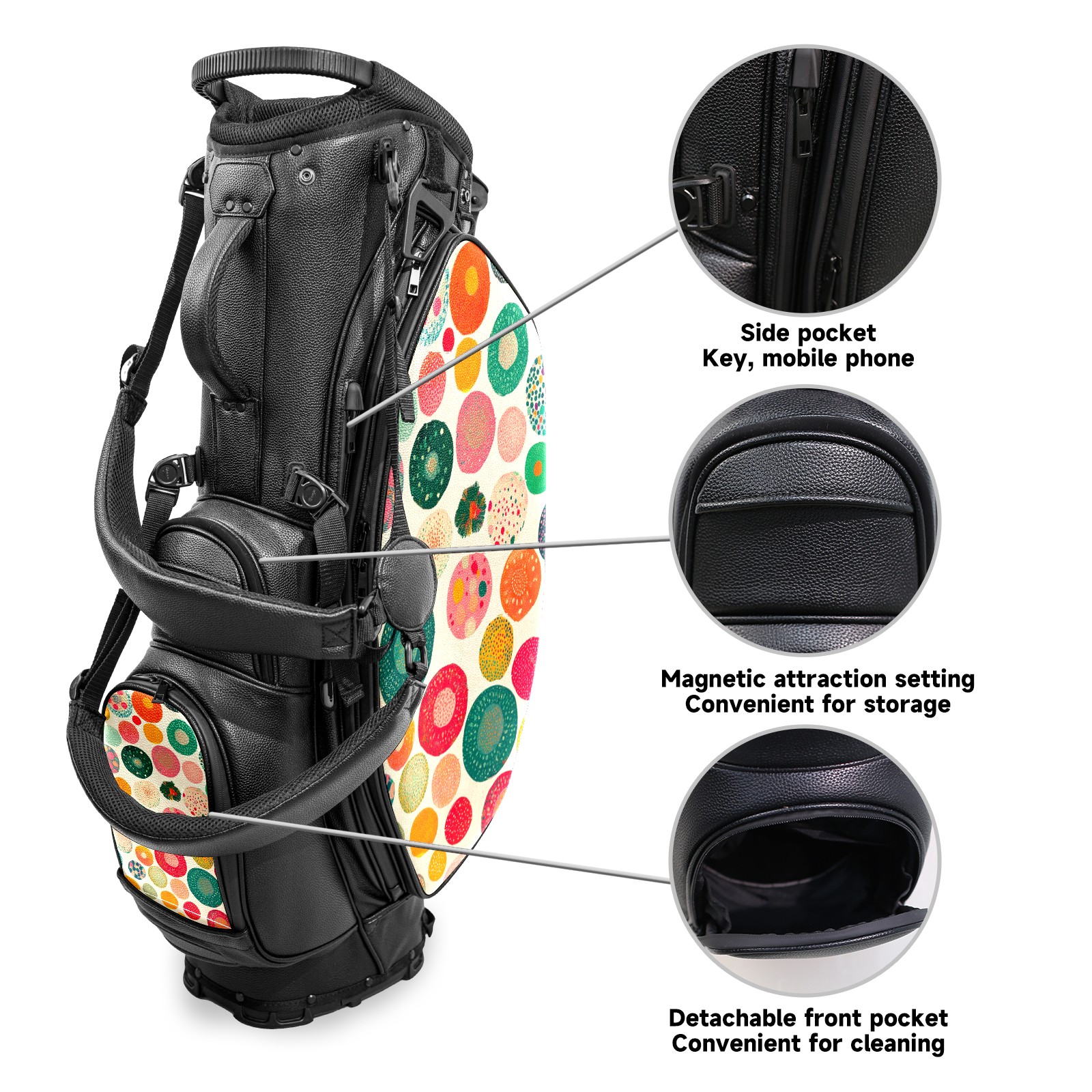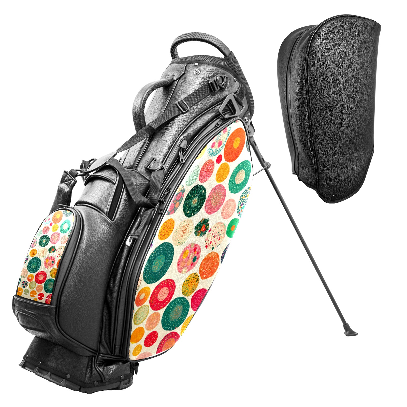 Lightweight Golf Stand Bag - 5-Way Top Divider, Golf Club Carry Bag with Adjustable Double Shoulder Straps, Zipper Storage Pockets, Rain Cover, Ideal for Golfers Colorful Polka Dot Pattern
