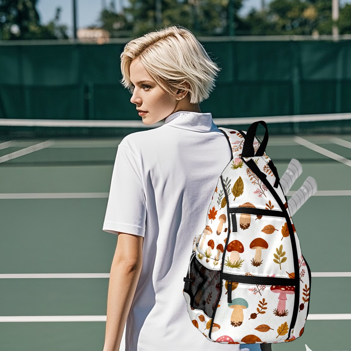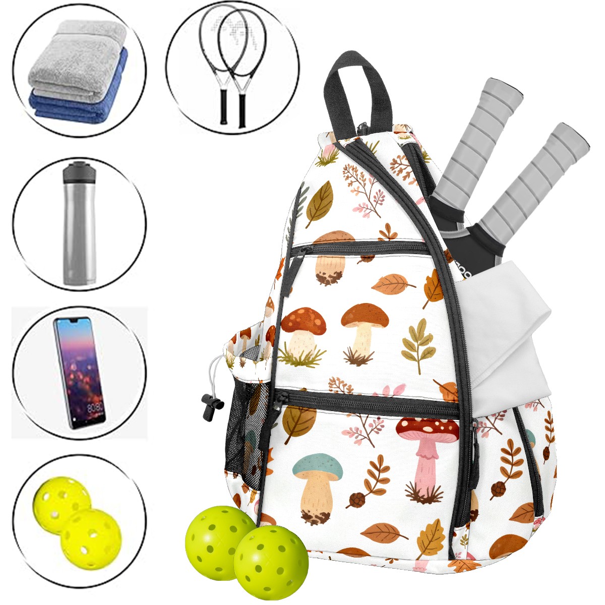 <p>ADJUSTABLE & VERSATILE</p> <p>Convertible Shoulder Strap: Wear it on either shoulder and adjust the length for maximum comfort. Perfect for left- or right-handed players!</p> <p>SPACIOUS & ORGANIZED</p> <p>5 Multi-Functional Pockets + Water Bottle Holder</p> <p>Fits 2-4 pickleball paddles + balls (or 2+ table tennis sets)</p> <p>Hidden anti-theft pocket for cash, keys, or cards – keep valuables secure</p> <p>Dimensions: 14"W × 6"D × 18"H – Compact yet roomy.</p>