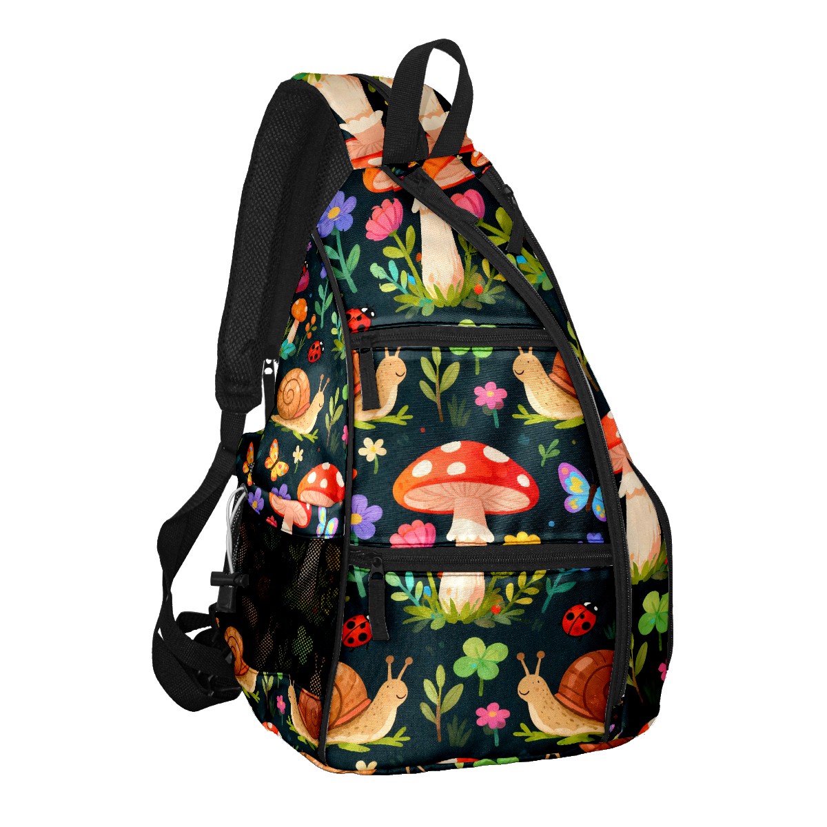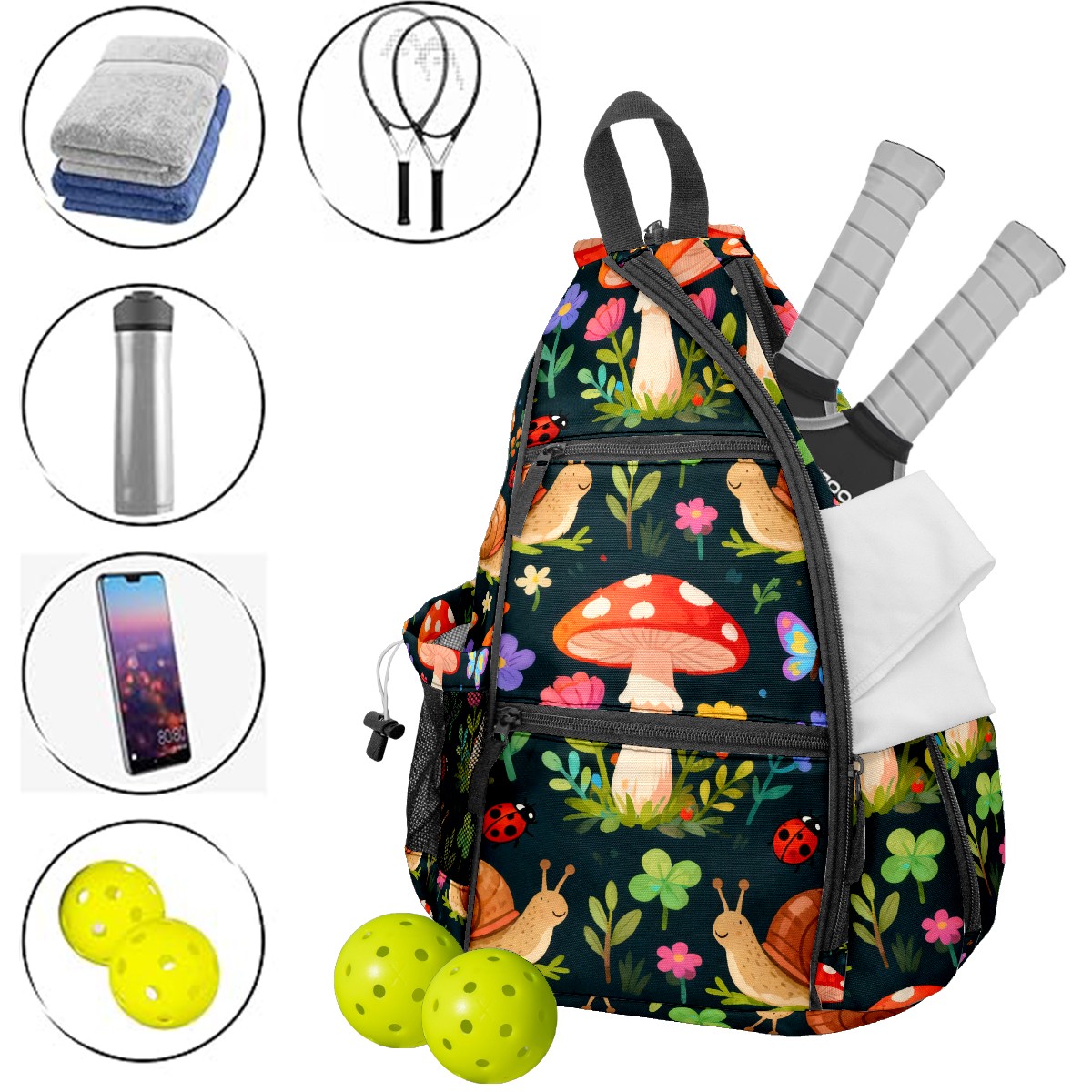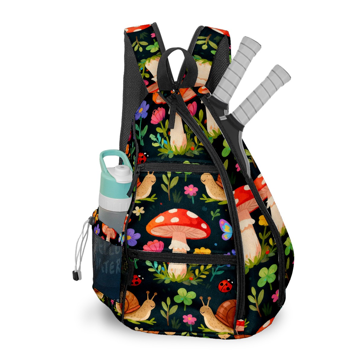 Pickleball Bag Forest Mushrooms Snails Pickle Ball Backpack for Women Men Premium Lightweight Crossbody Sling Bag Sports Backpack for Pickleball Paddle Tennis