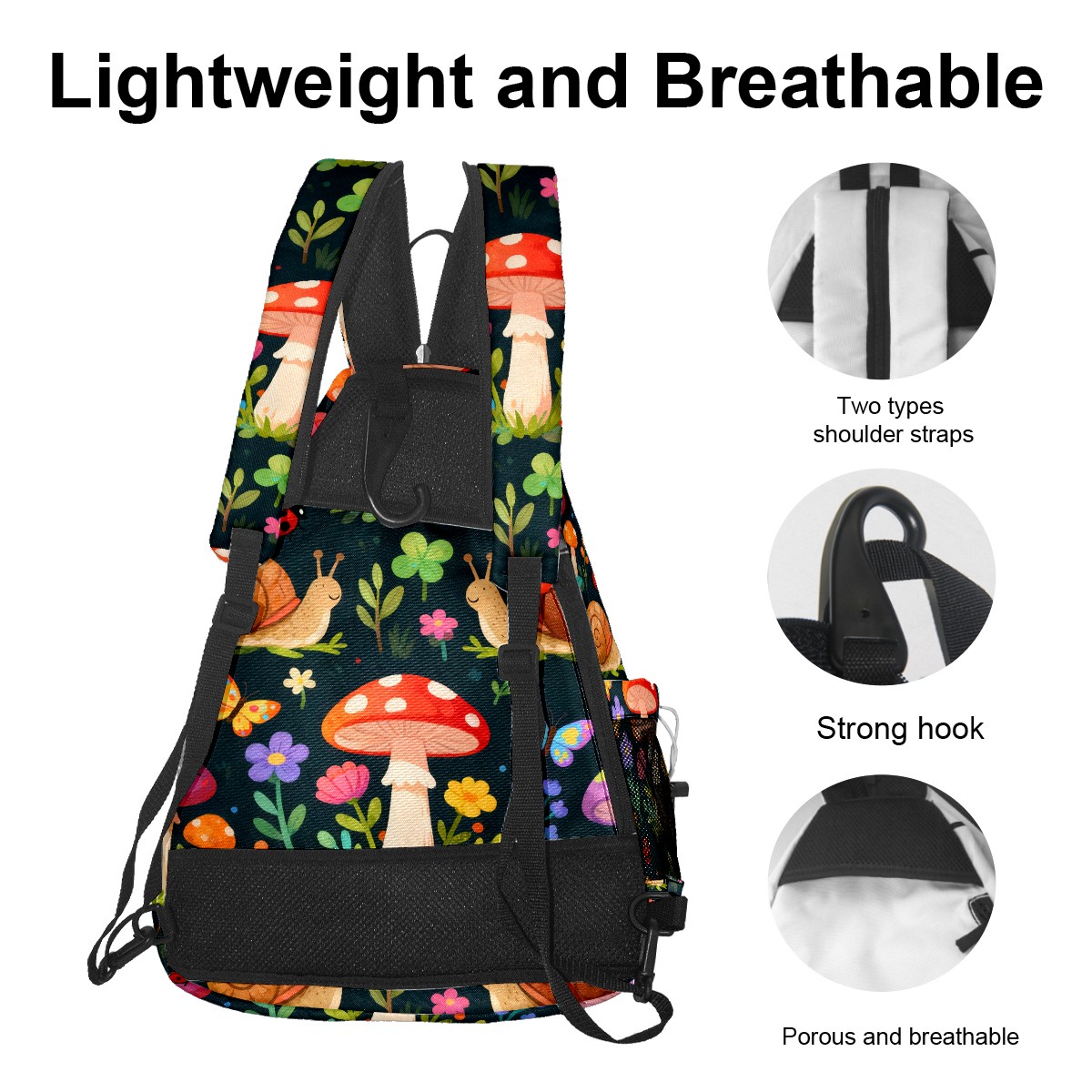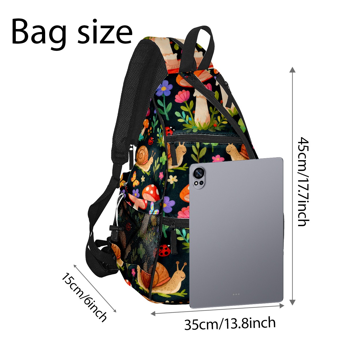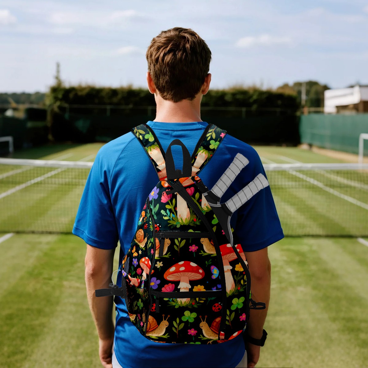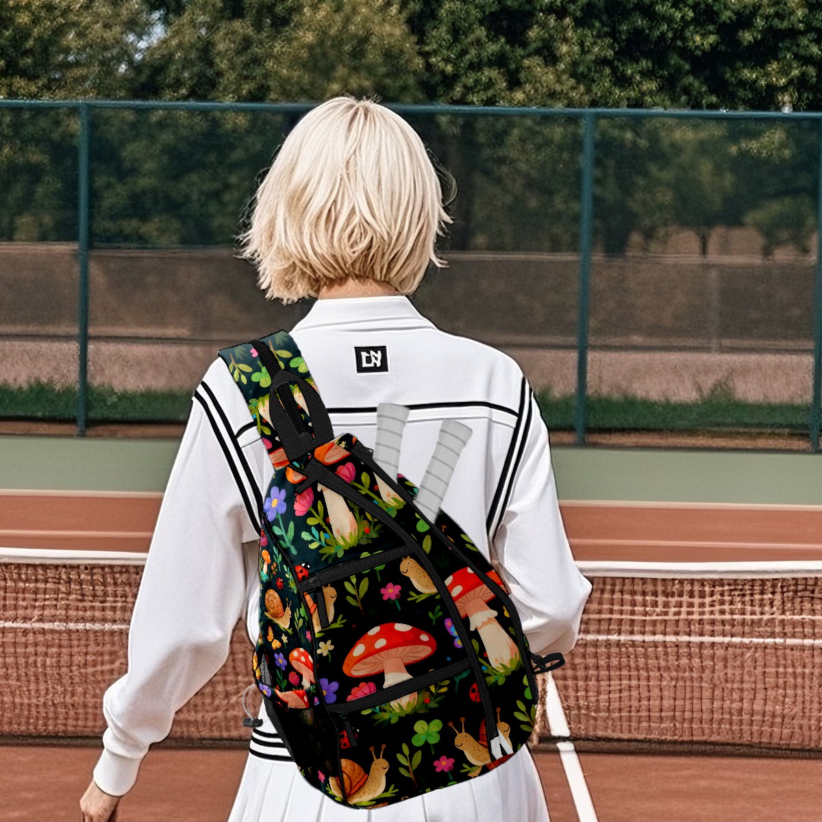 Pickleball Bag Forest Mushrooms Snails Pickle Ball Backpack for Women Men Premium Lightweight Crossbody Sling Bag Sports Backpack for Pickleball Paddle Tennis