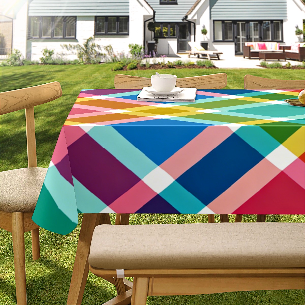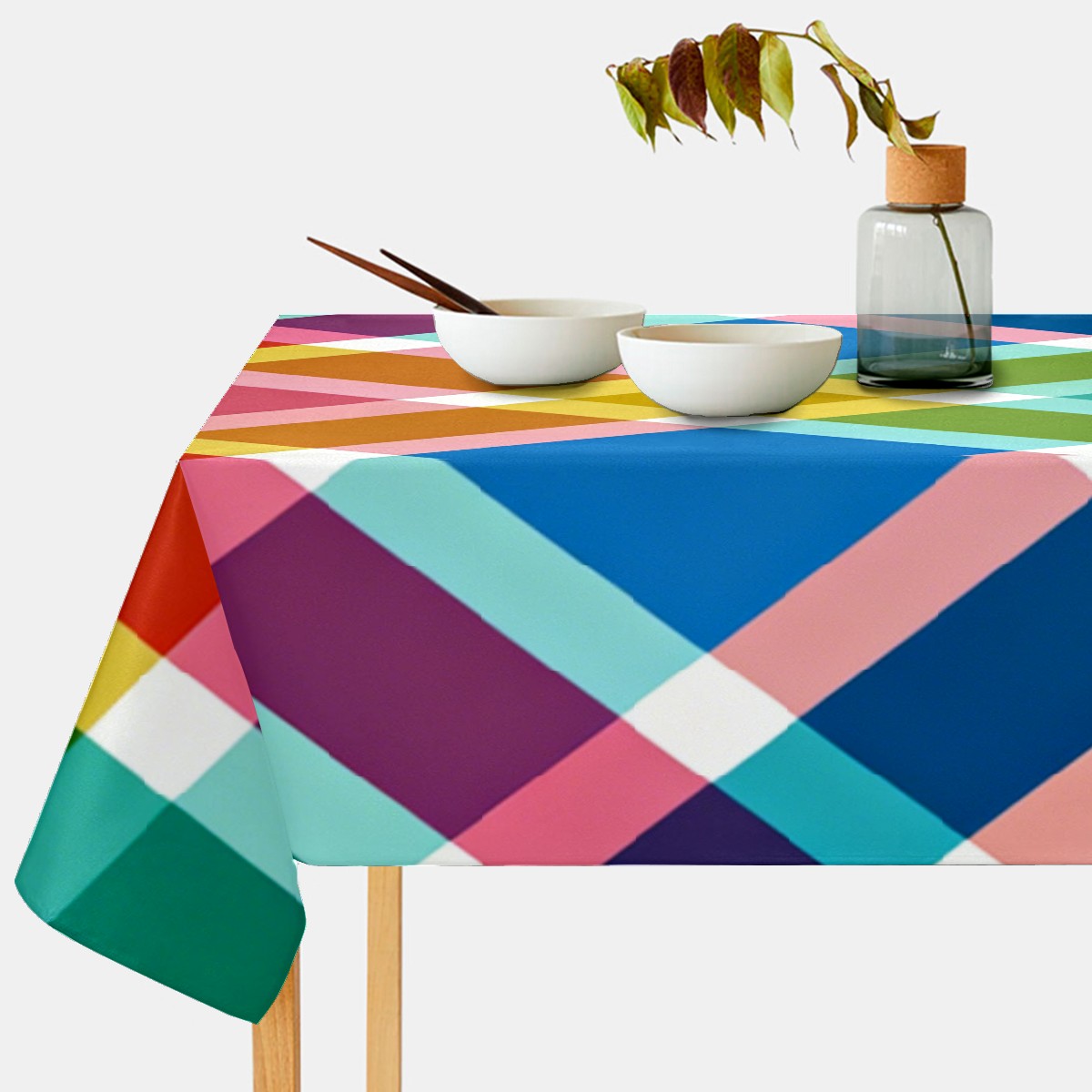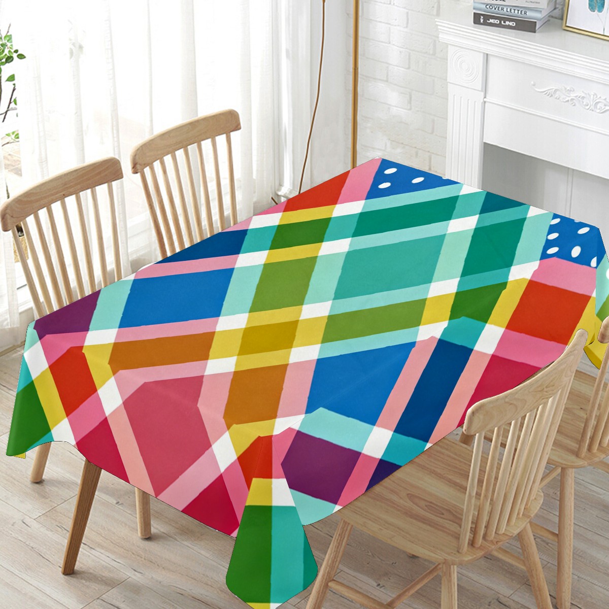 Playful Cross Plaid Multi Tablecloth - Polyester Wrinkle-Resistant Table Cover | Durable, Stain-Resistant Tablecloth for Dining Room, Outdoor Patio, Picnic & Party