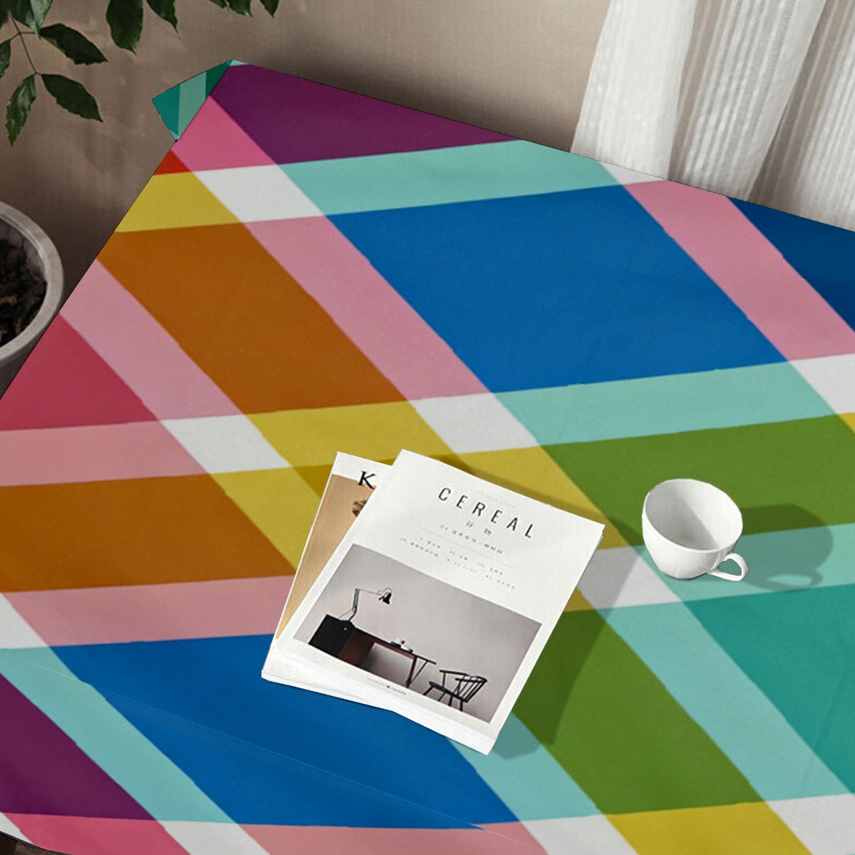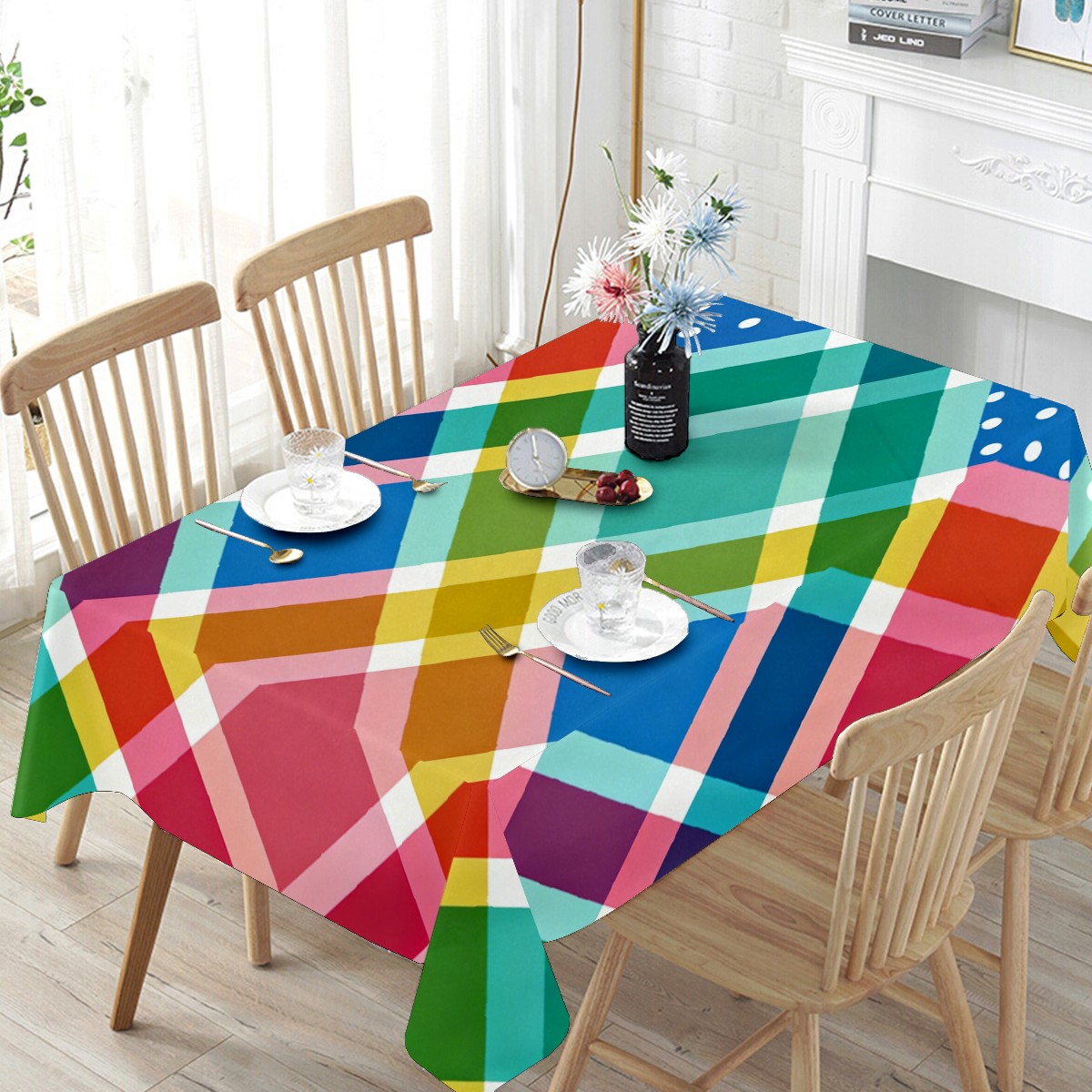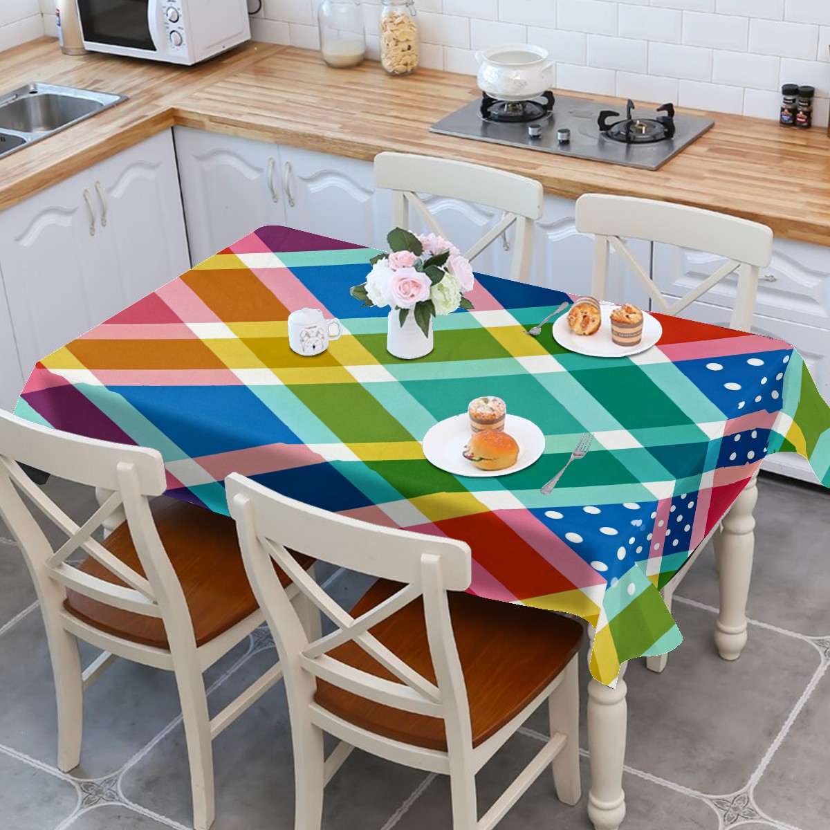 Playful Cross Plaid Multi Tablecloth - Polyester Wrinkle-Resistant Table Cover | Durable, Stain-Resistant Tablecloth for Dining Room, Outdoor Patio, Picnic & Party