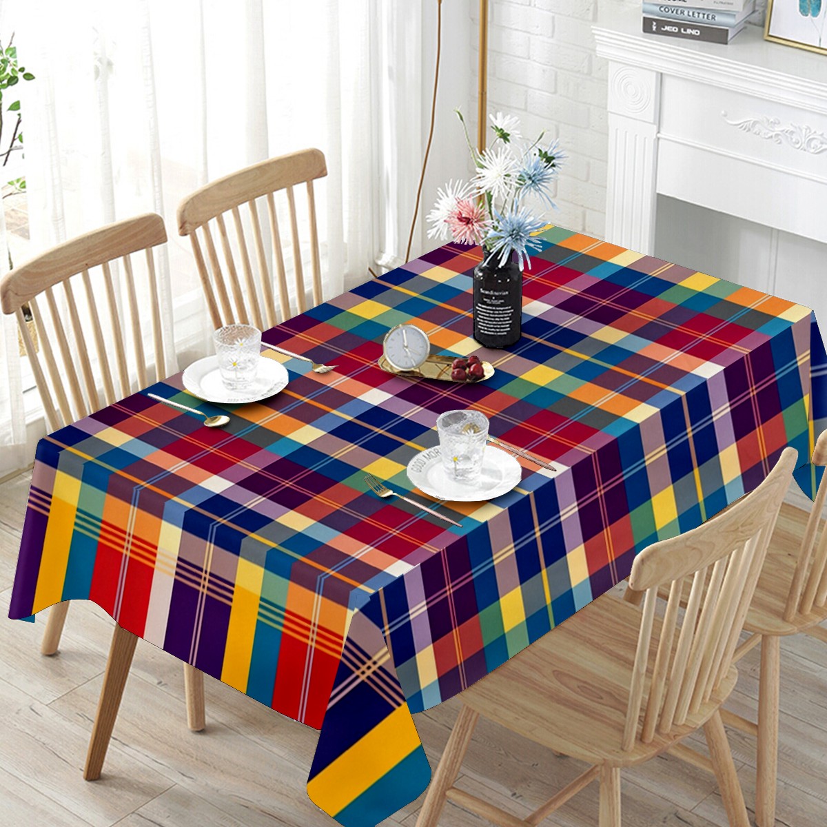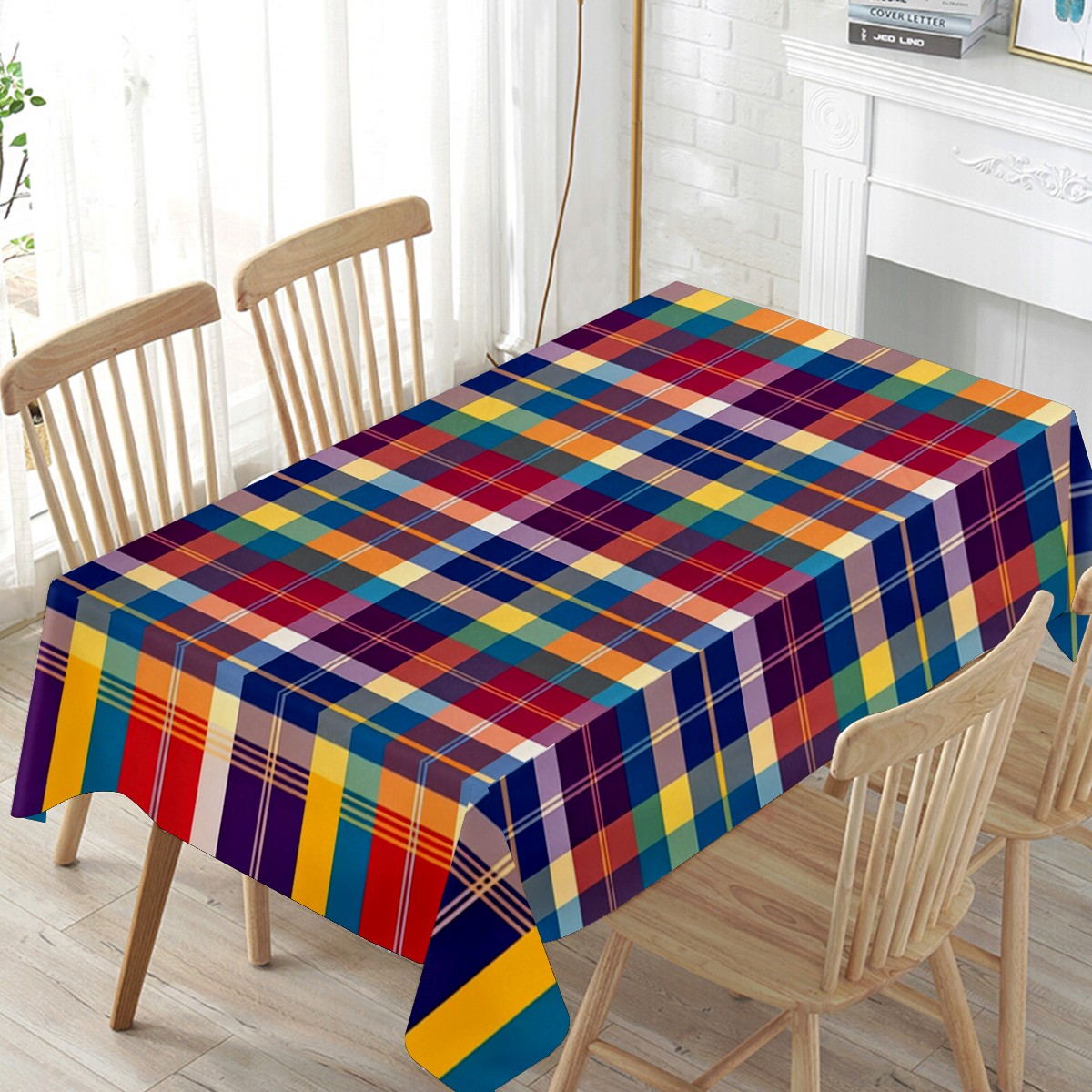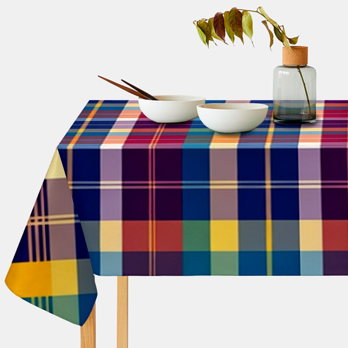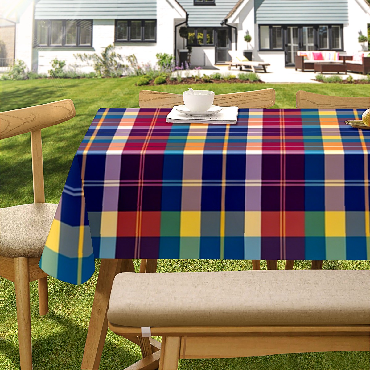 Vintage Plaid Multi Tablecloth - Polyester Wrinkle-Resistant Table Cover | Durable, Stain-Resistant Tablecloth for Dining Room, Outdoor Patio, Picnic & Party