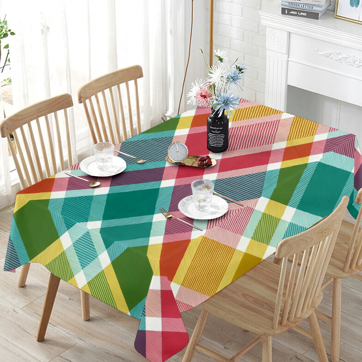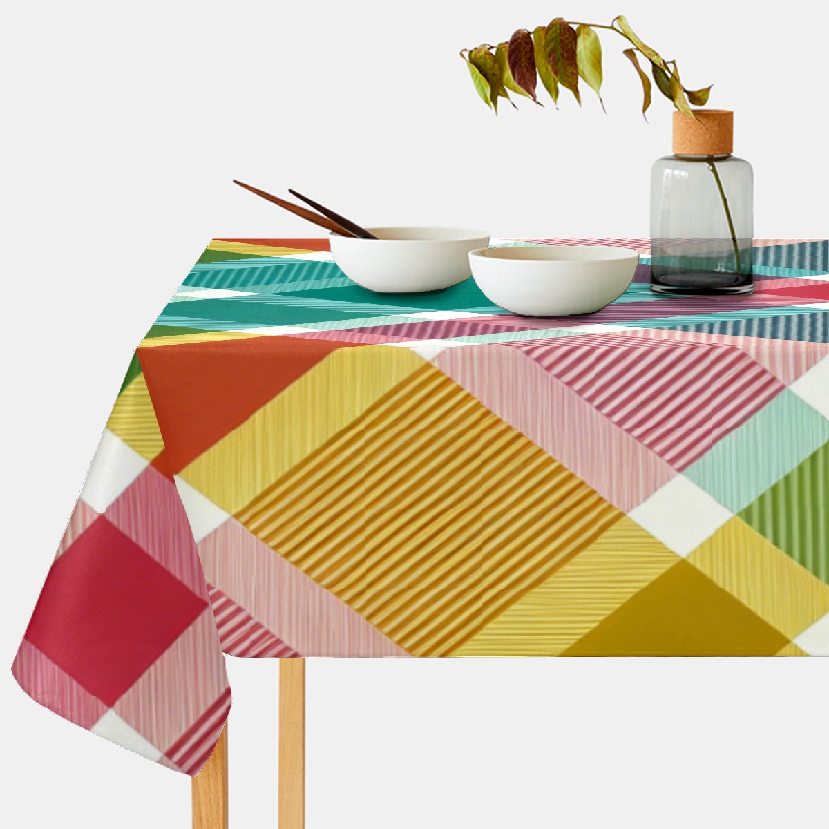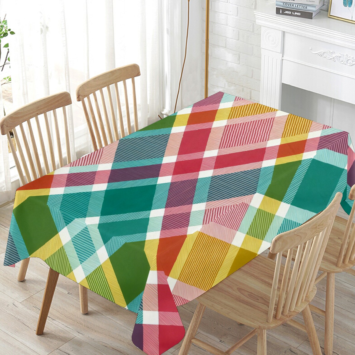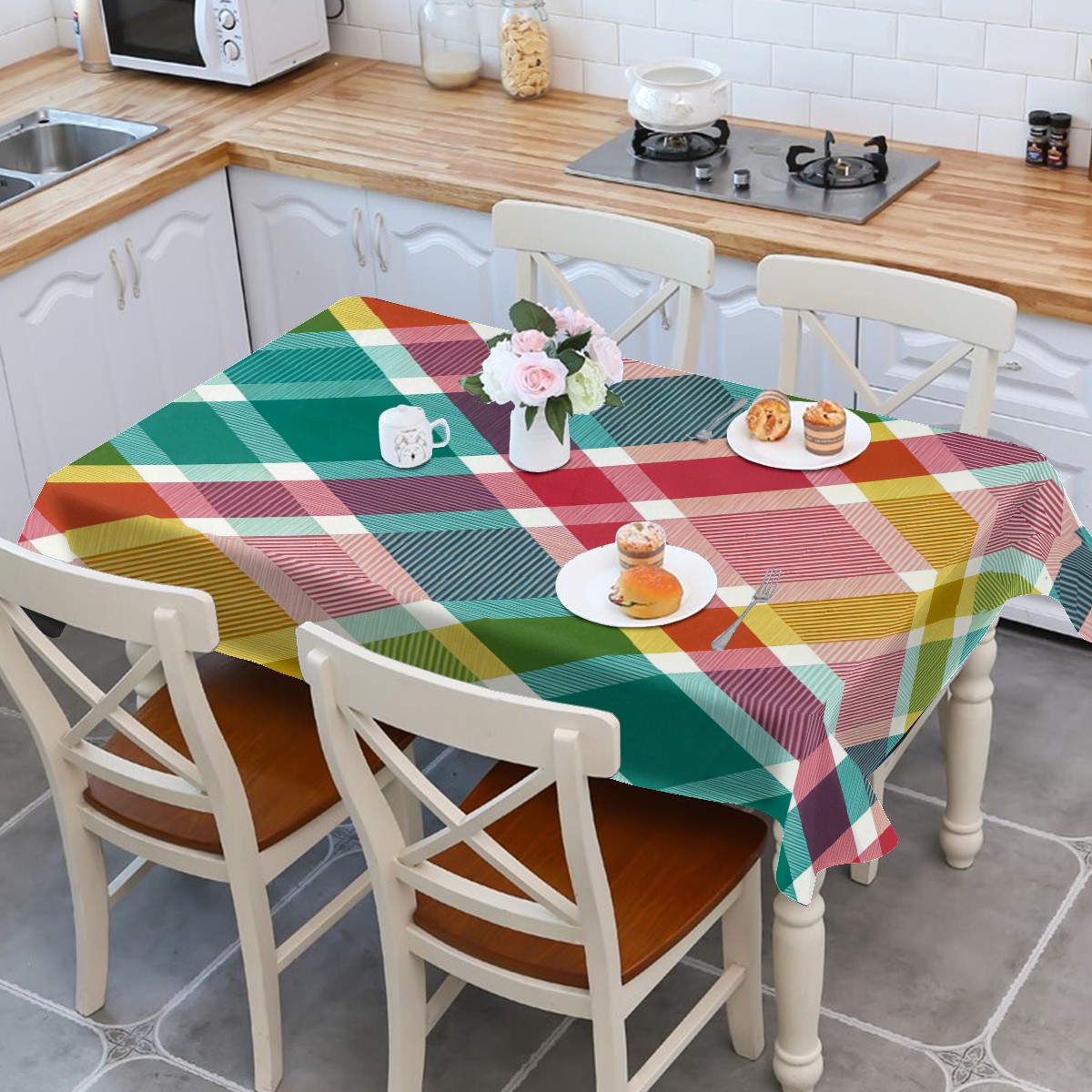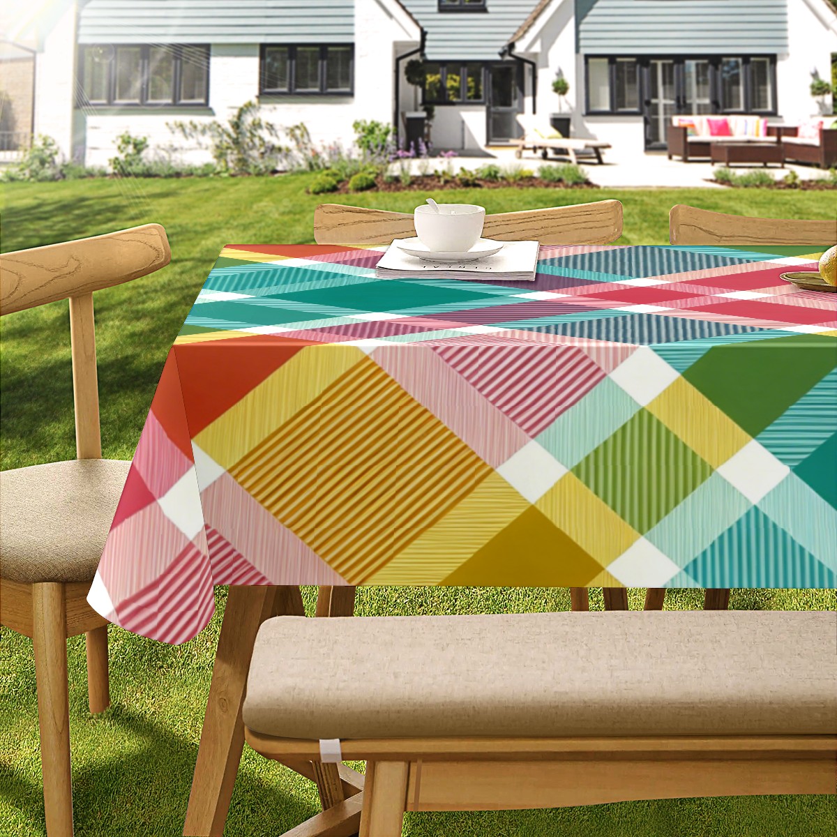 Gorgeous Plaid Multi Tablecloth - Polyester Wrinkle-Resistant Table Cover | Durable, Stain-Resistant Tablecloth for Dining Room, Outdoor Patio, Picnic & Party