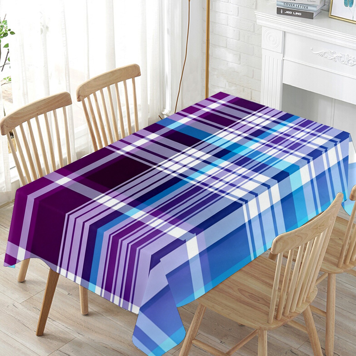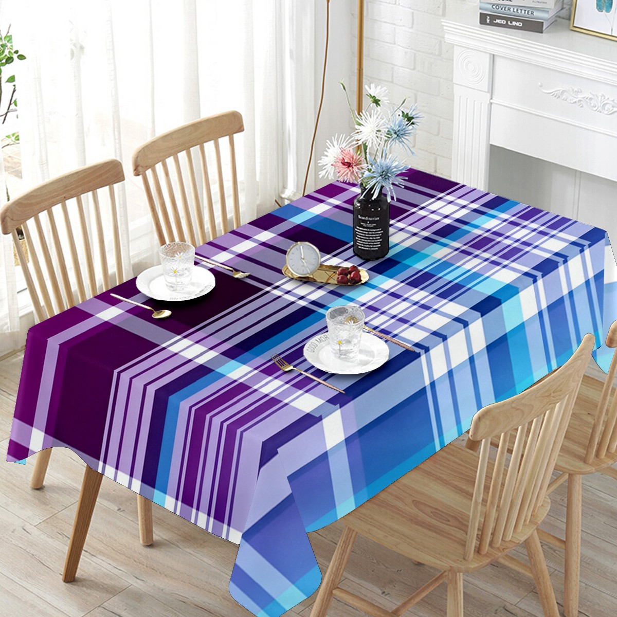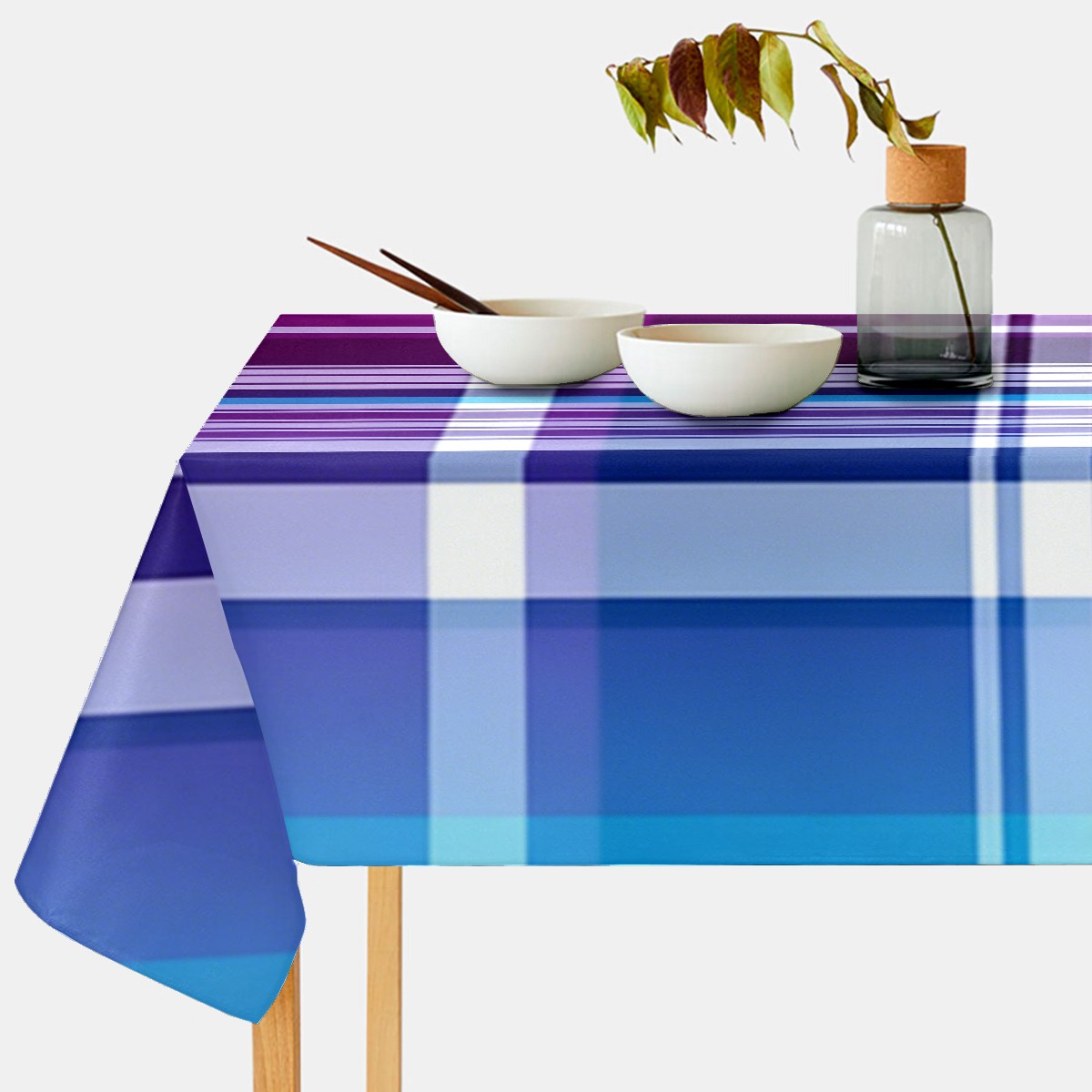 Calm Plaid Blue Tablecloth - Polyester Wrinkle-Resistant Table Cover | Durable, Stain-Resistant Tablecloth for Dining Room, Outdoor Patio, Picnic & Party