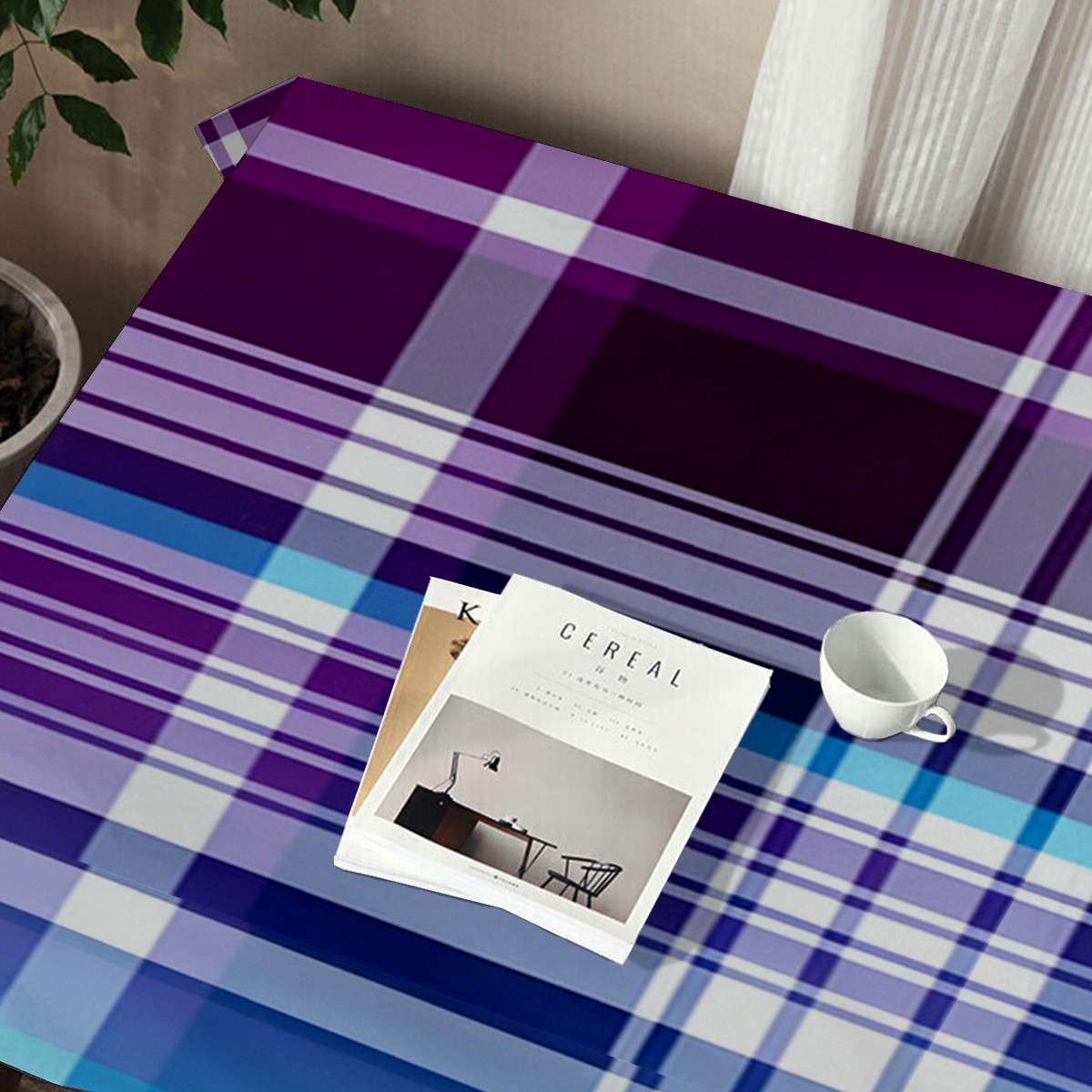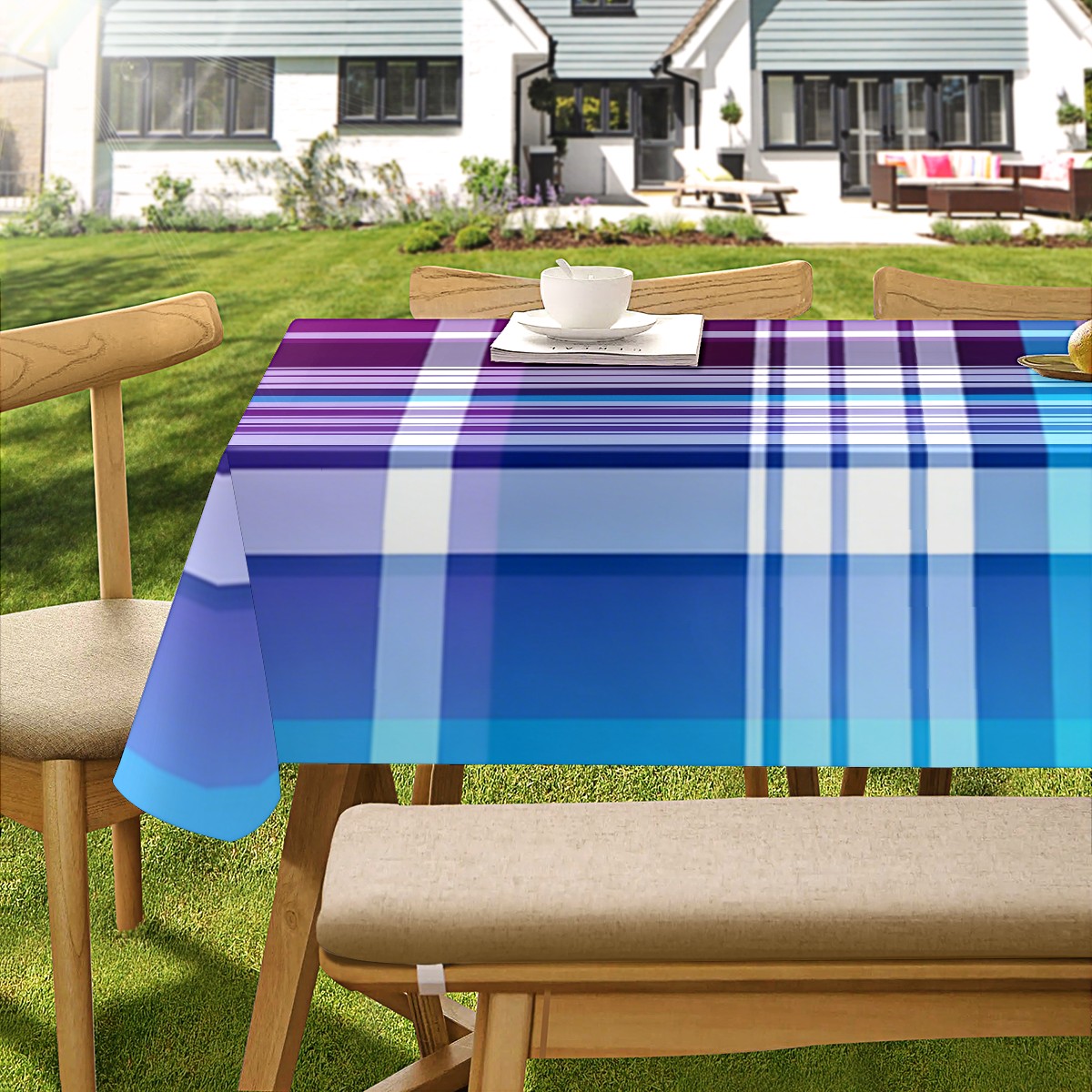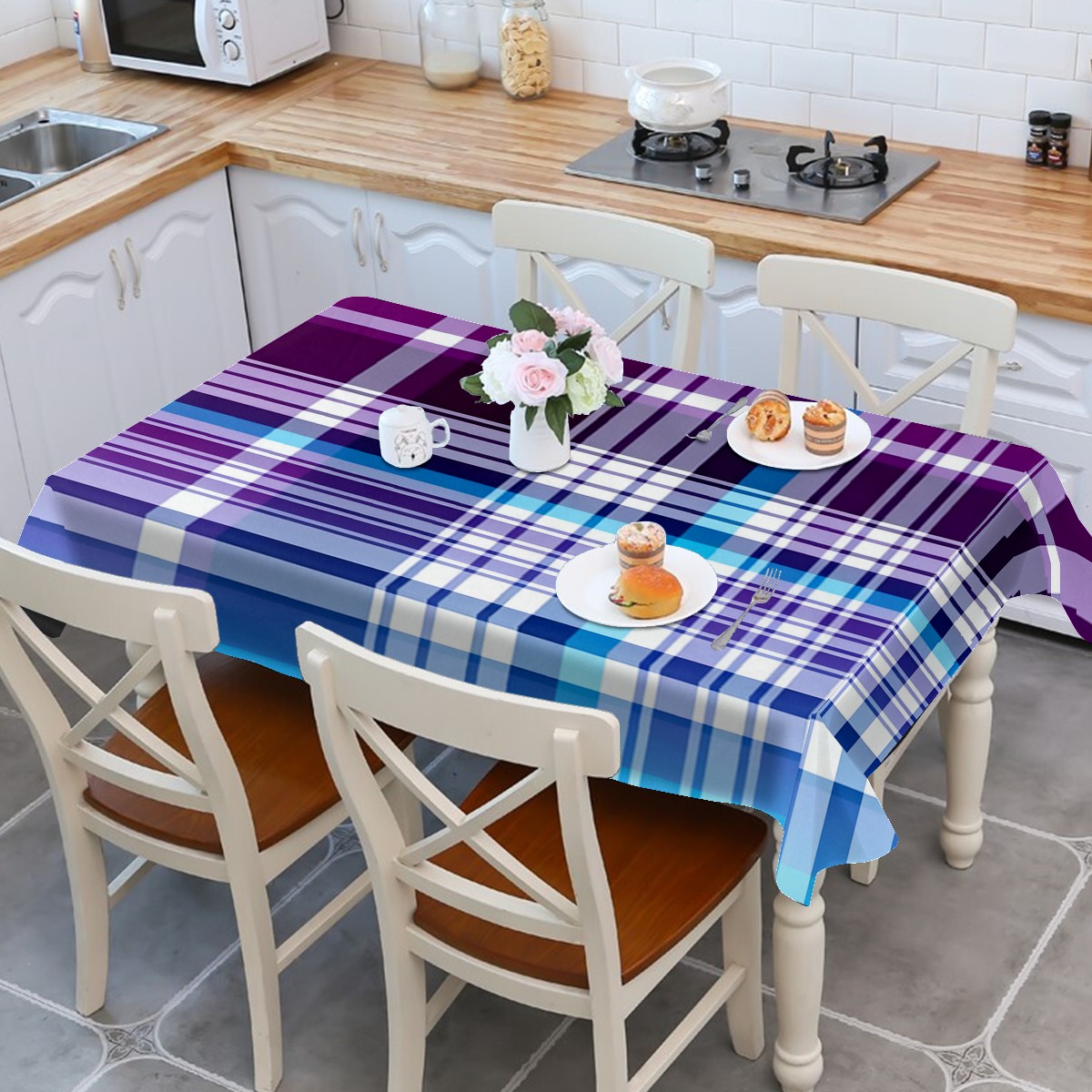 Calm Plaid Blue Tablecloth - Polyester Wrinkle-Resistant Table Cover | Durable, Stain-Resistant Tablecloth for Dining Room, Outdoor Patio, Picnic & Party