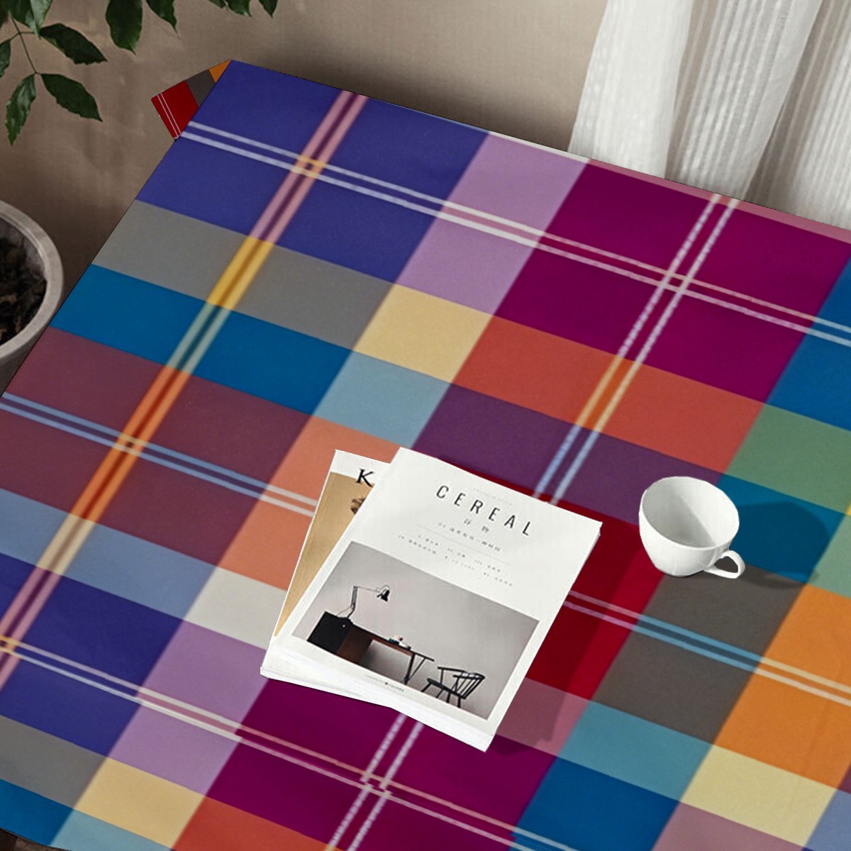 Soft Plaid Purple Tablecloth - Polyester Wrinkle-Resistant Table Cover | Durable, Stain-Resistant Tablecloth for Dining Room, Outdoor Patio, Picnic & Party