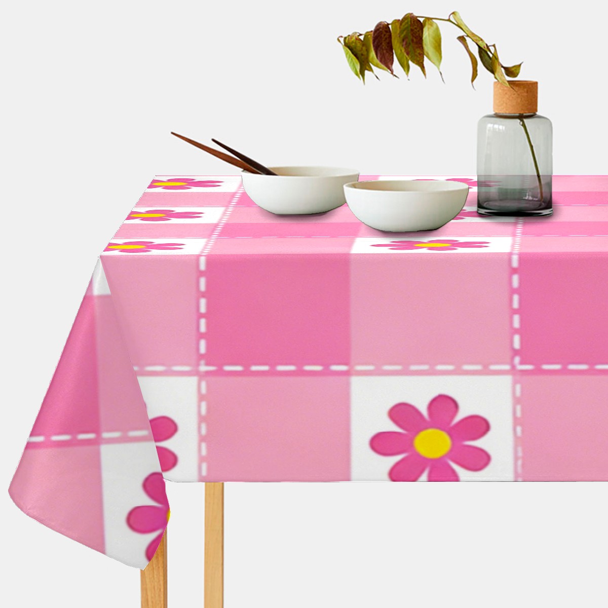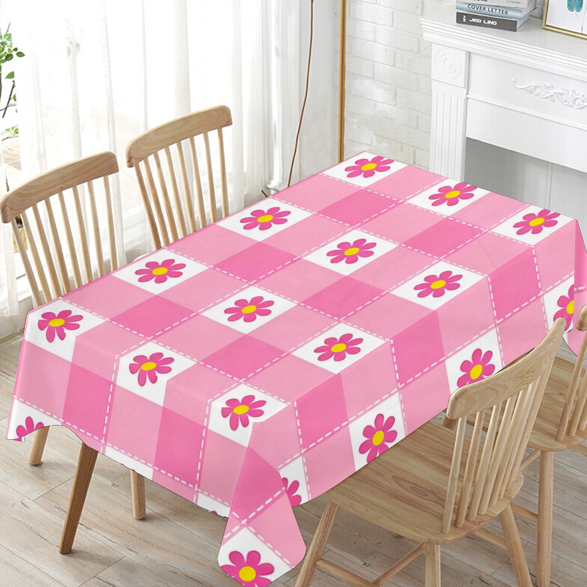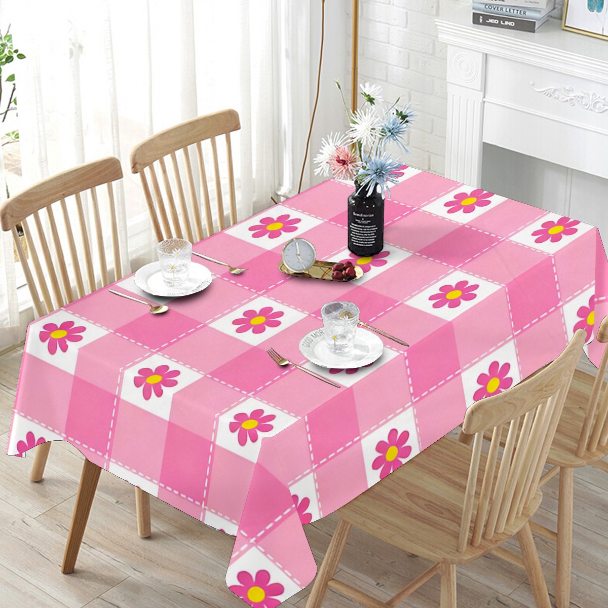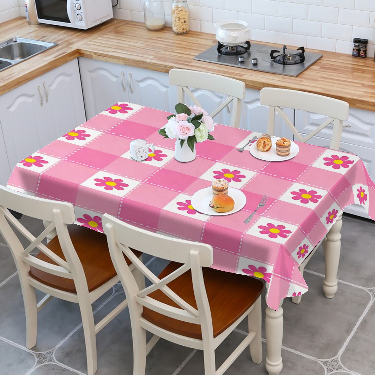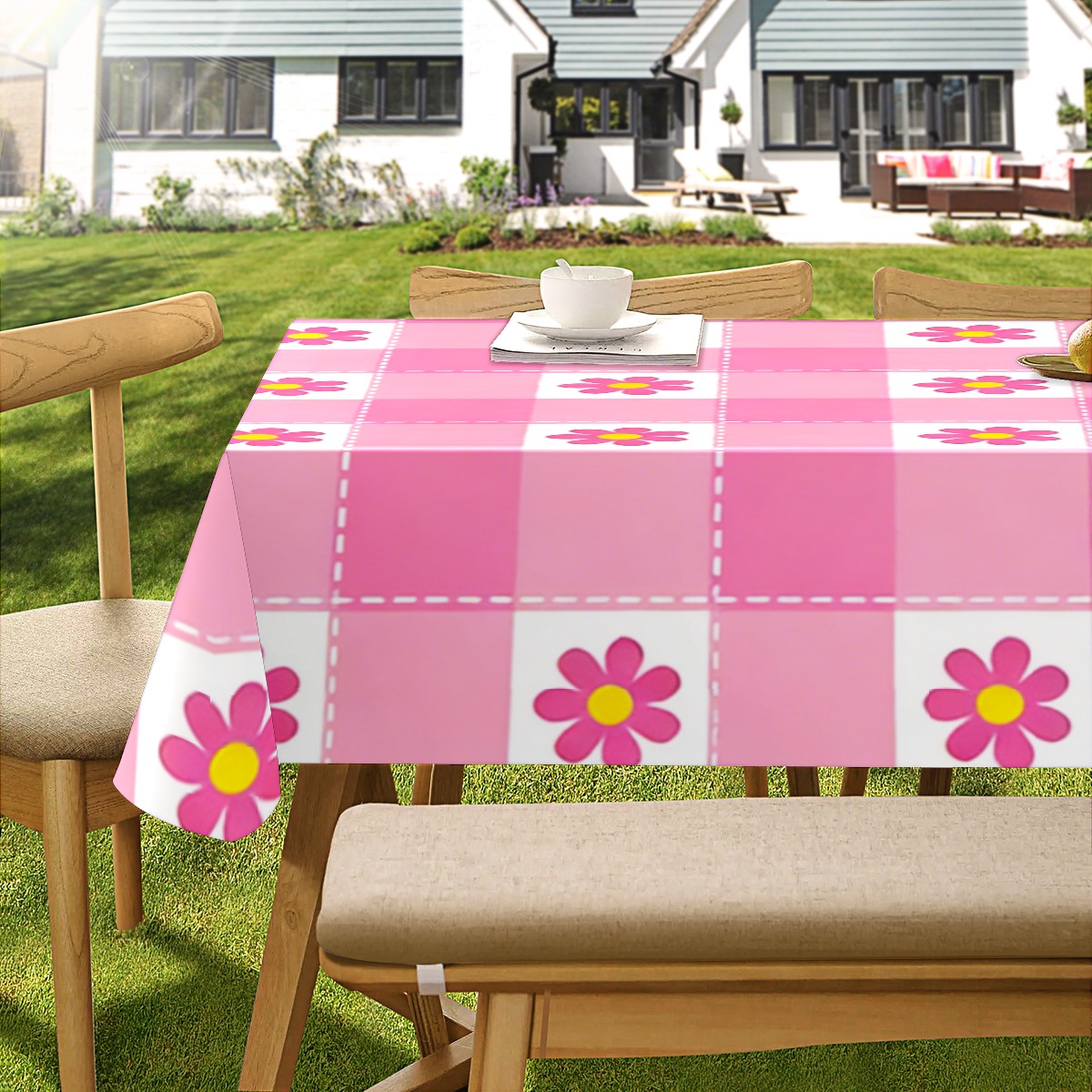 Sweet Flower Pink Tablecloth - Polyester Wrinkle-Resistant Table Cover | Durable, Stain-Resistant Tablecloth for Dining Room, Outdoor Patio, Picnic & Party