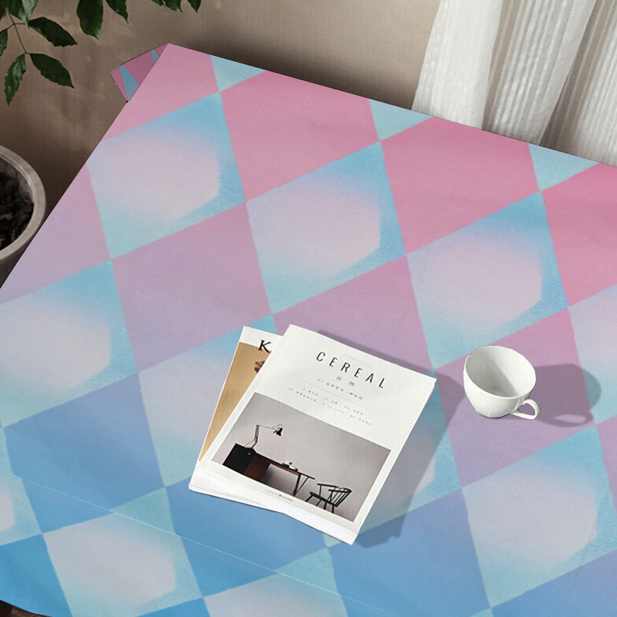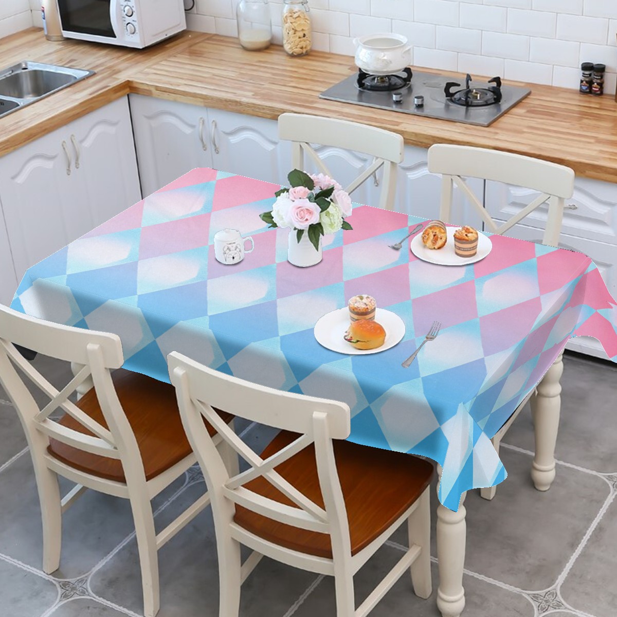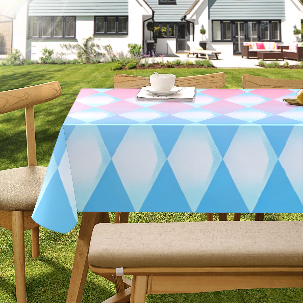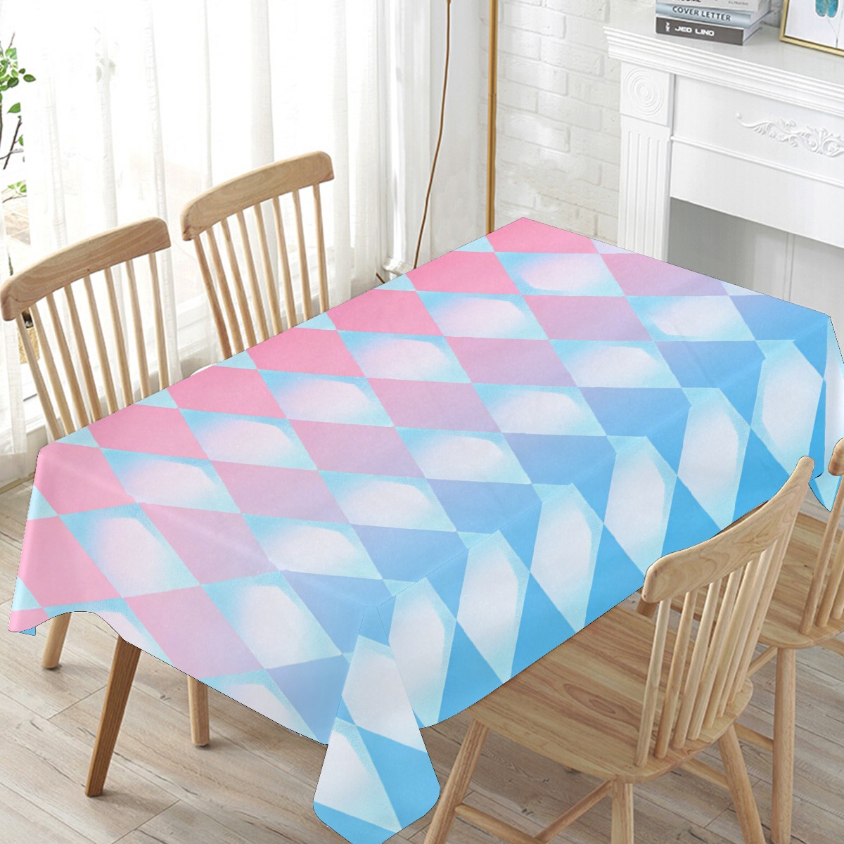 Diamond Plaid Pink Tablecloth - Polyester Wrinkle-Resistant Table Cover | Durable, Stain-Resistant Tablecloth for Dining Room, Outdoor Patio, Picnic & Party