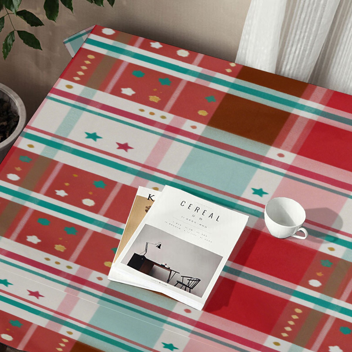 Vintage Plaid Red Tablecloth - Polyester Wrinkle-Resistant Table Cover | Durable, Stain-Resistant Tablecloth for Dining Room, Outdoor Patio, Picnic & Party