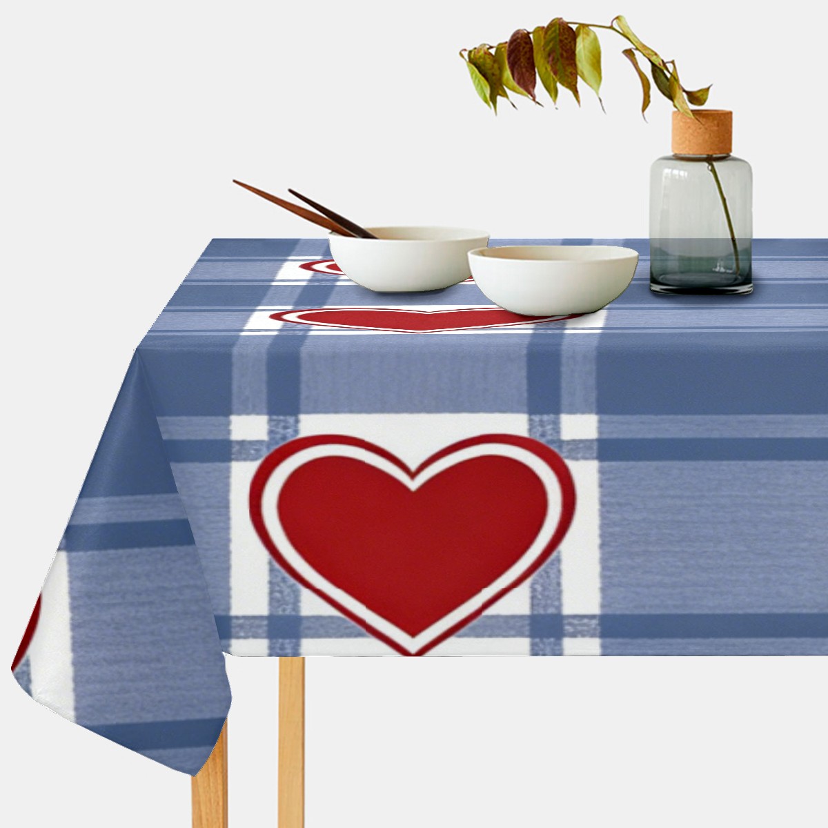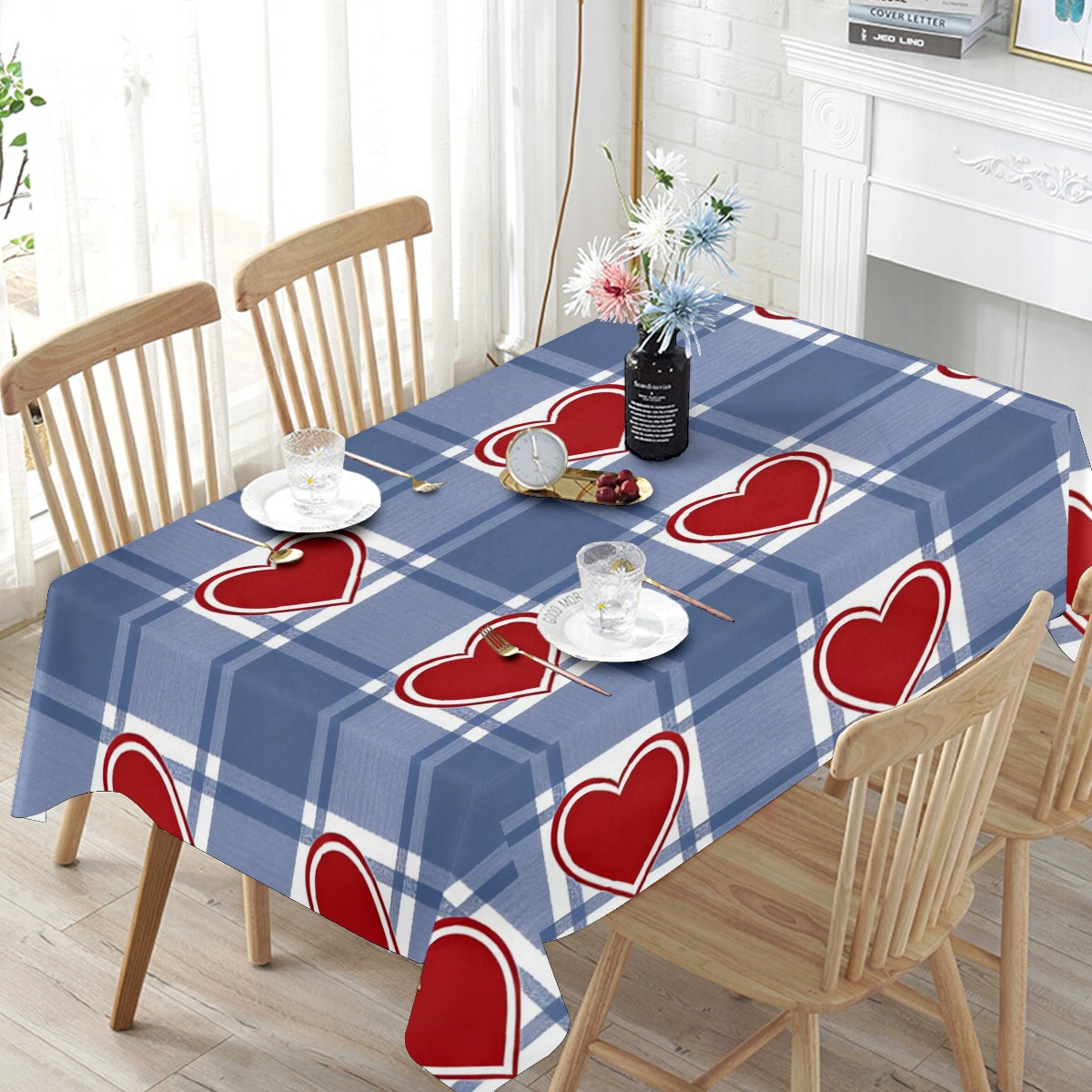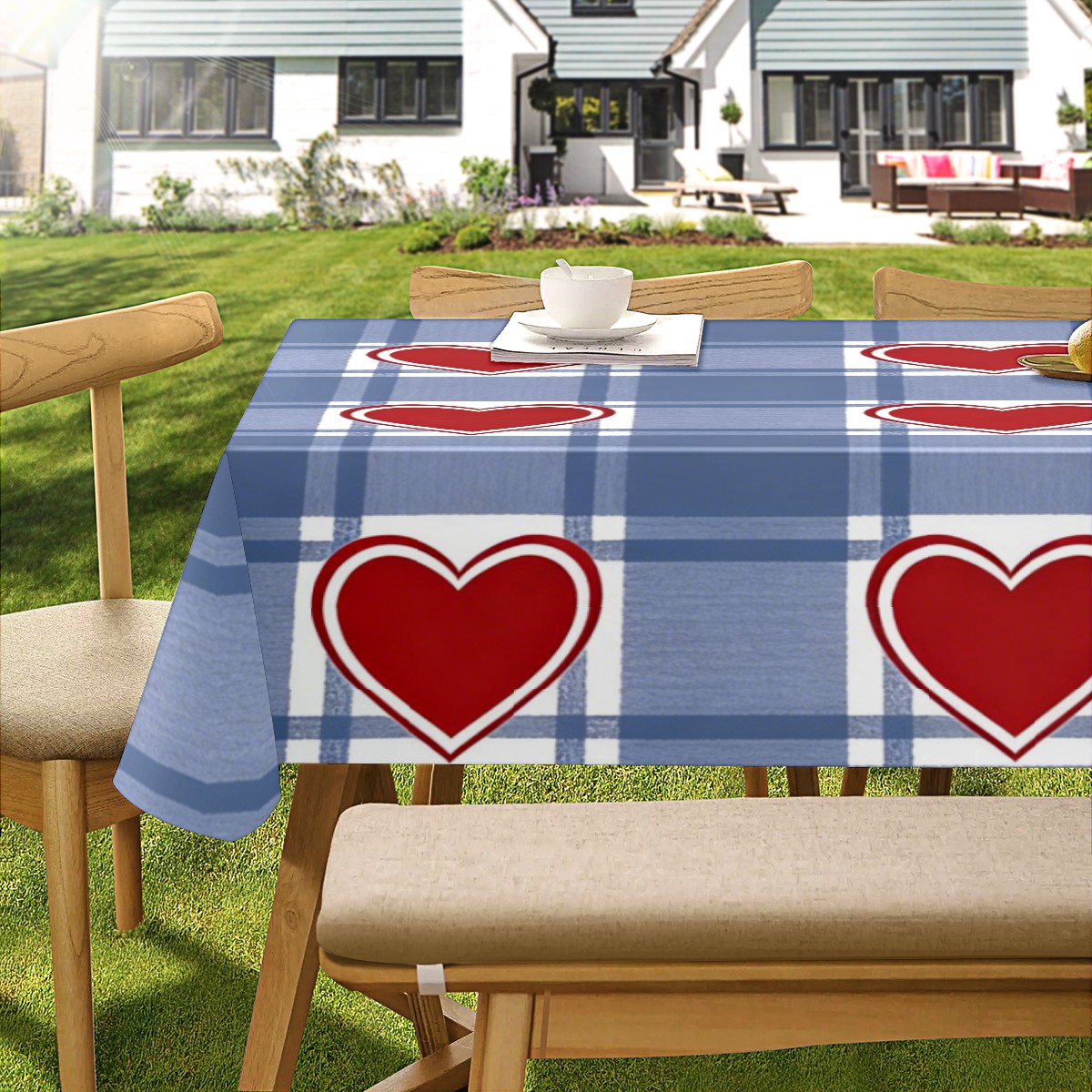 Passionate Heart Plaid Tablecloth - Polyester Wrinkle-Resistant Table Cover | Durable, Stain-Resistant Tablecloth for Dining Room, Outdoor Patio, Picnic & Party