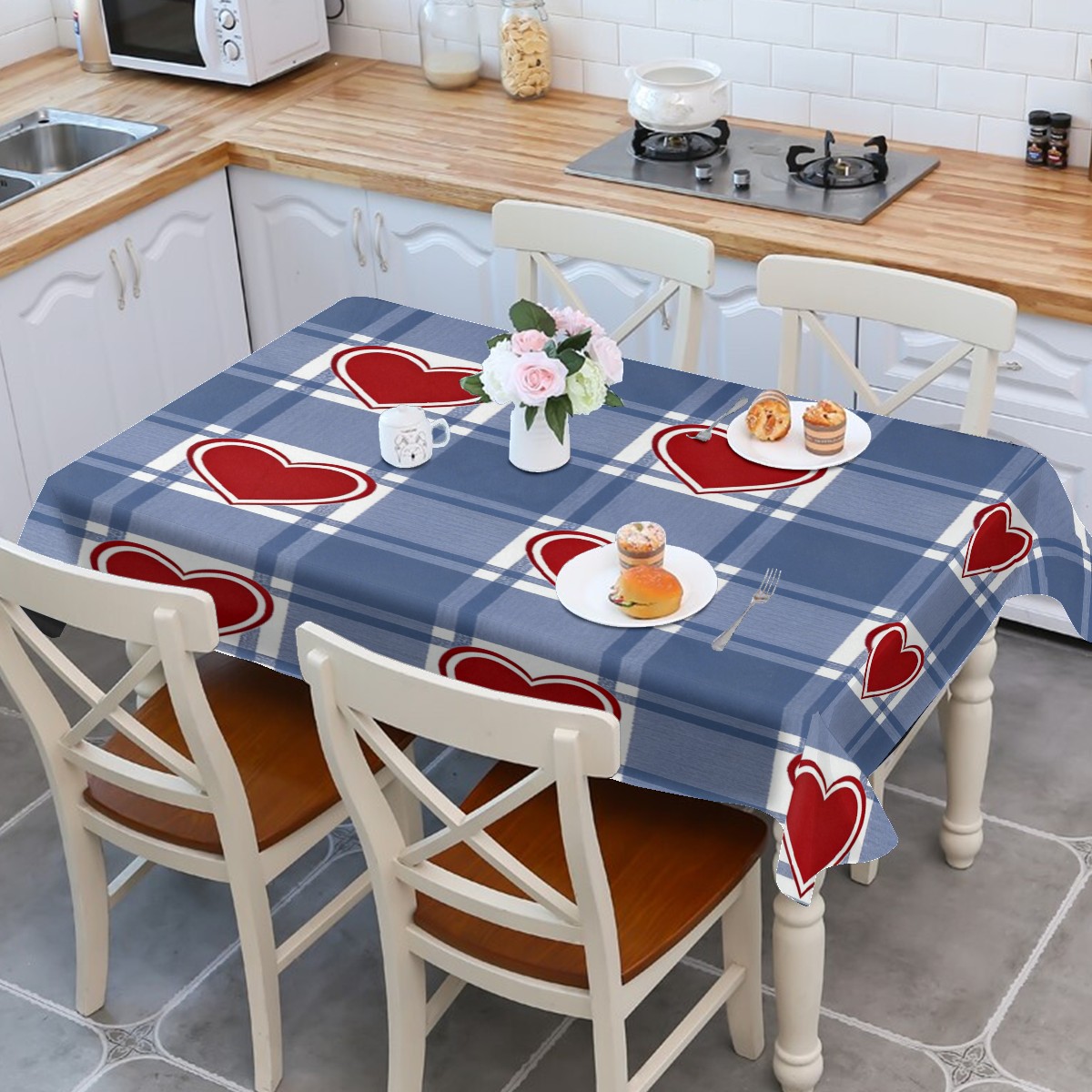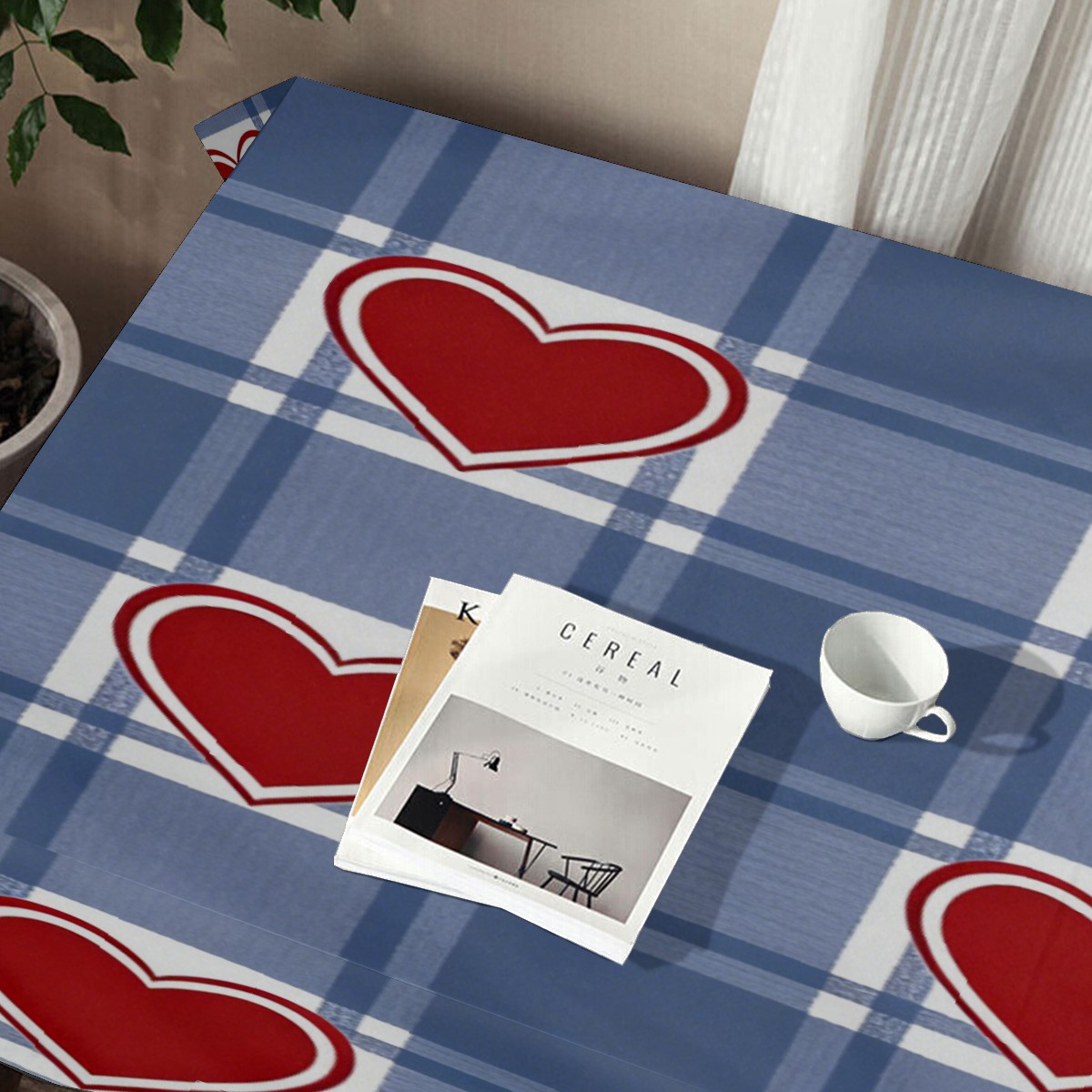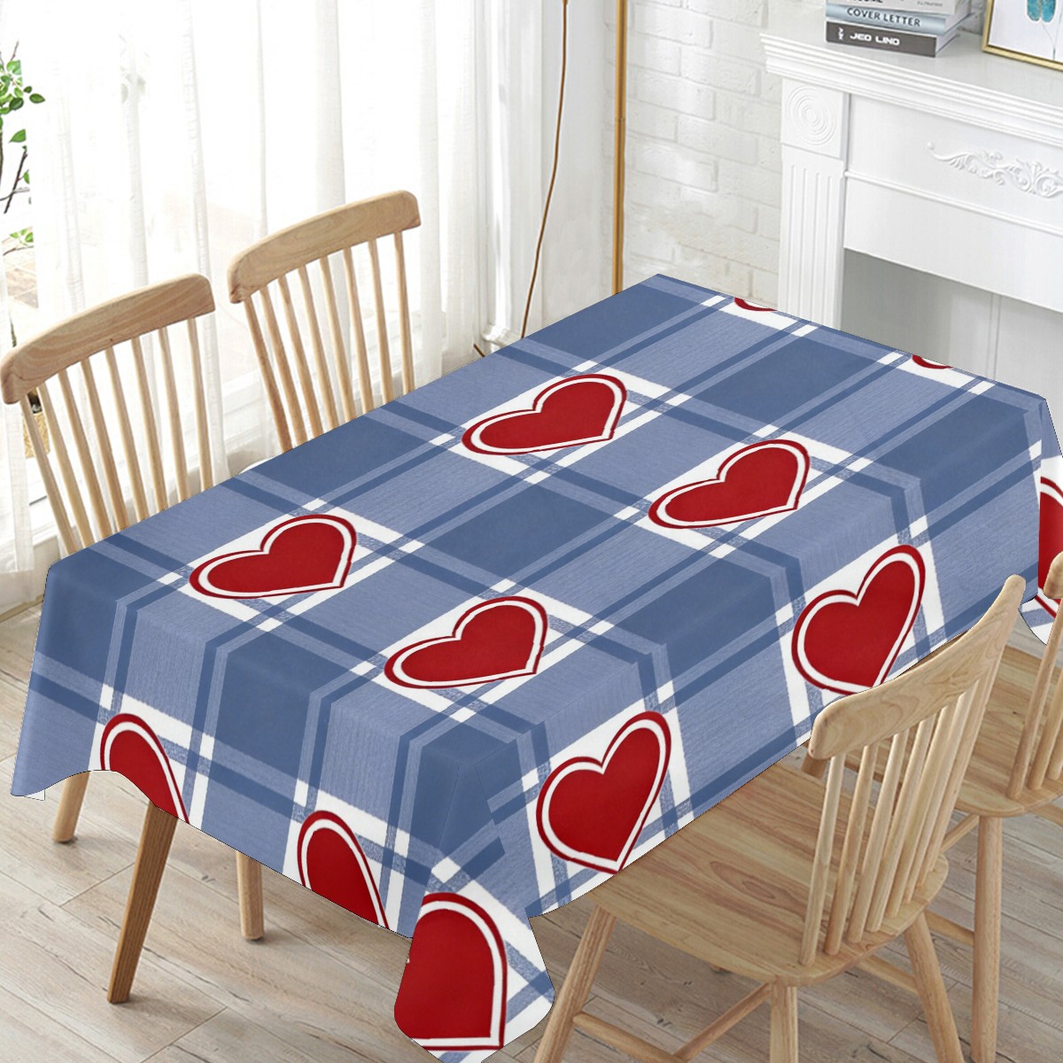 Passionate Heart Plaid Tablecloth - Polyester Wrinkle-Resistant Table Cover | Durable, Stain-Resistant Tablecloth for Dining Room, Outdoor Patio, Picnic & Party
