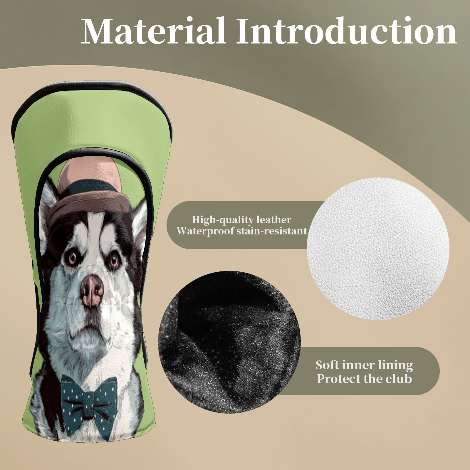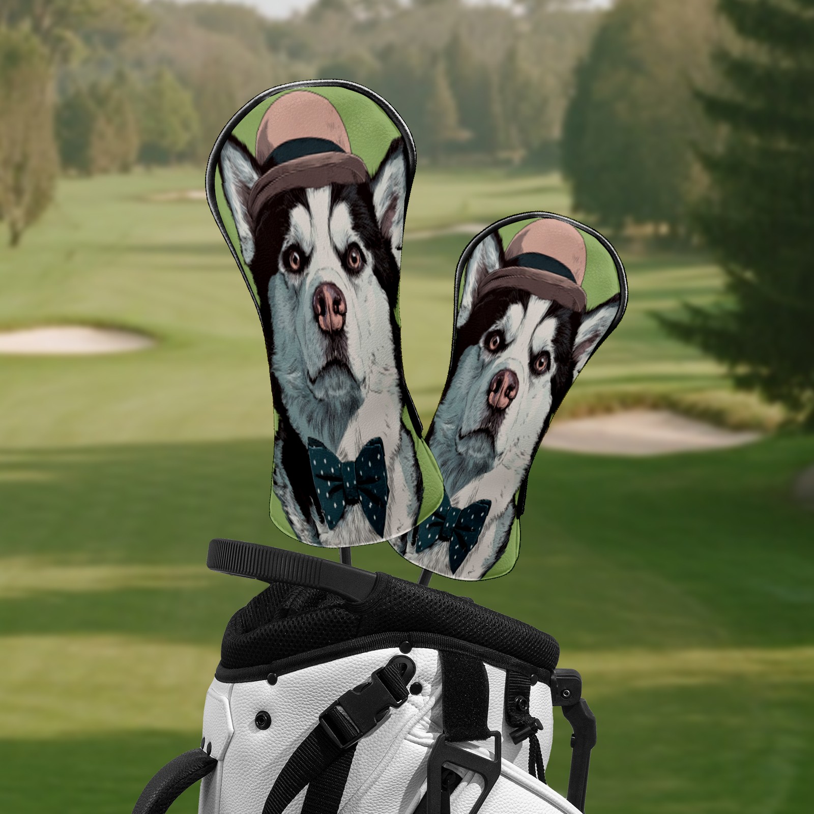 Golf Club Head Covers Funny Husky Dog Waterproof Leather Golf Head Covers for Men Women Driver Head Cover Fairway Headcover for Golf Lovers