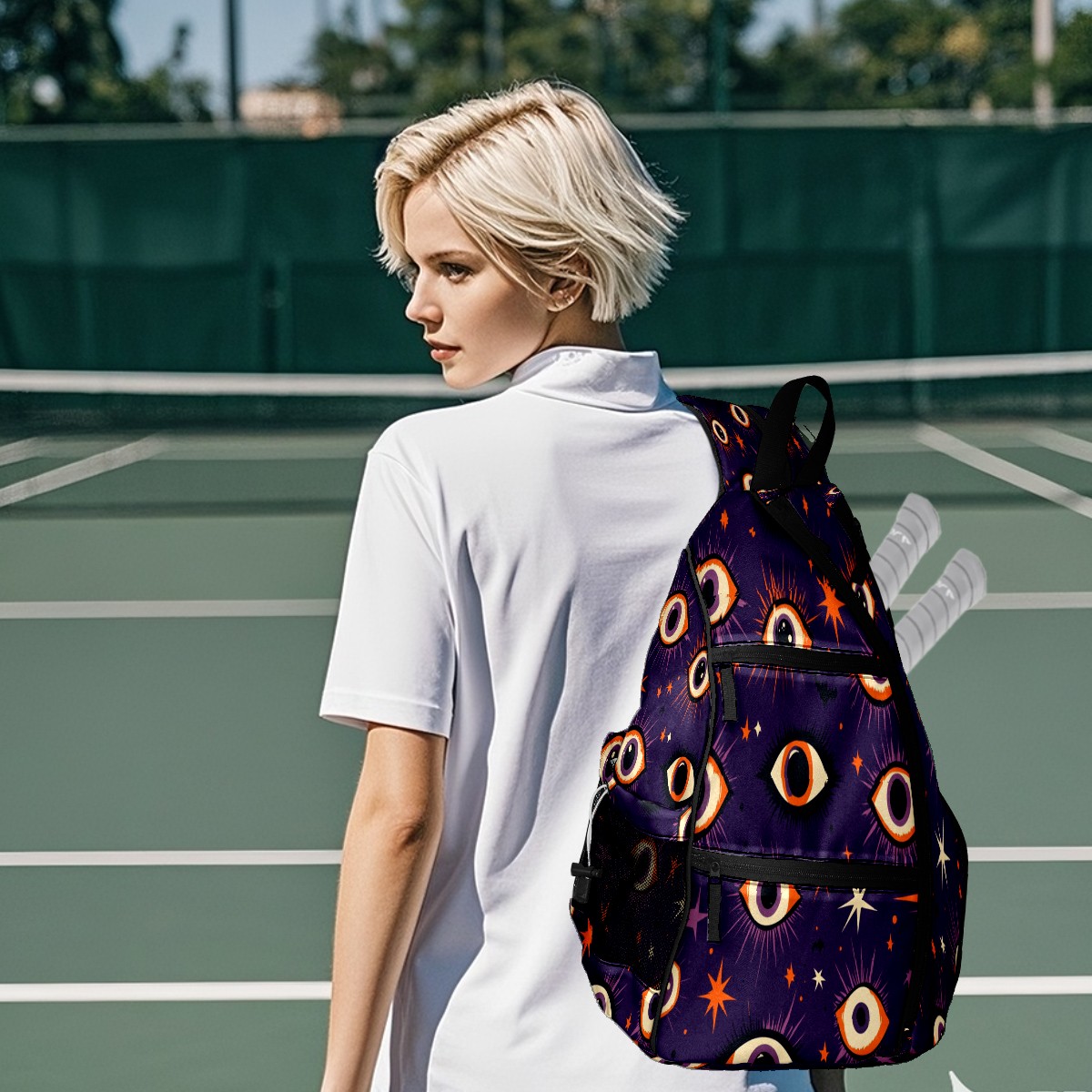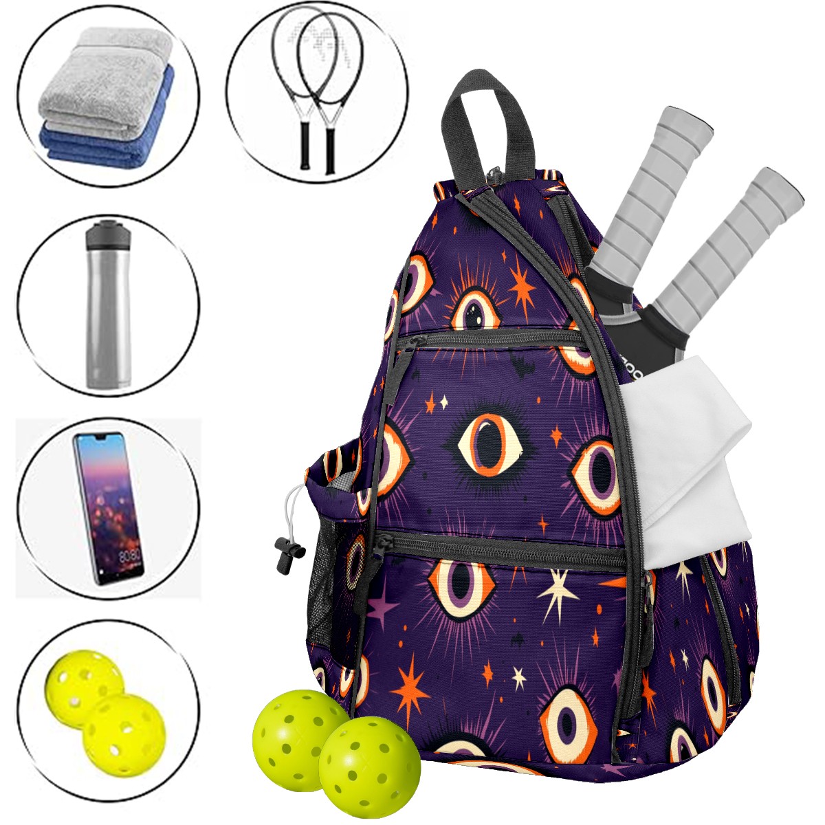 Multifunctional Pickleball Bag,Large Capacity Sports Pickleball Racket Bag, Water Bottle Holder and Fence Hook,Suitable for Both Men Women Multiple Eyes