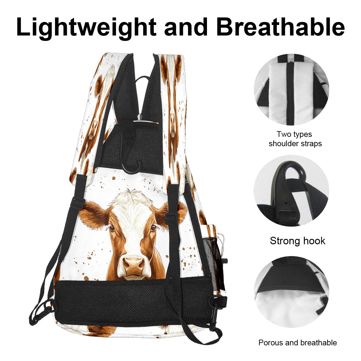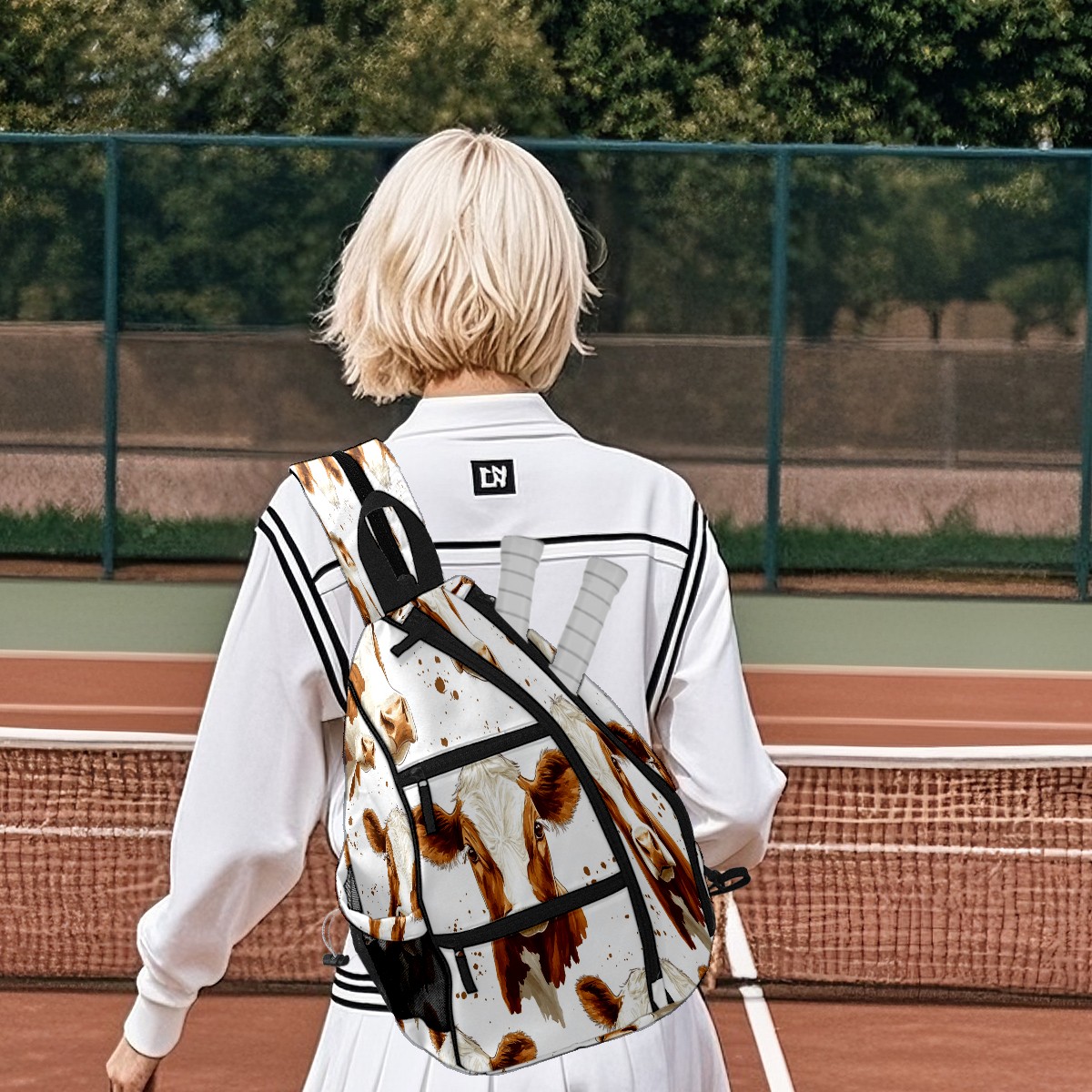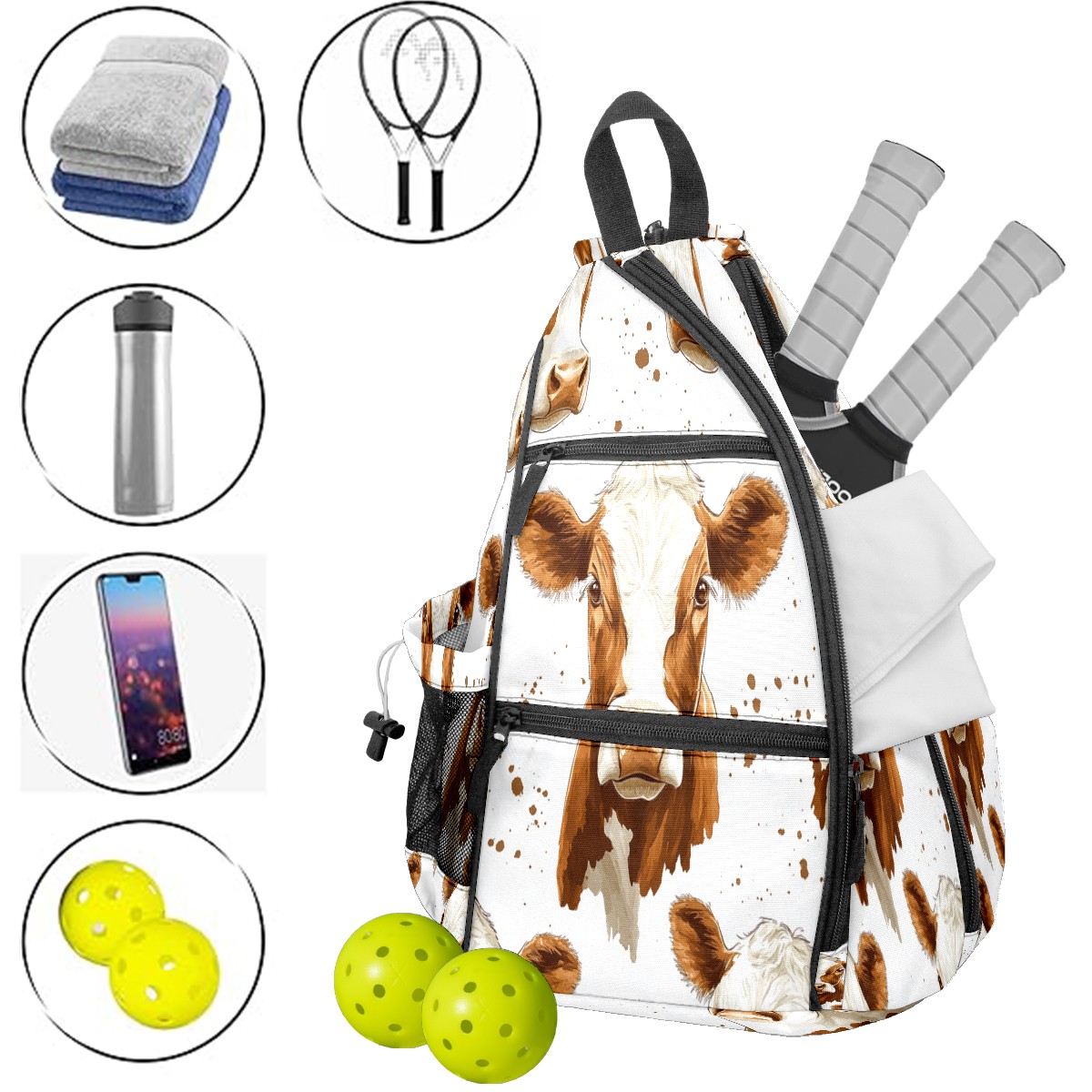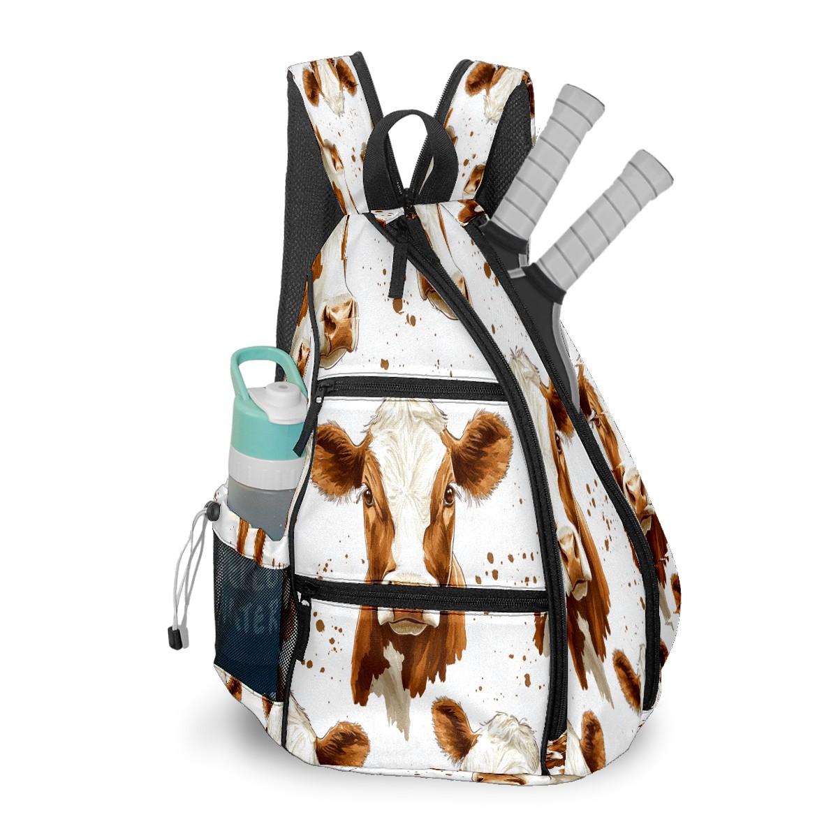 Multifunctional Pickleball Bag,Large Capacity Sports Pickleball Racket Bag, Water Bottle Holder and Fence Hook,Suitable for Both Men Women Cow Head