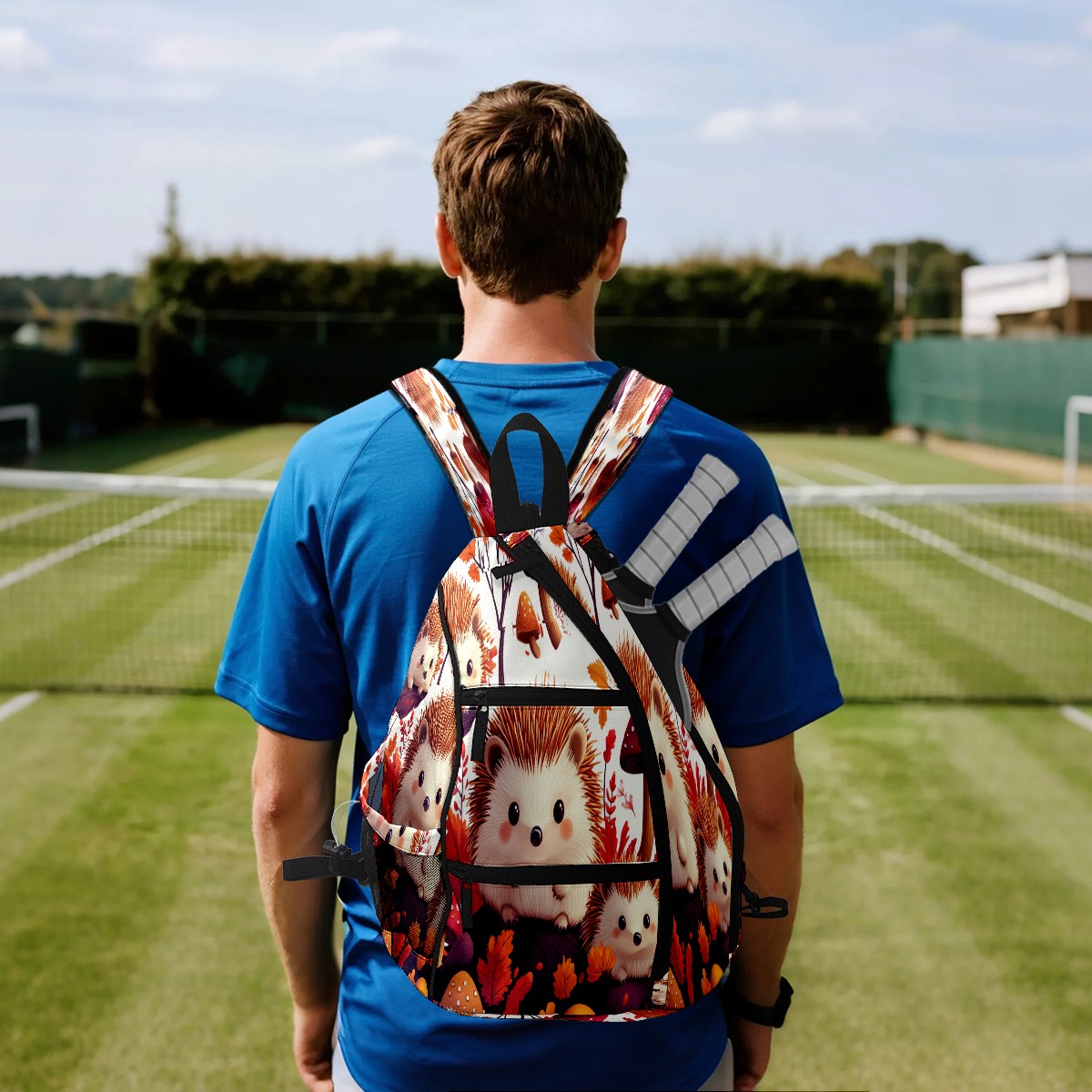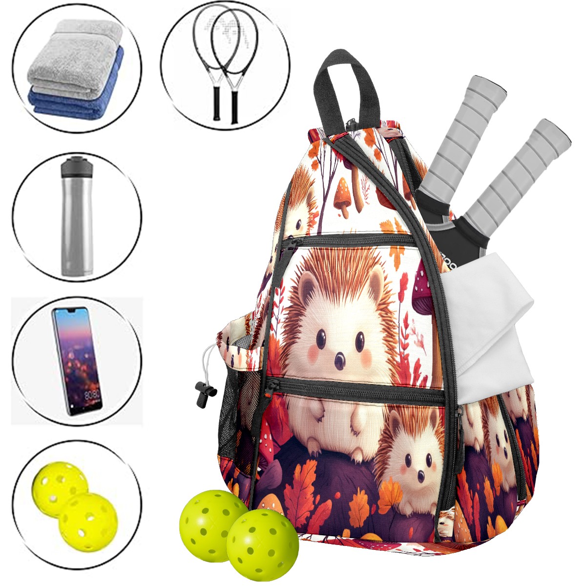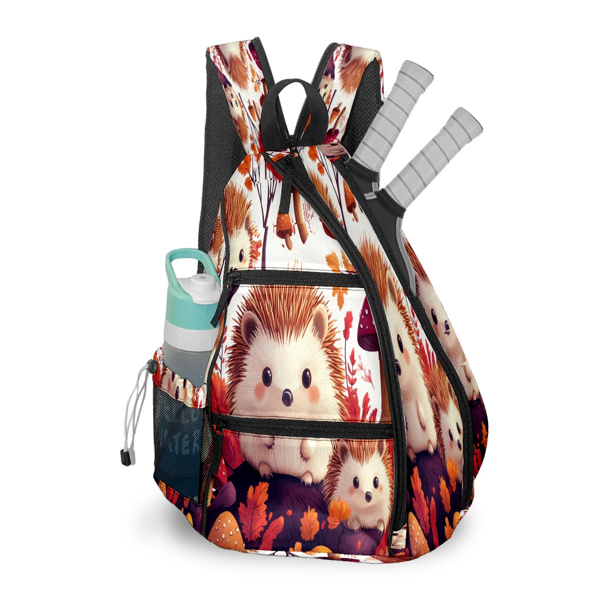Multifunctional Pickleball Bag,Large Capacity Sports Pickleball Racket Bag, Water Bottle Holder and Fence Hook,Suitable for Both Men Women Hedgehog Mushroom
