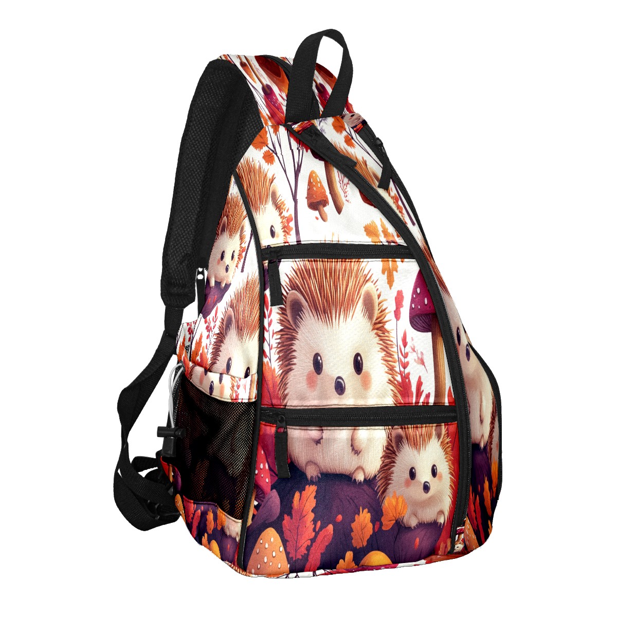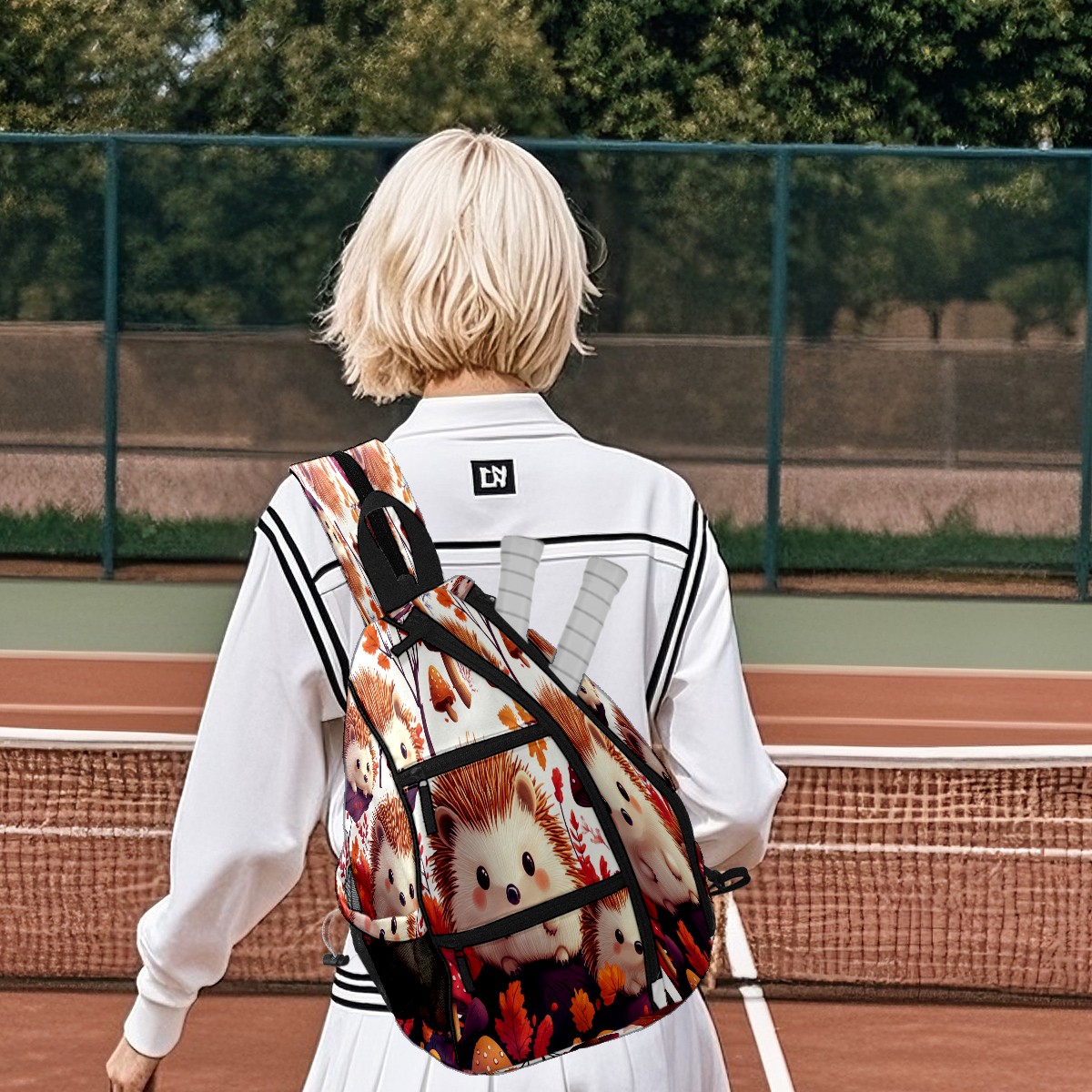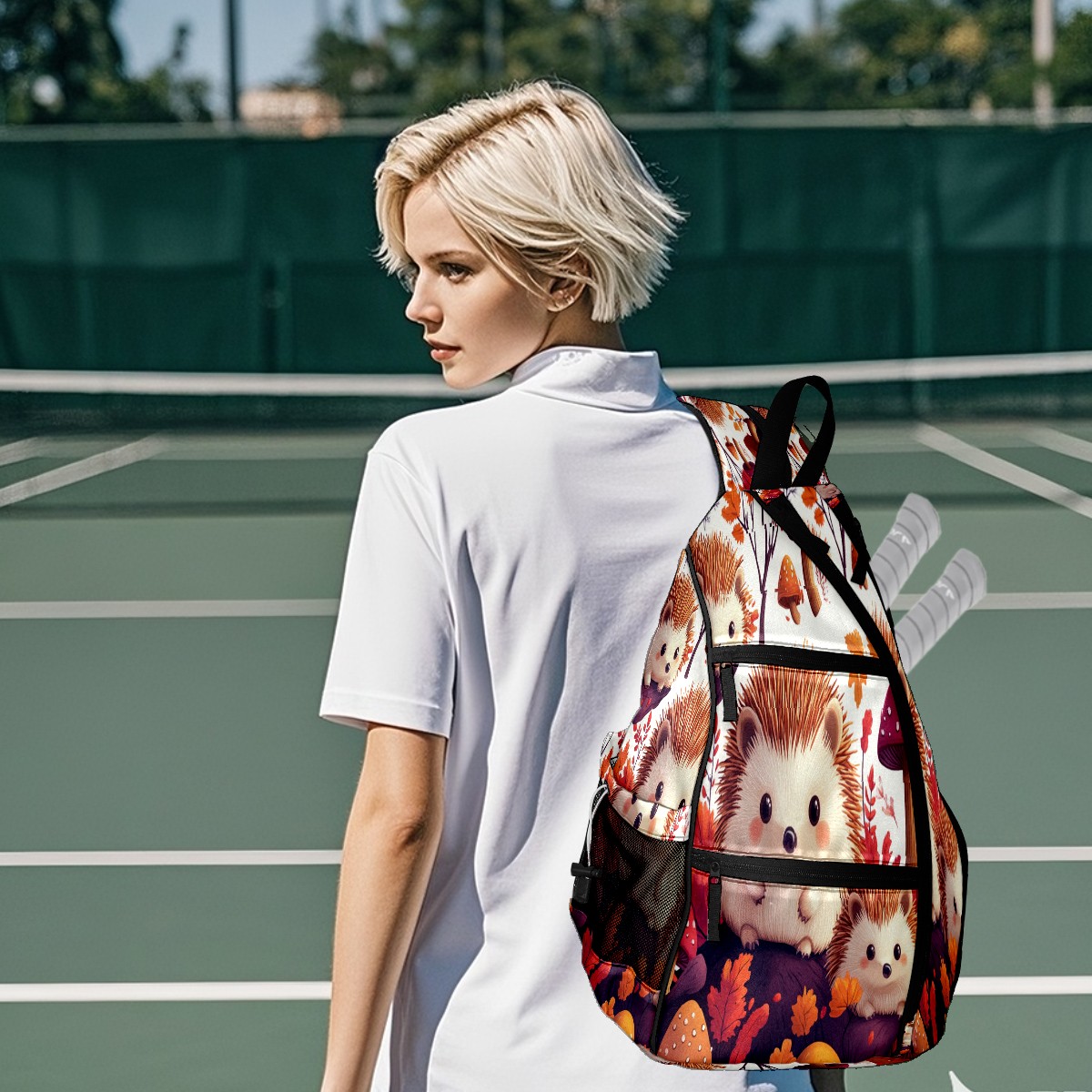 Multifunctional Pickleball Bag,Large Capacity Sports Pickleball Racket Bag, Water Bottle Holder and Fence Hook,Suitable for Both Men Women Hedgehog Mushroom