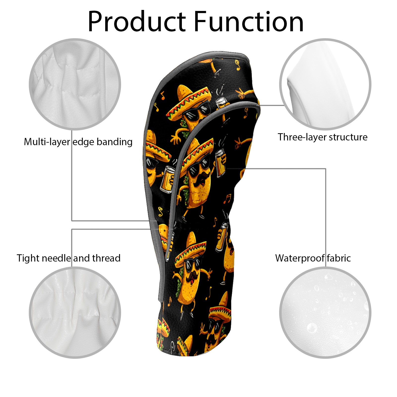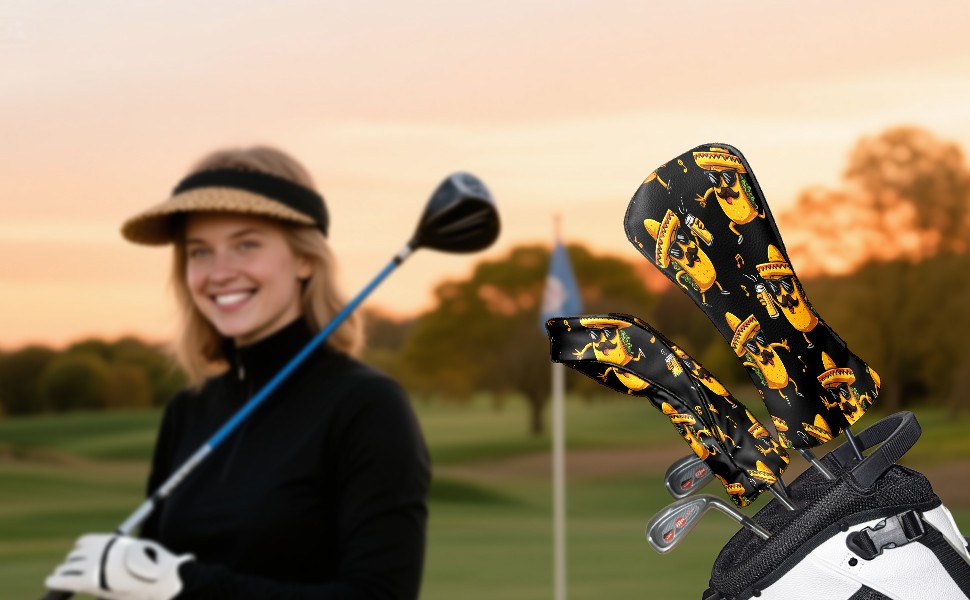 Golf Club Head Cover, High Quality PU Leather Driver and Wood Club Head Cover with Anti-Scratch Lining, Mexican-style Corn Tacos Universal Gift for Men and Women