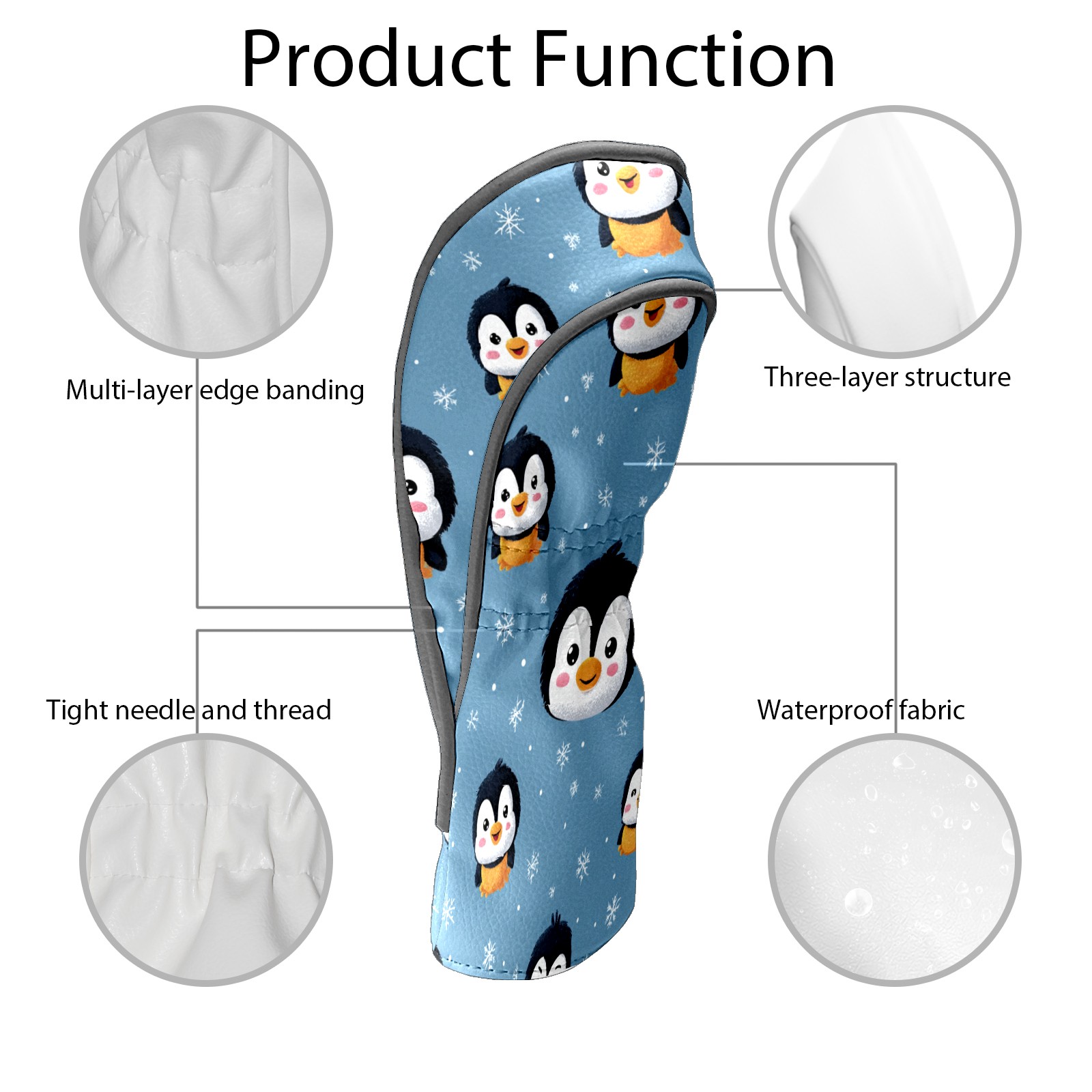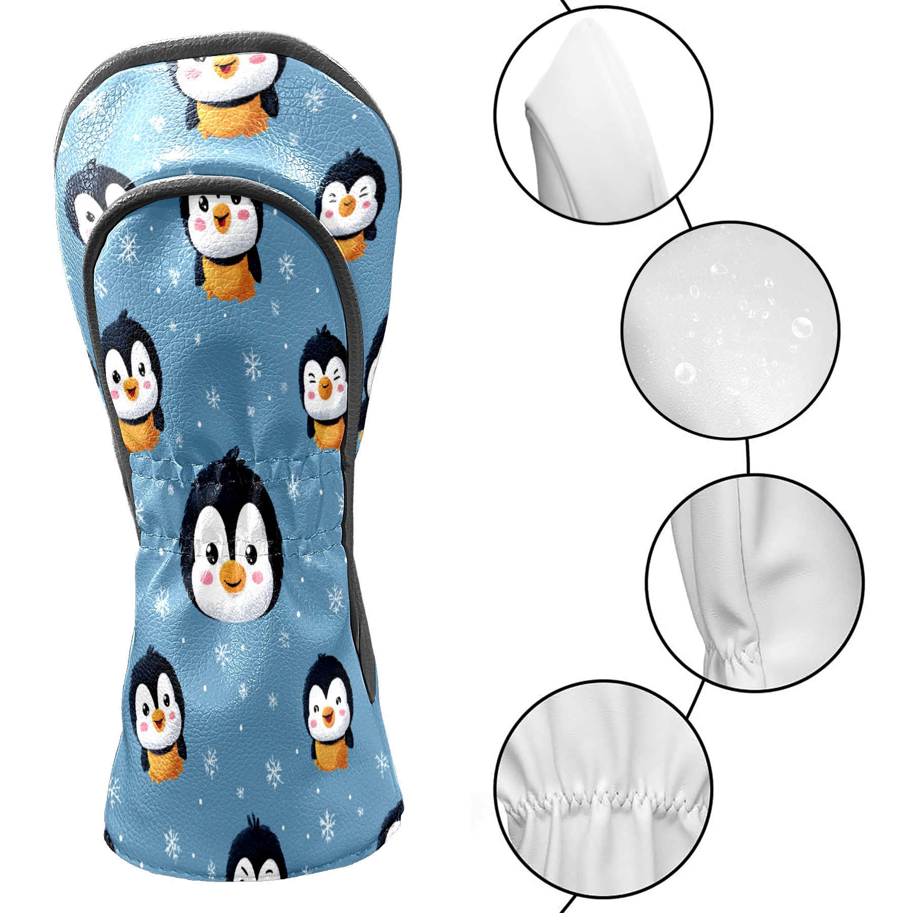 Golf Club Head Cover, High Quality PU Leather Driver and Wood Club Head Cover with Anti-Scratch Lining, Penguin Universal Gift for Men and Women