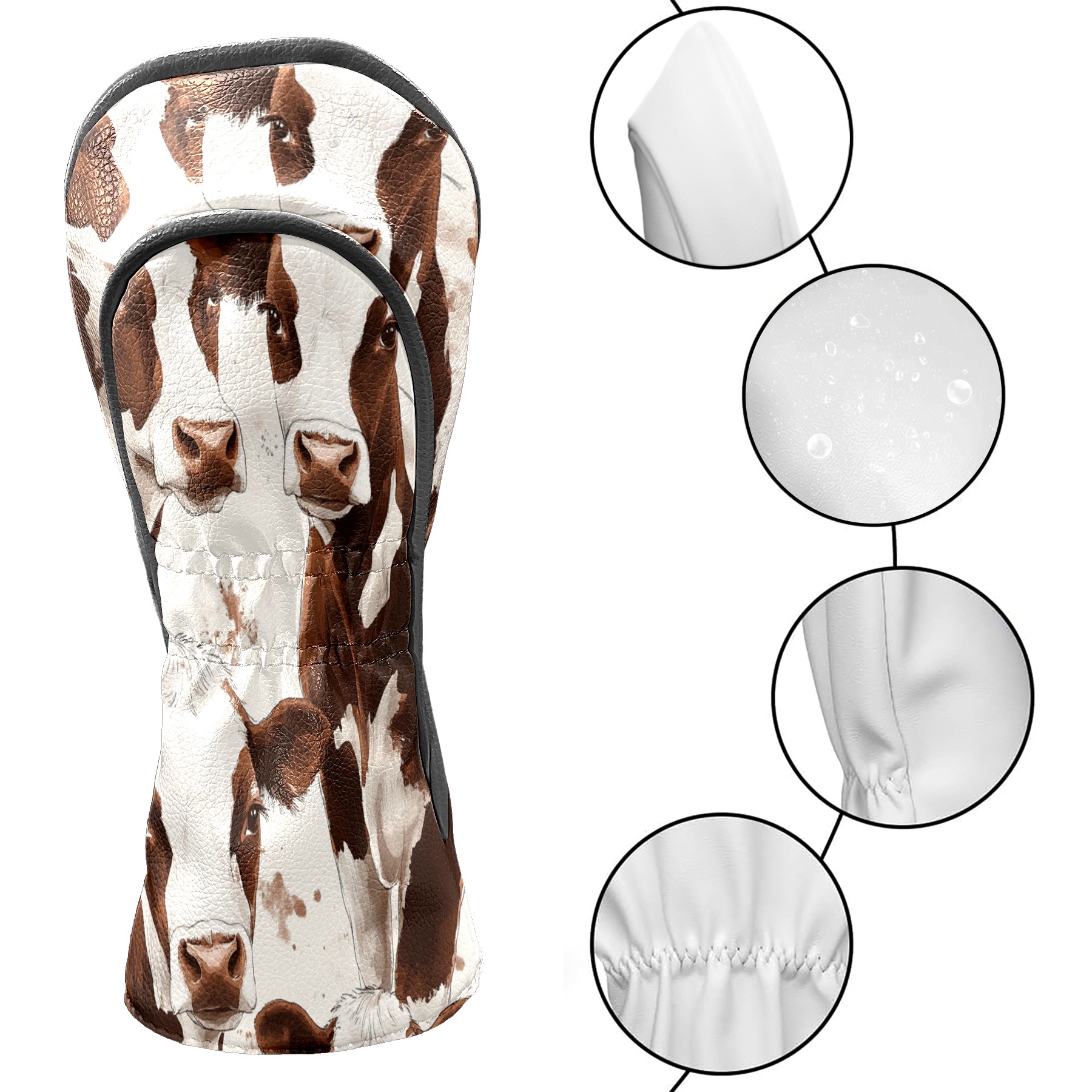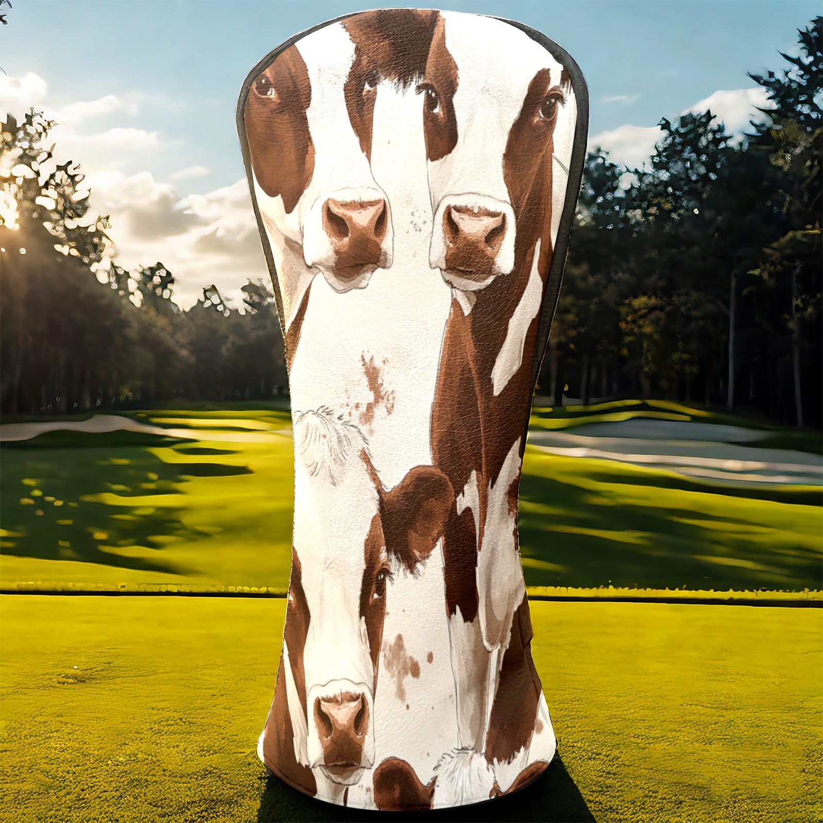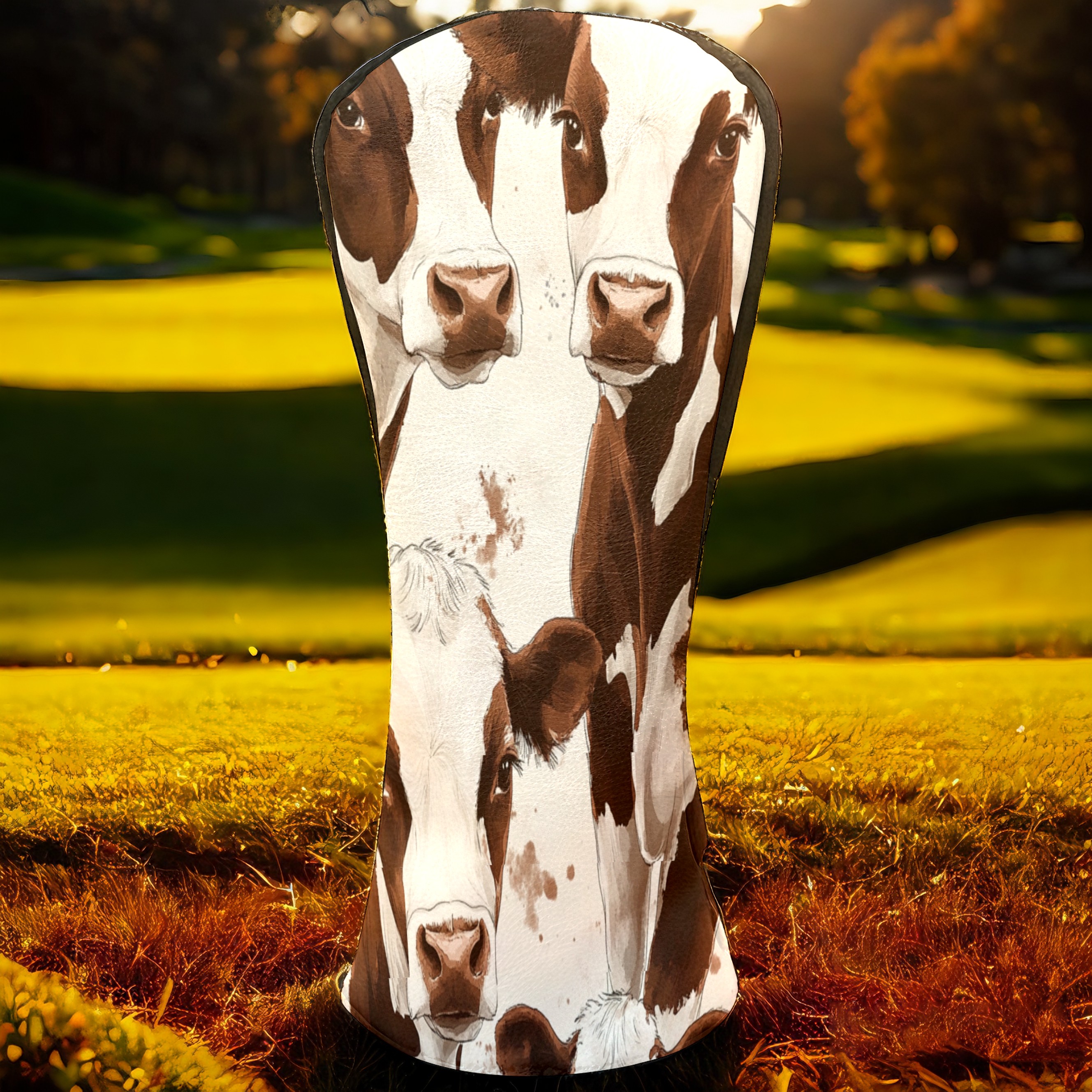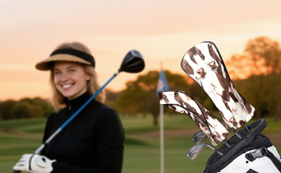 Golf Club Head Cover, High Quality PU Leather Driver and Wood Club Head Cover with Anti-Scratch Lining, Dairy Herd Universal Gift for Men and Women