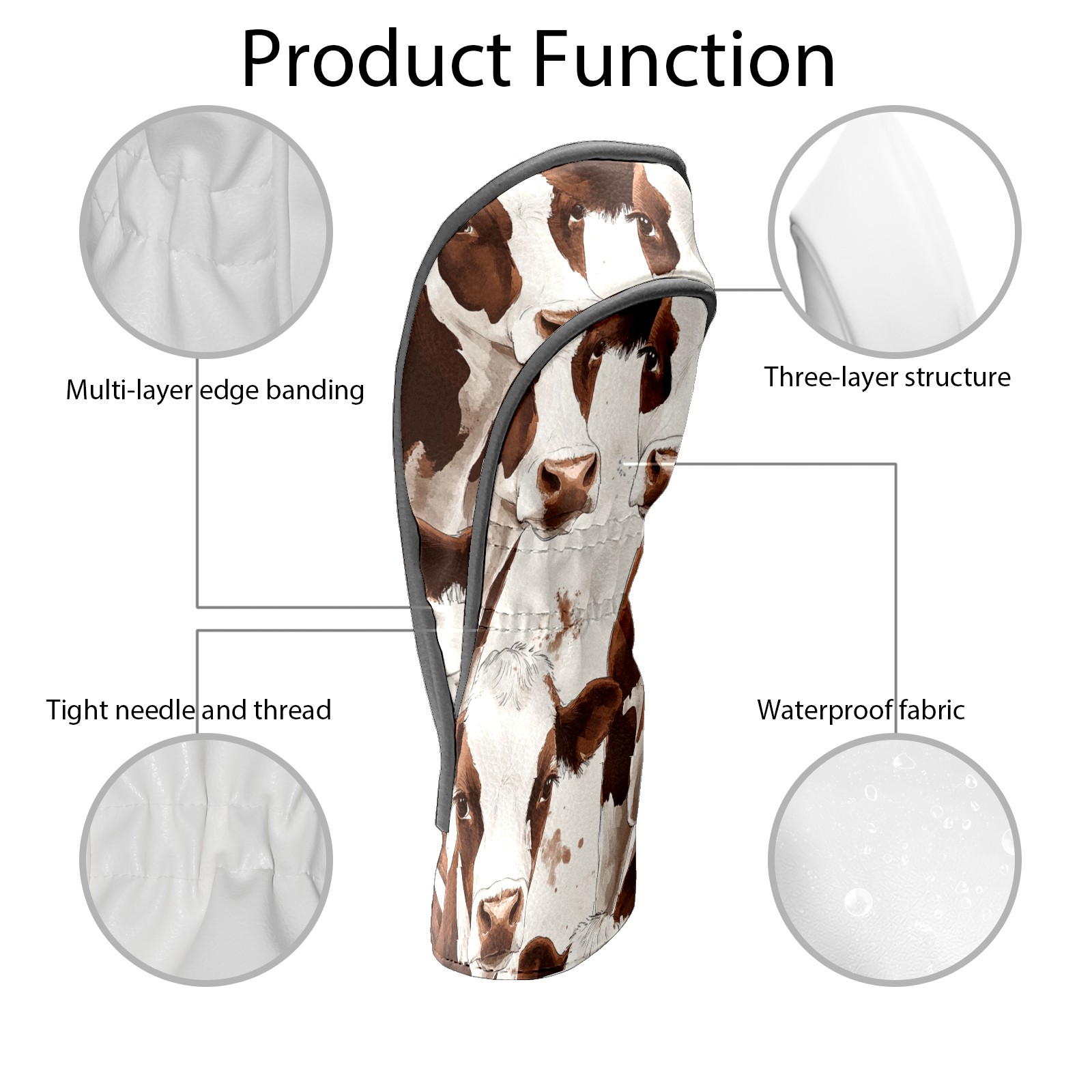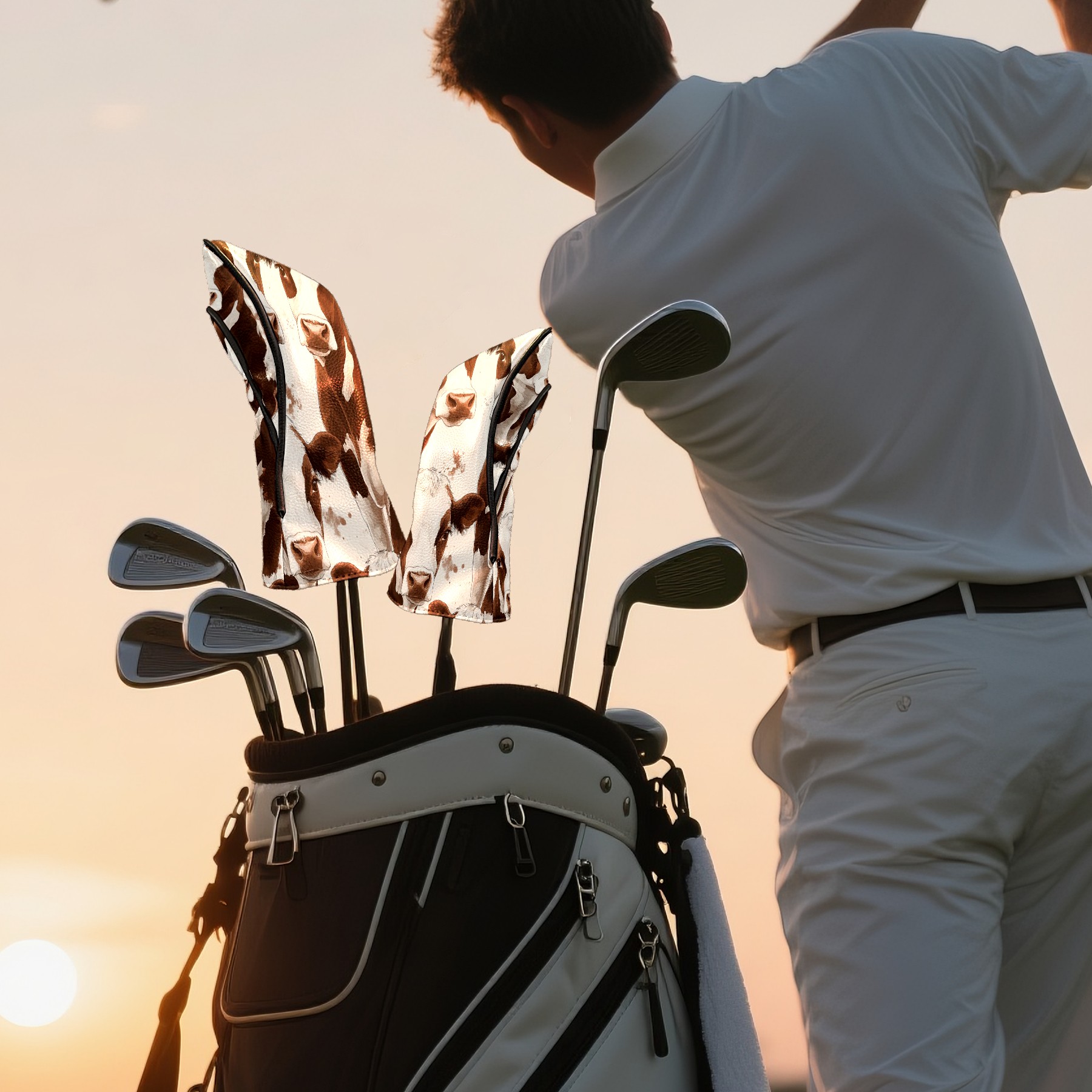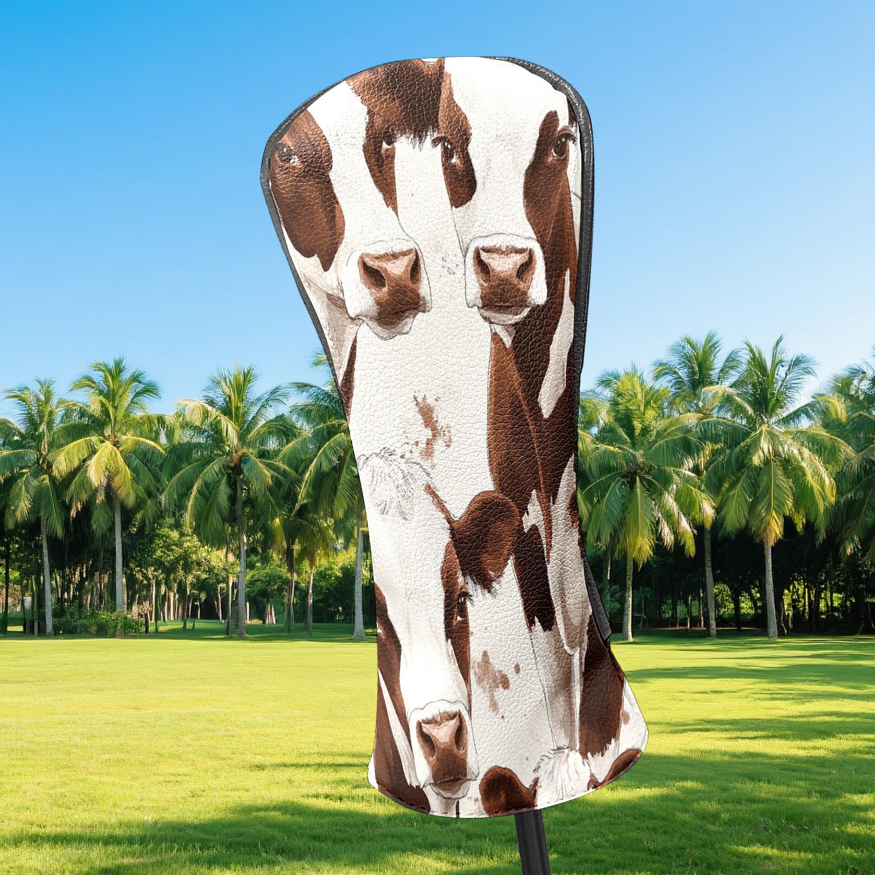 Golf Club Head Cover, High Quality PU Leather Driver and Wood Club Head Cover with Anti-Scratch Lining, Dairy Herd Universal Gift for Men and Women
