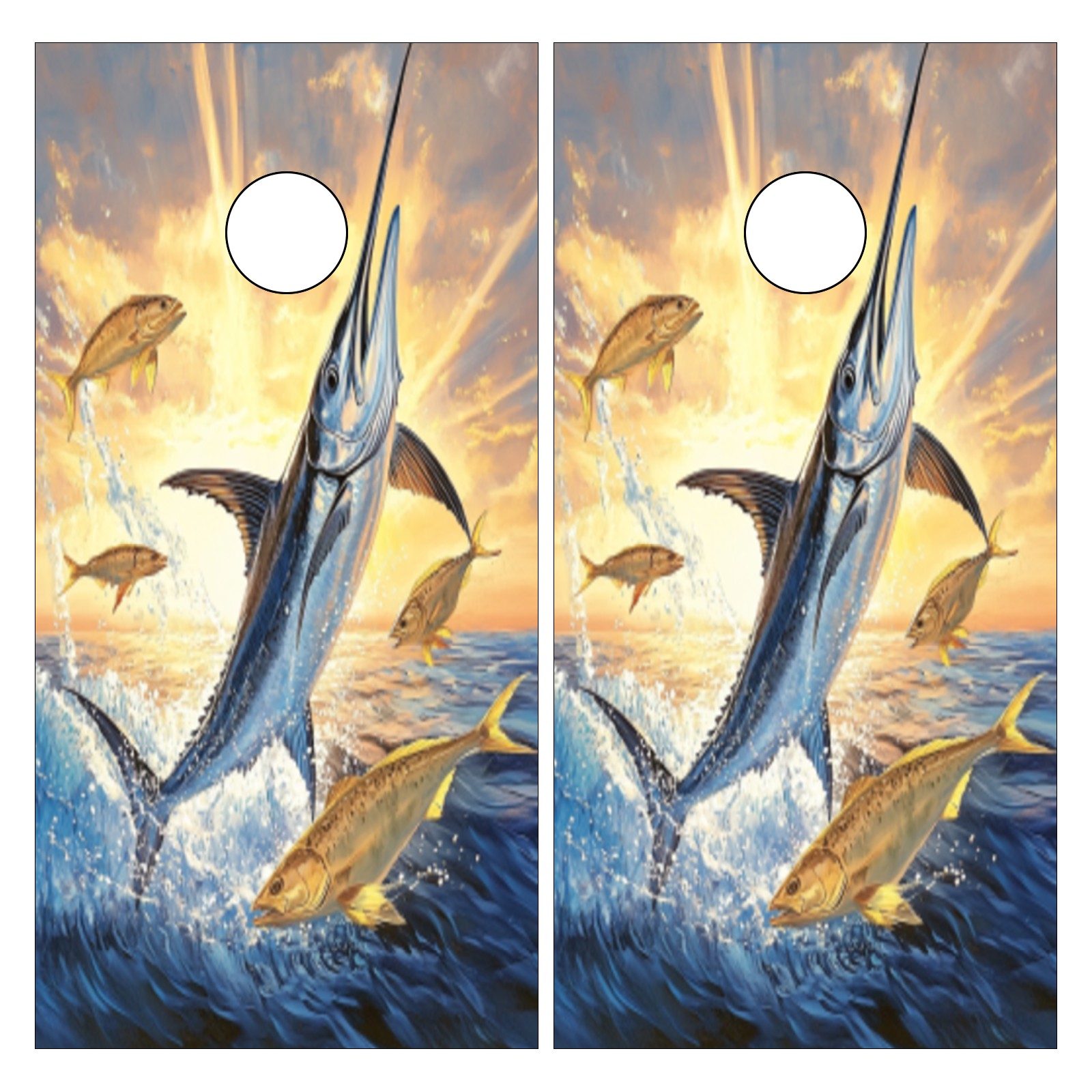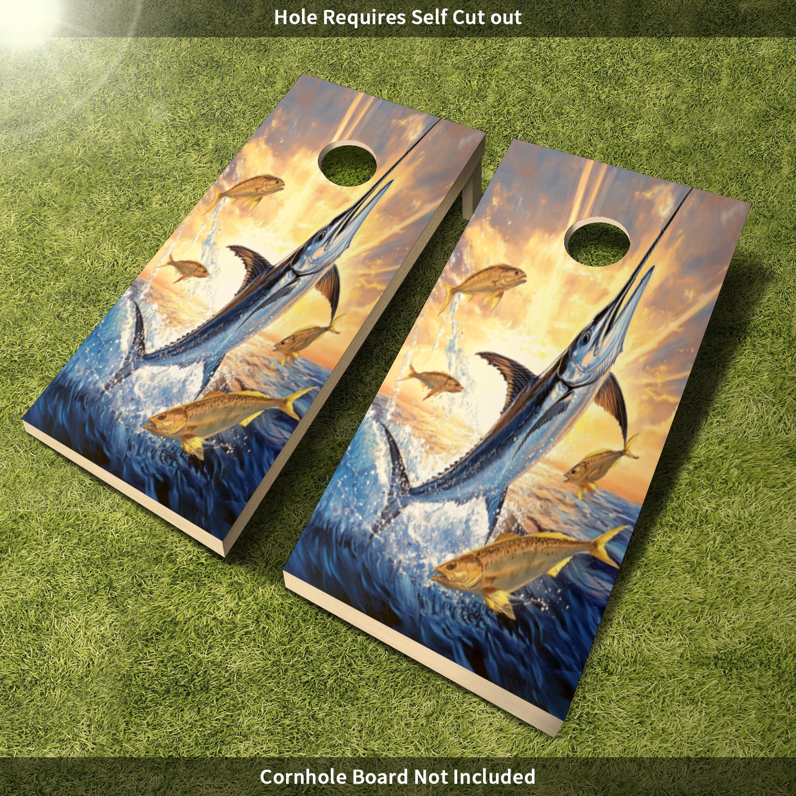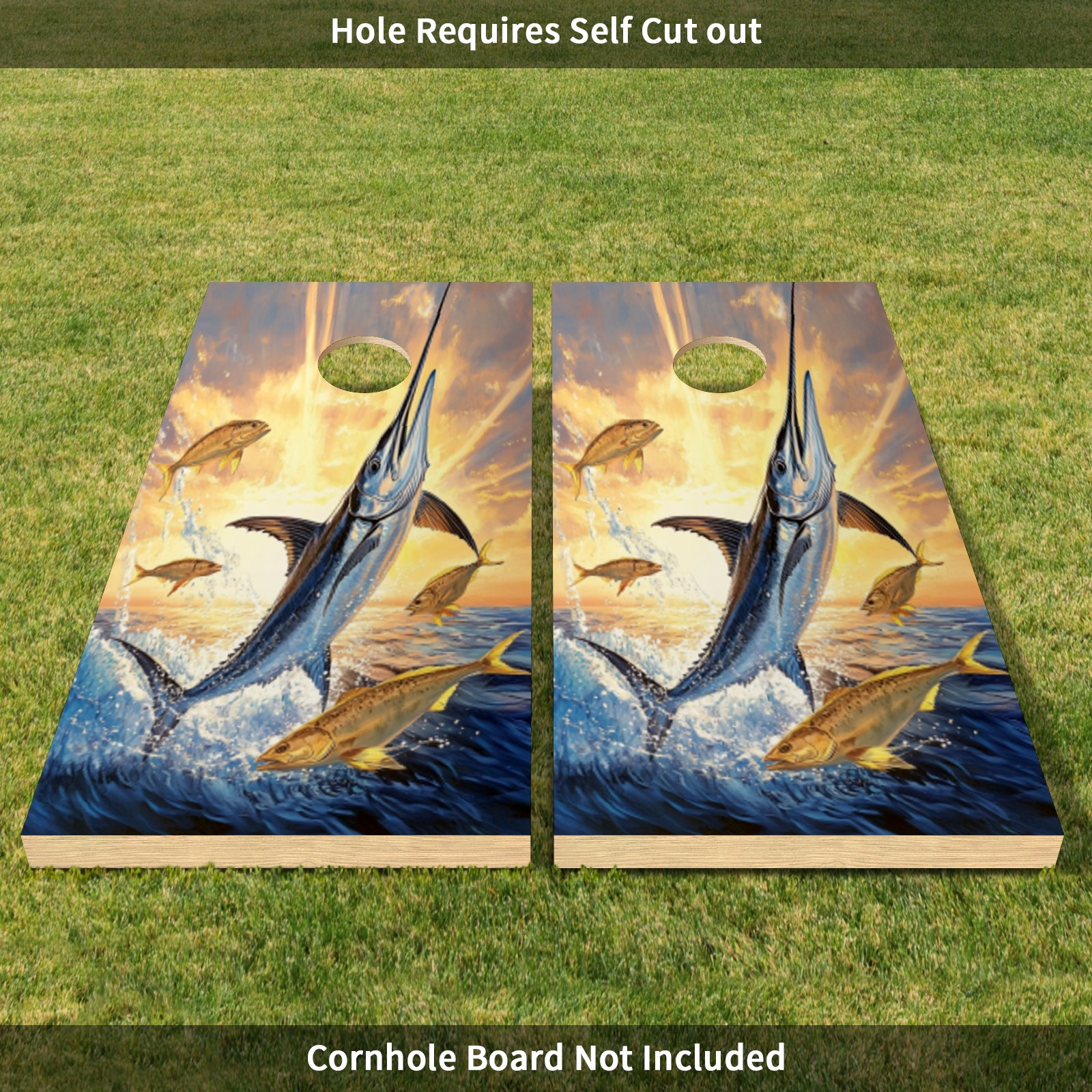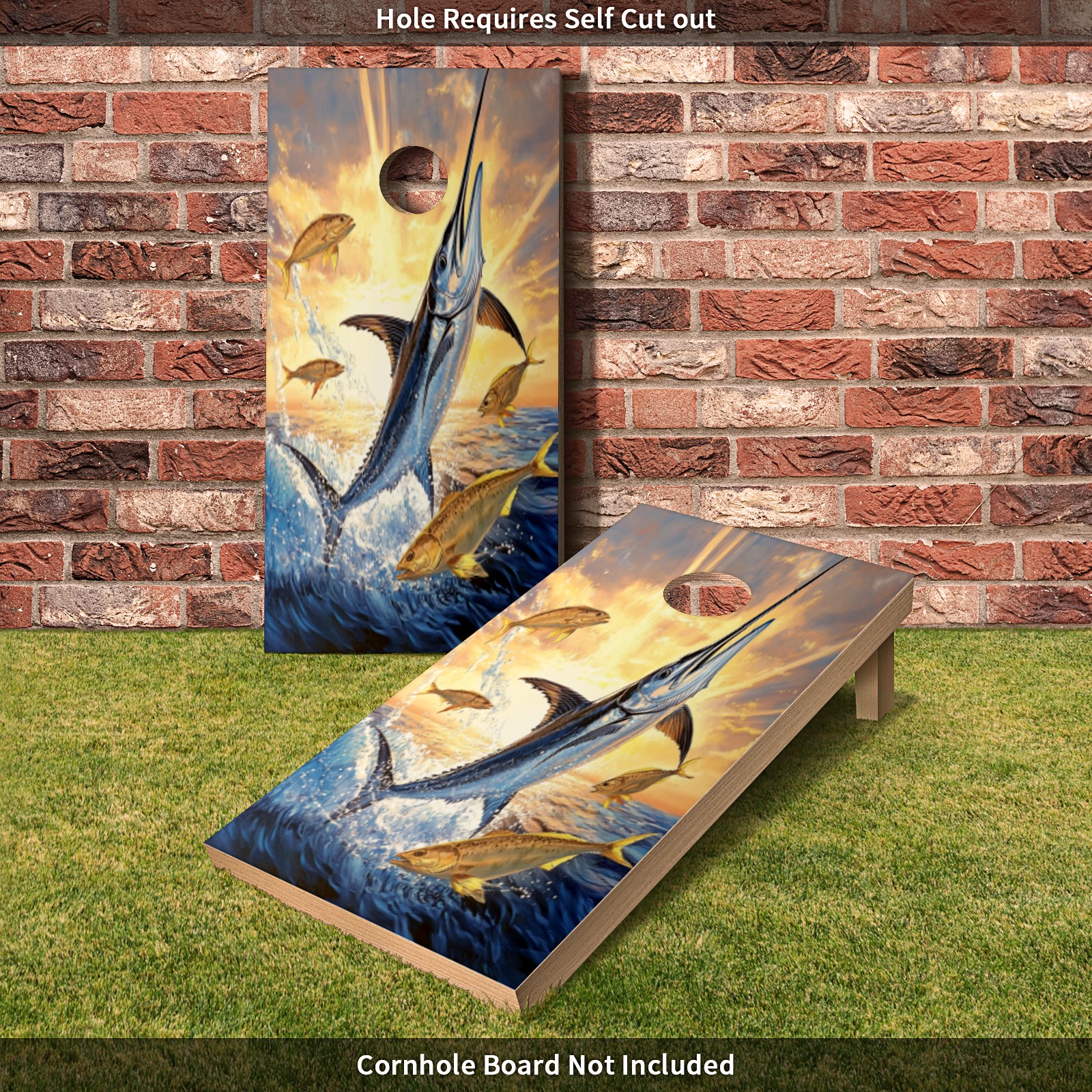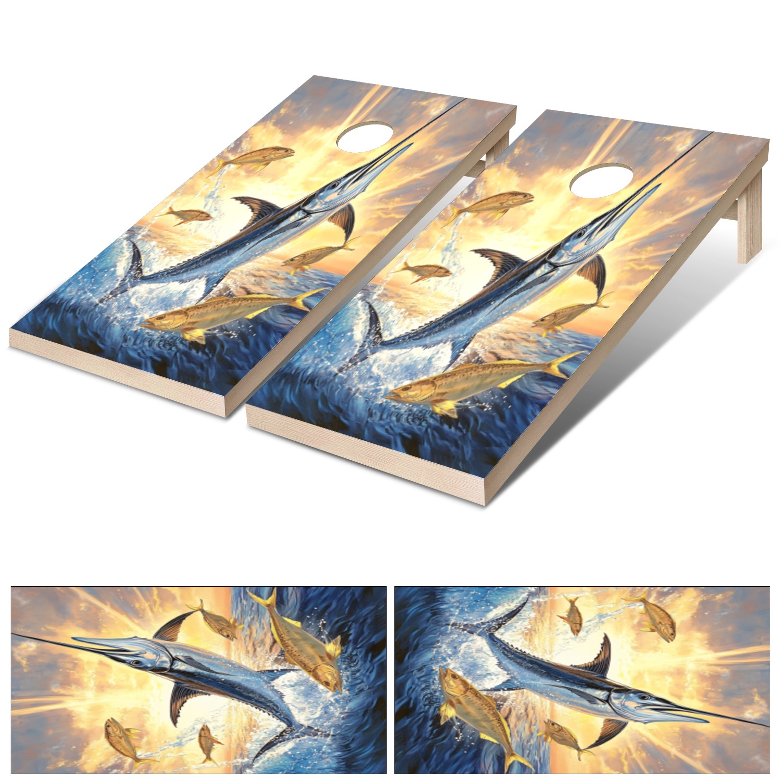 Portable 4x2 Ft Cornhole Boards Set with Two-piece Game Sticker(Decals ONLY), Easy to Apply - Corn Hole Games for Adults Outdoor Bean Bag Toss Game Blue Marlin