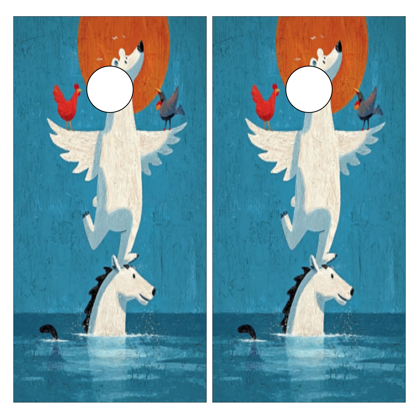 Portable 4x2 Ft Cornhole Boards Set with Two-piece Game Sticker(Decals ONLY), Easy to Apply - Corn Hole Games for Adults Outdoor Bean Bag Toss Game Anthropomorphic Polar