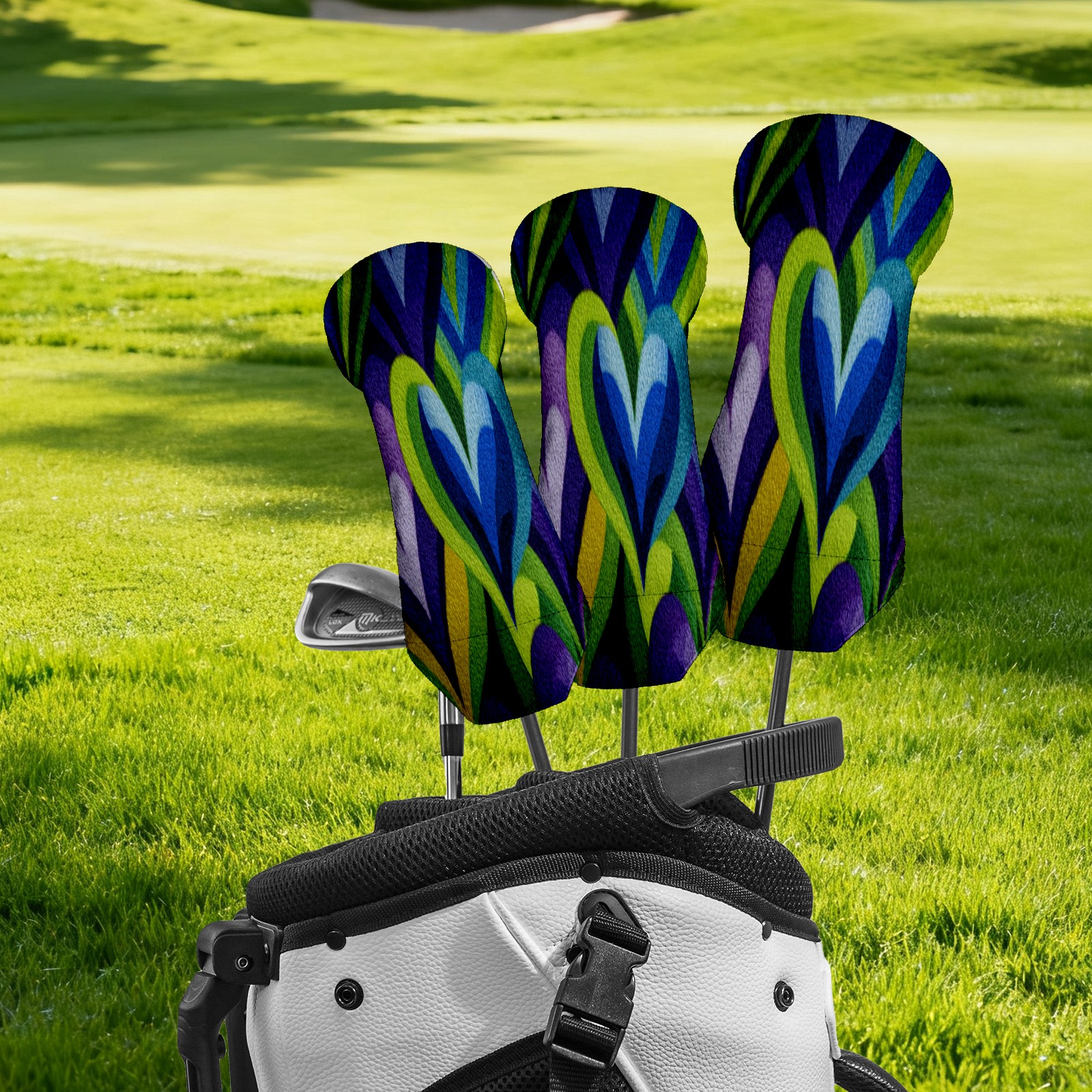 Golf Club Head Cover Waterproof Leather for Driver & Fairway Wood, Driver Headcovers, Golf Accessories for Men Women, Anti-Scratch, Golf Gift for Golfers, 1/3/5 Wood Cover Colorful Layered Fabric Heart