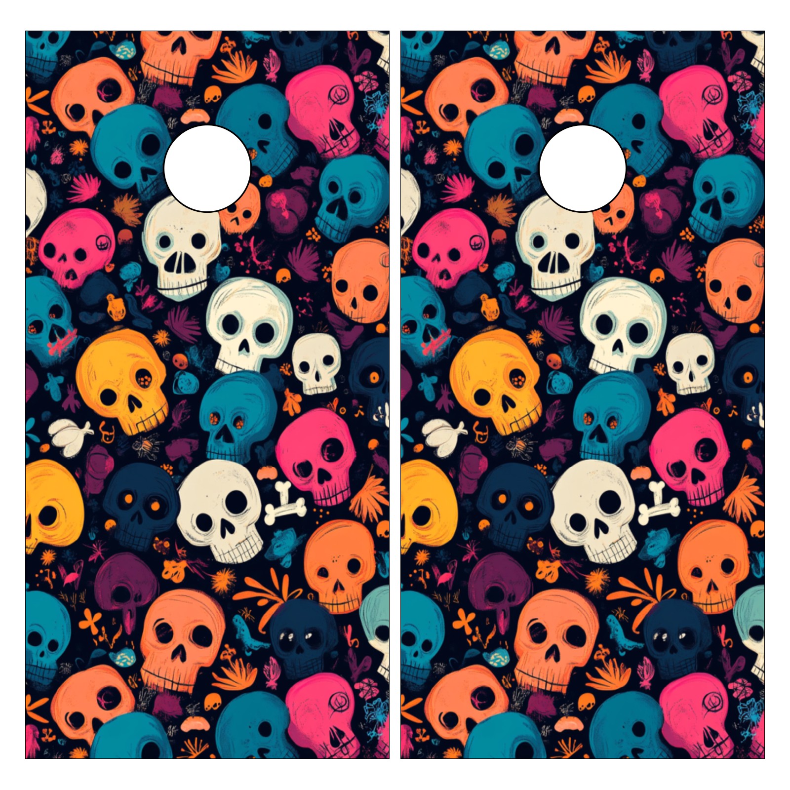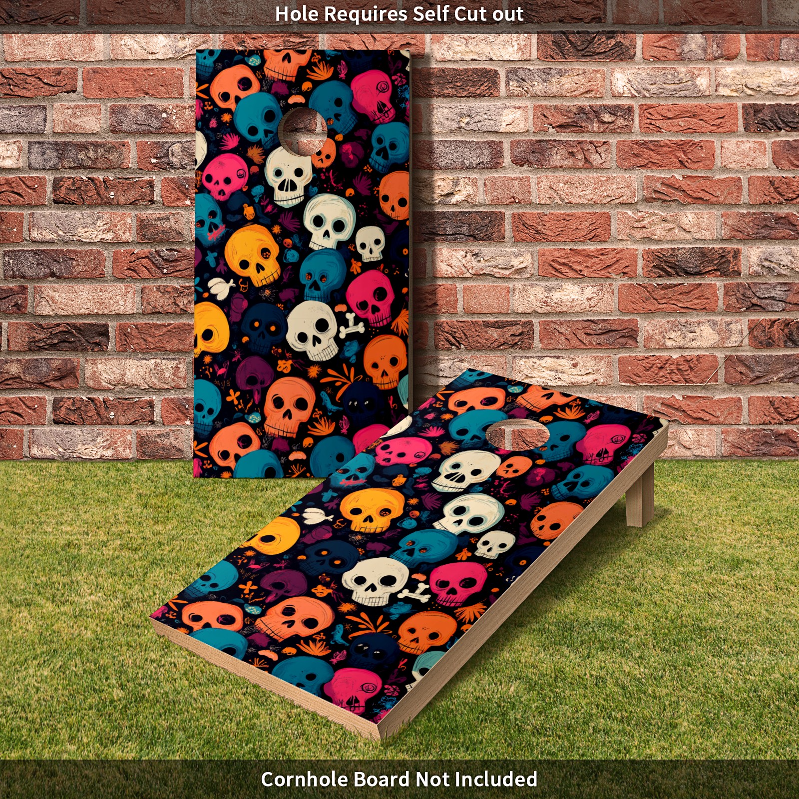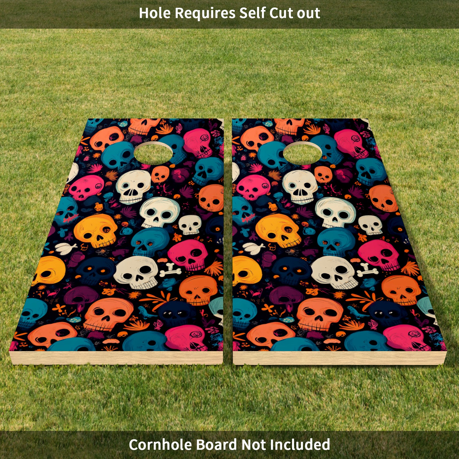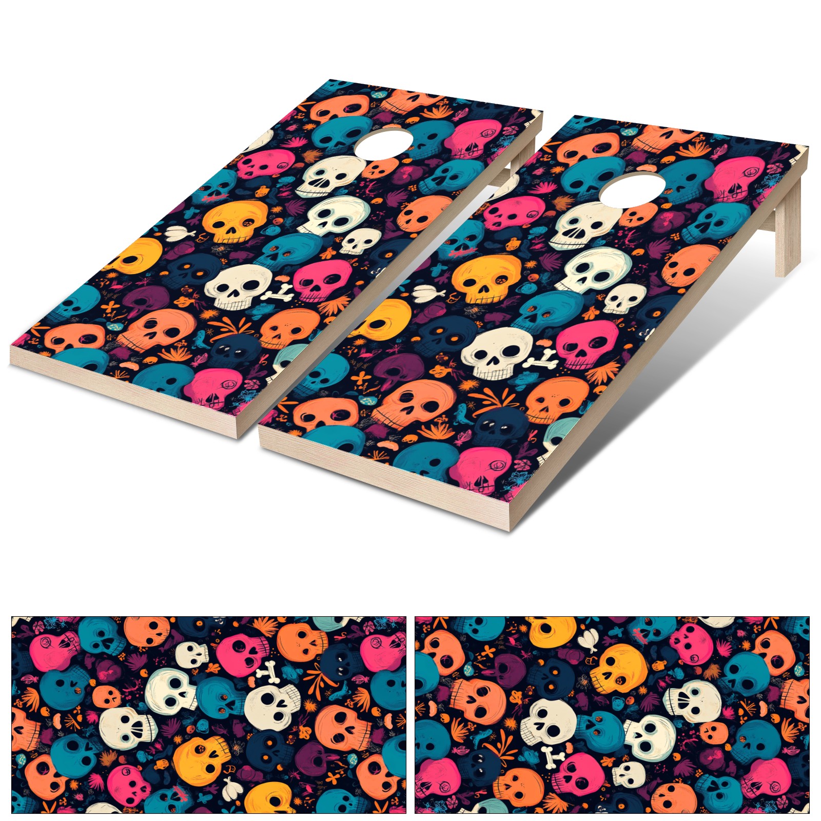 Portable 4x2 Ft Cornhole Boards Set with Two-piece Game Sticker(Decals ONLY), Easy to Apply - Corn Hole Games for Adults Outdoor Bean Bag Toss Game Skull Pattern