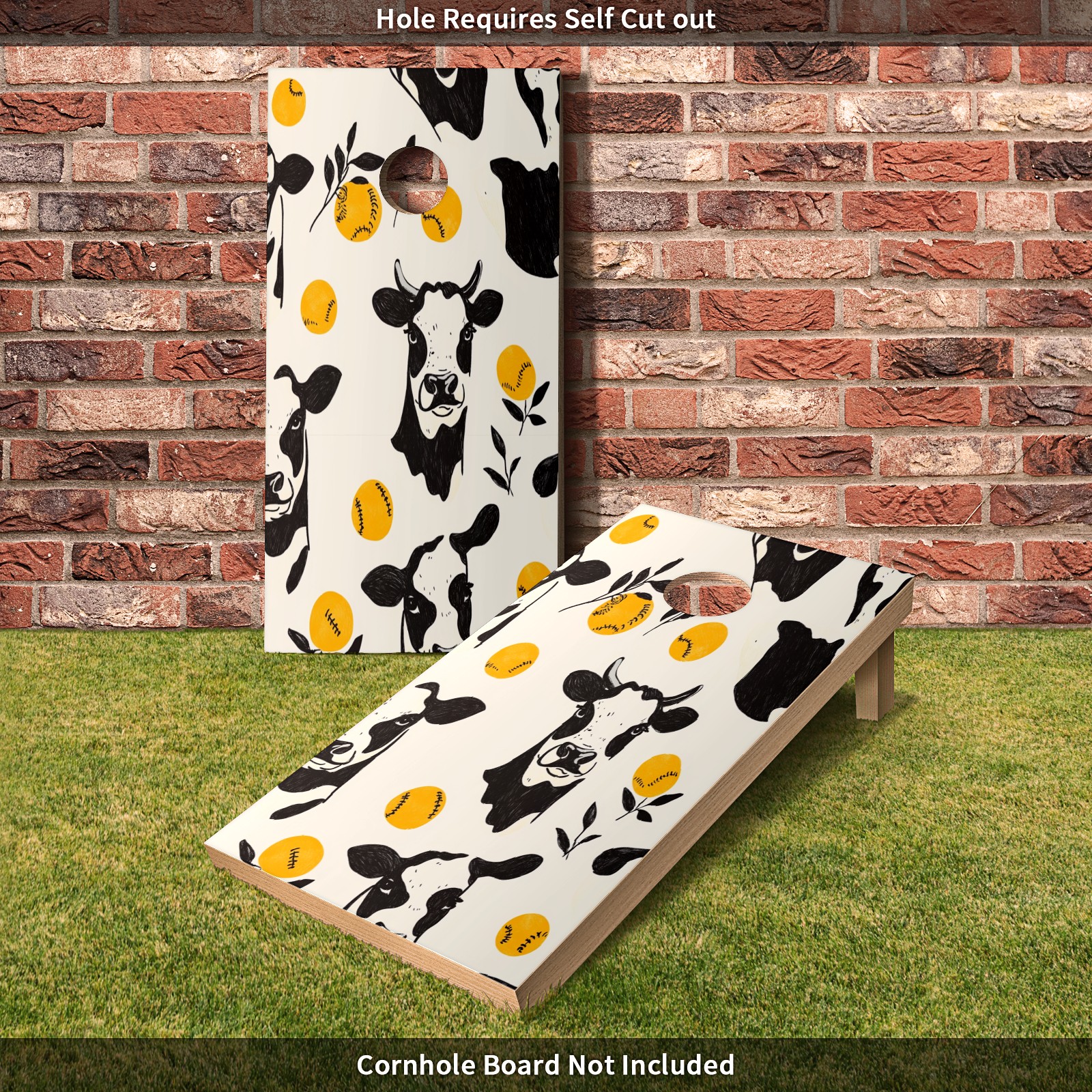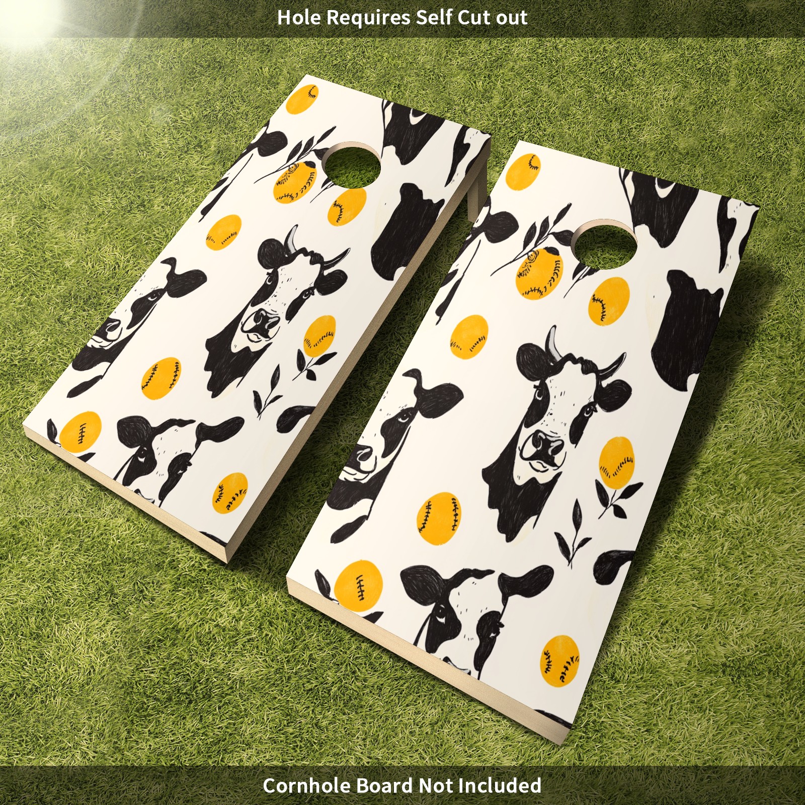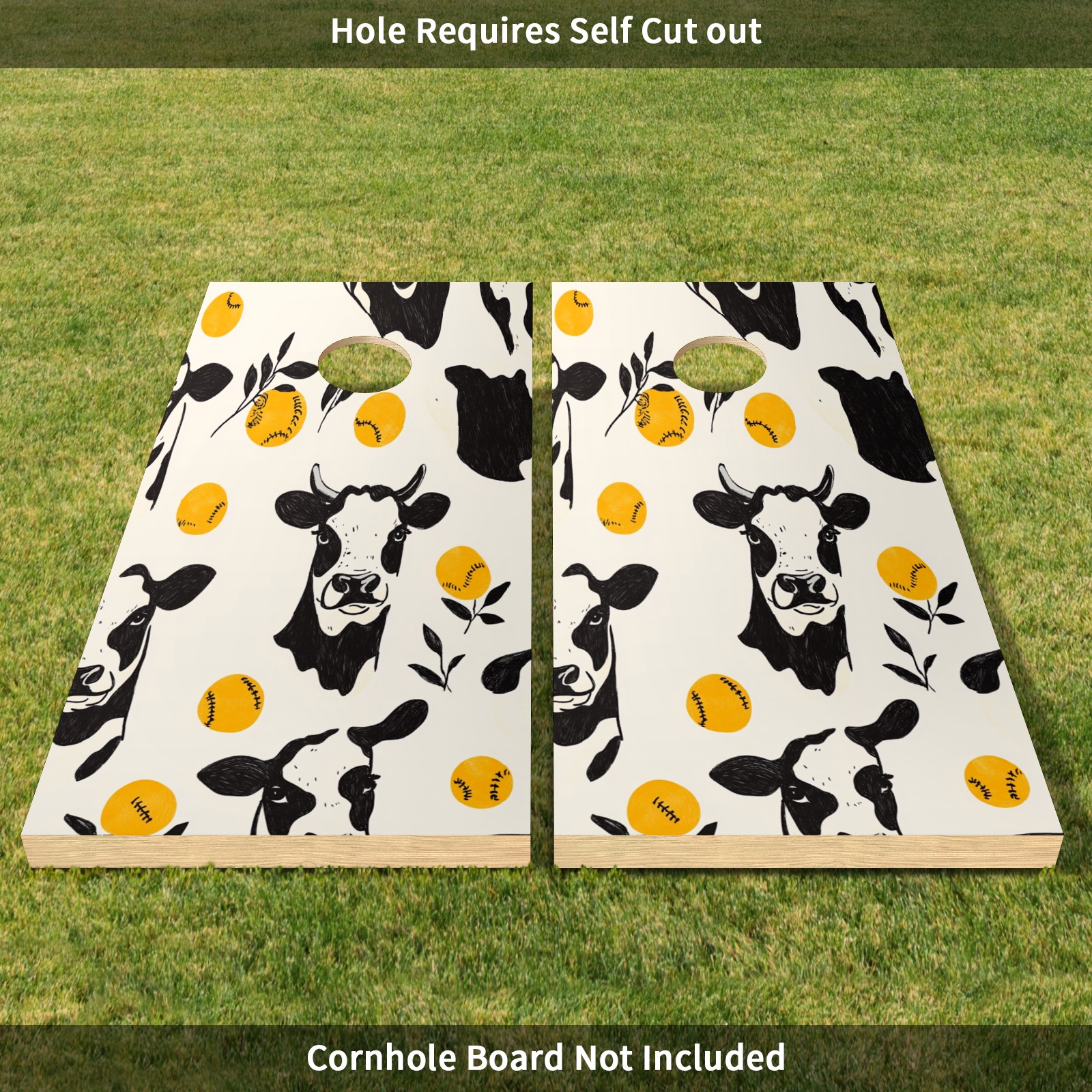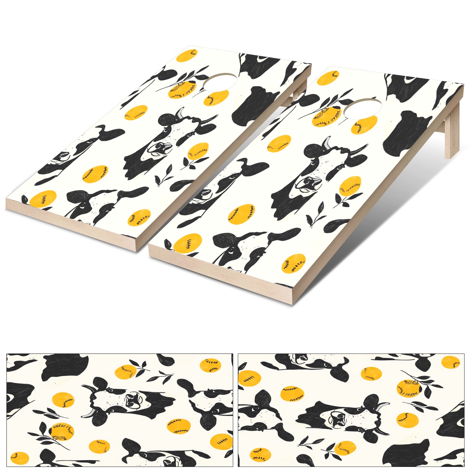 Portable 4x2 Ft Cornhole Boards Set with Two-piece Game Sticker(Decals ONLY), Easy to Apply - Corn Hole Games for Adults Outdoor Bean Bag Toss Game Cow Pattern