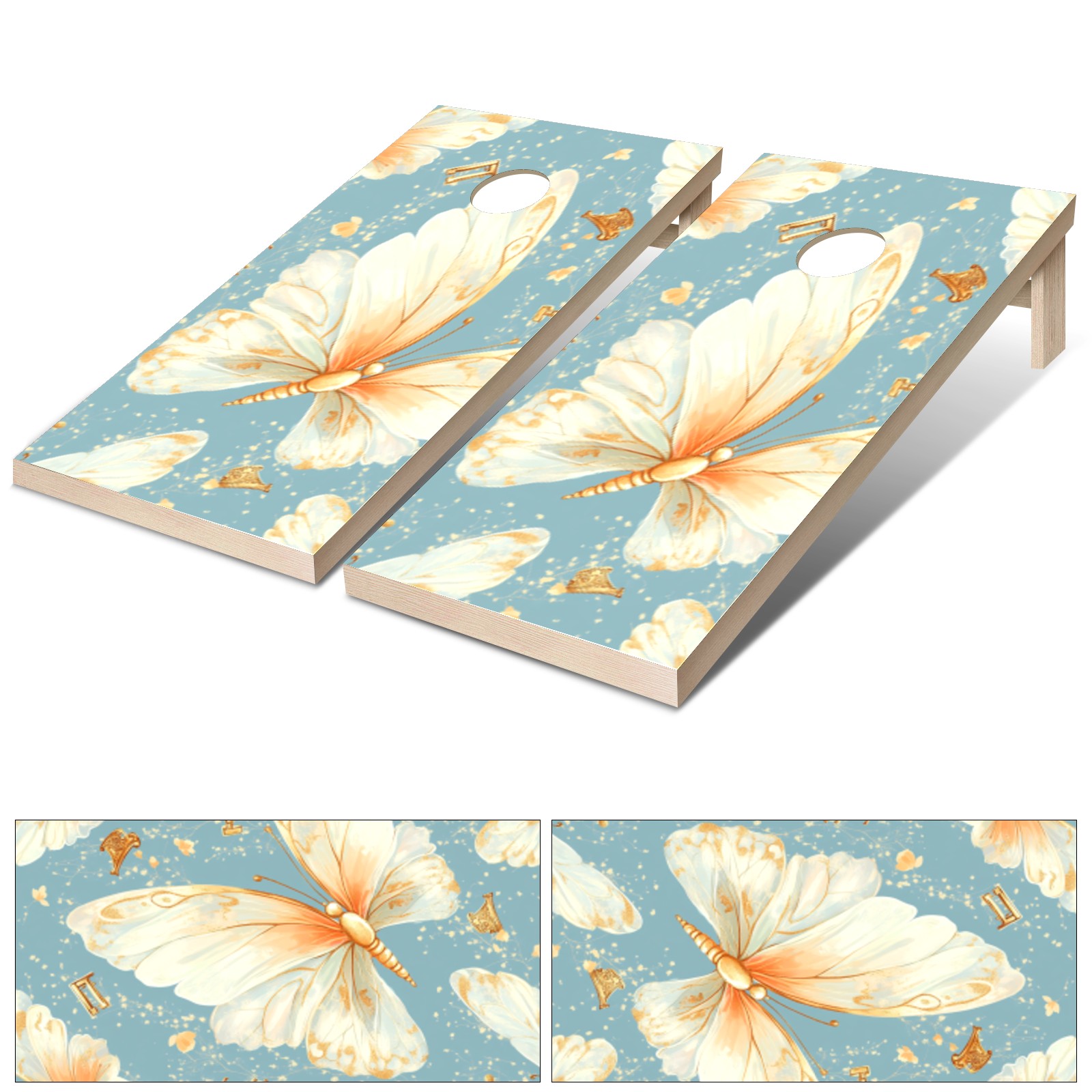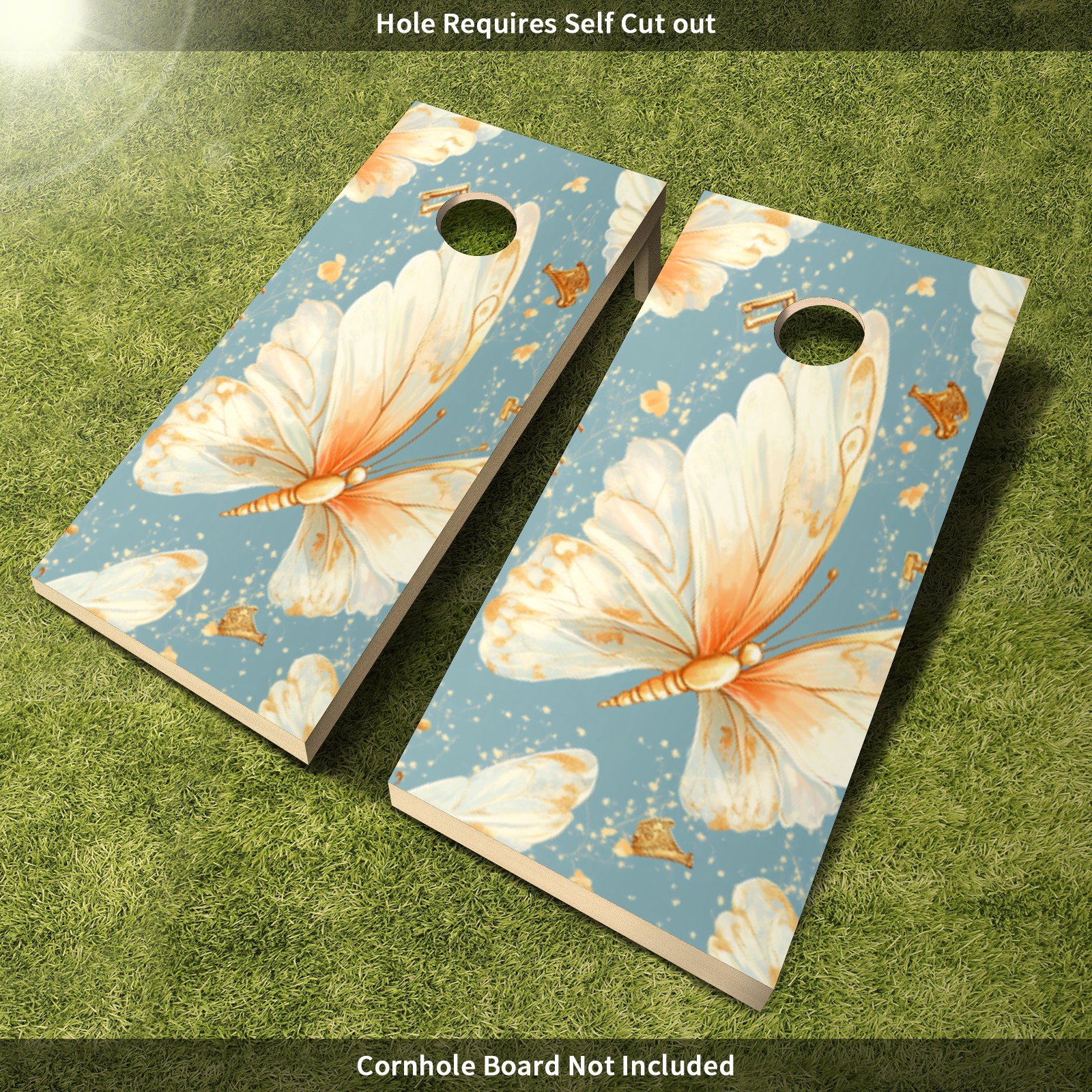 Portable 4x2 Ft Cornhole Boards Set with Two-piece Game Sticker(Decals ONLY), Easy to Apply - Corn Hole Games for Adults Outdoor Bean Bag Toss Game White Flying Bird Pattern