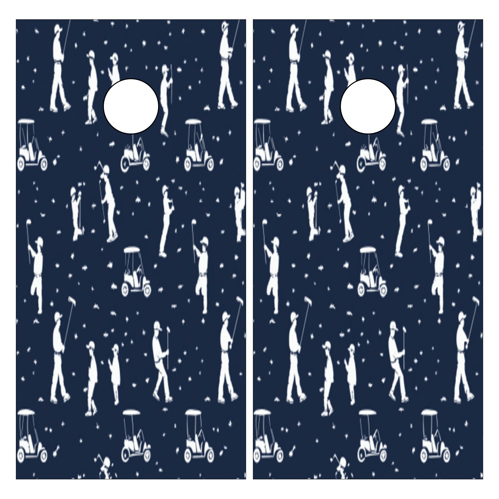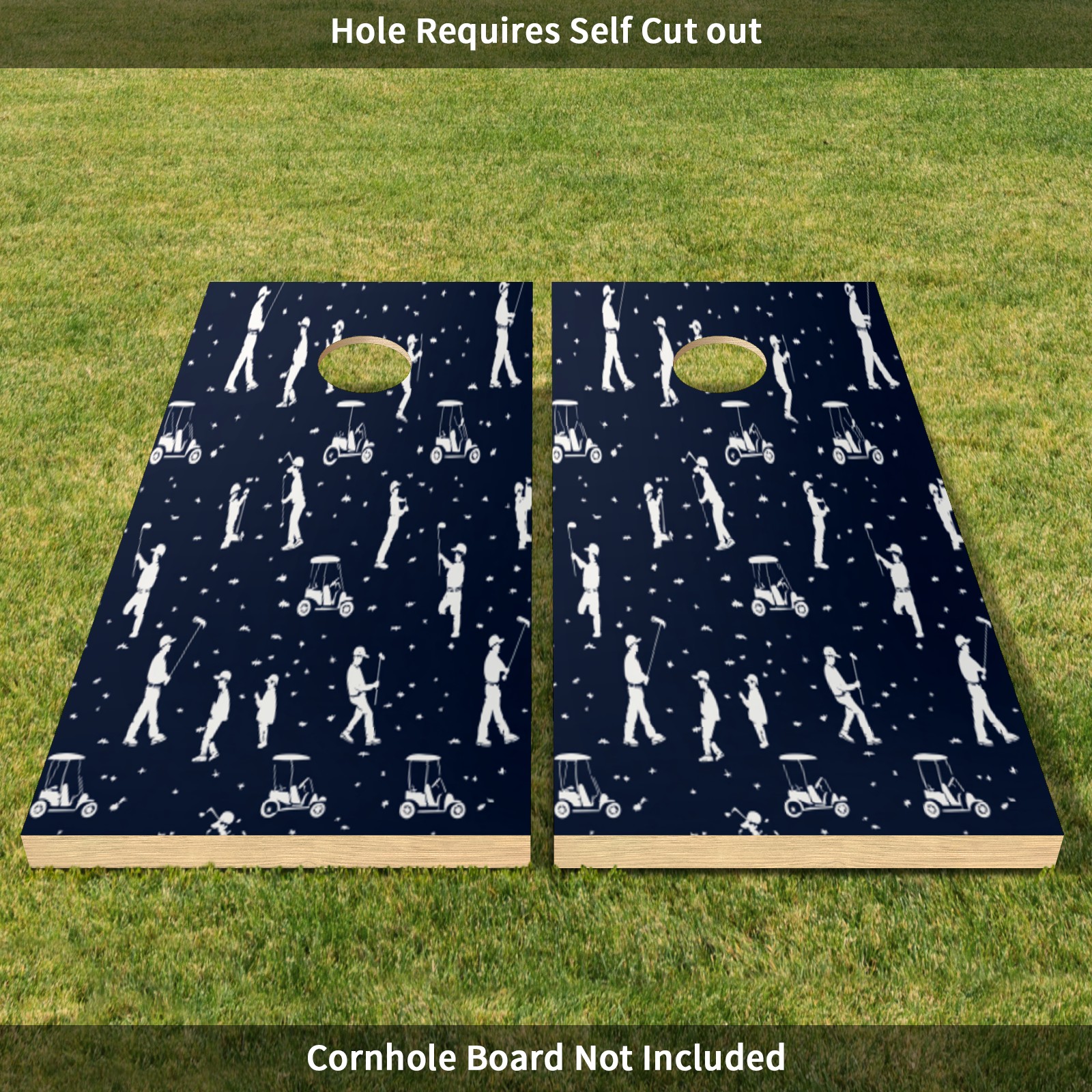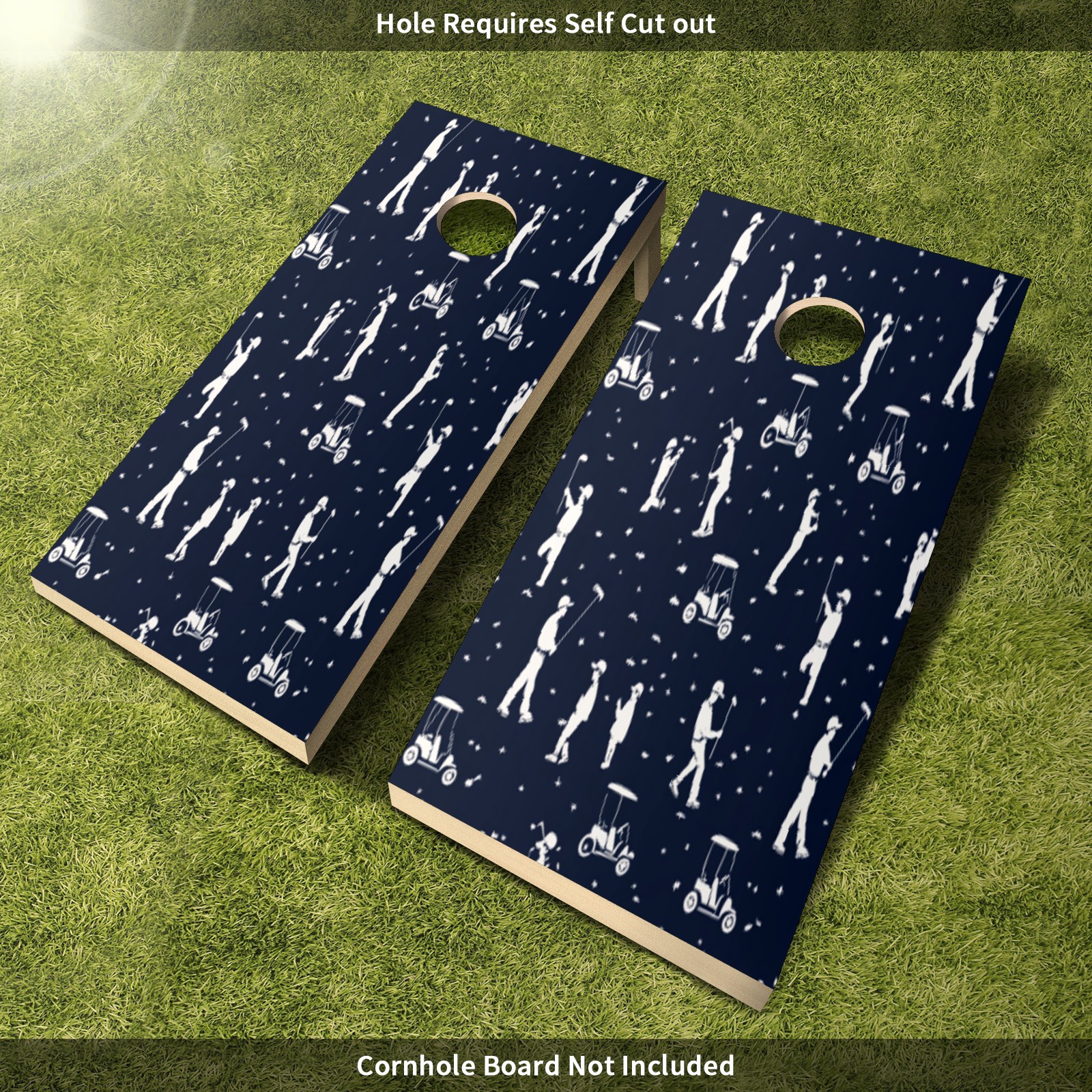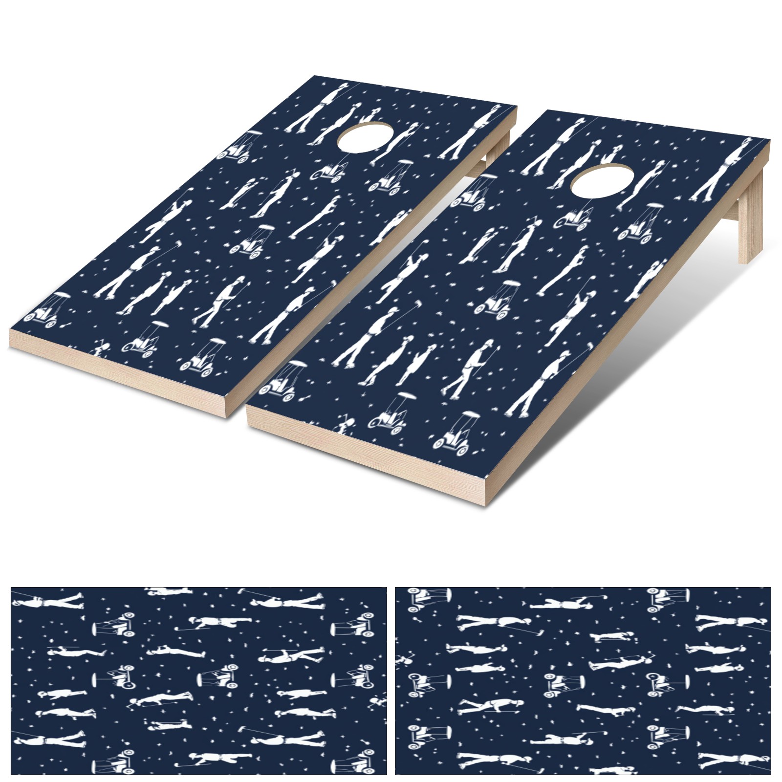 Portable 4x2 Ft Cornhole Boards Set with Two-piece Game Sticker(Decals ONLY), Easy to Apply - Corn Hole Games for Adults Outdoor Bean Bag Toss Game Blue Golfers Poses Pattern