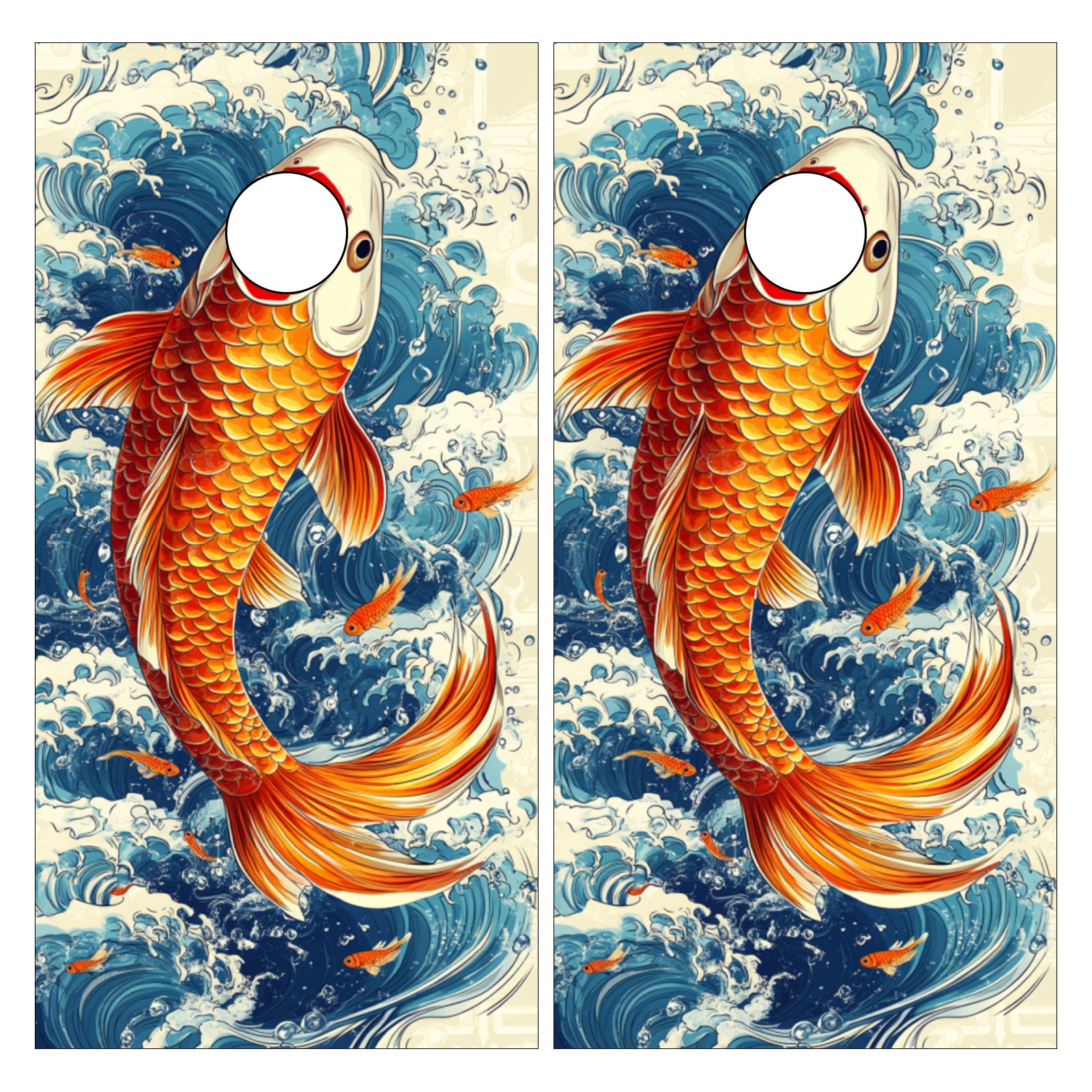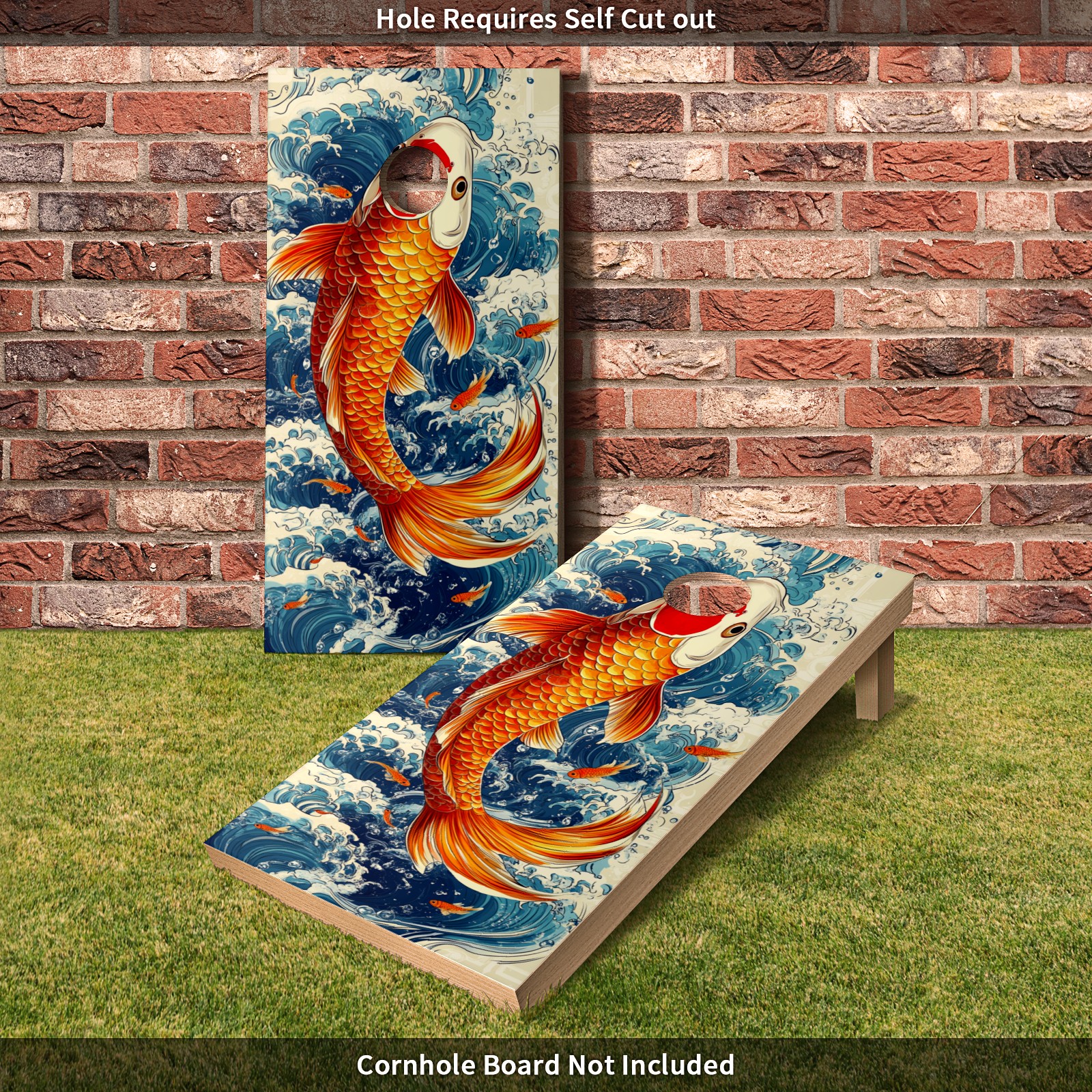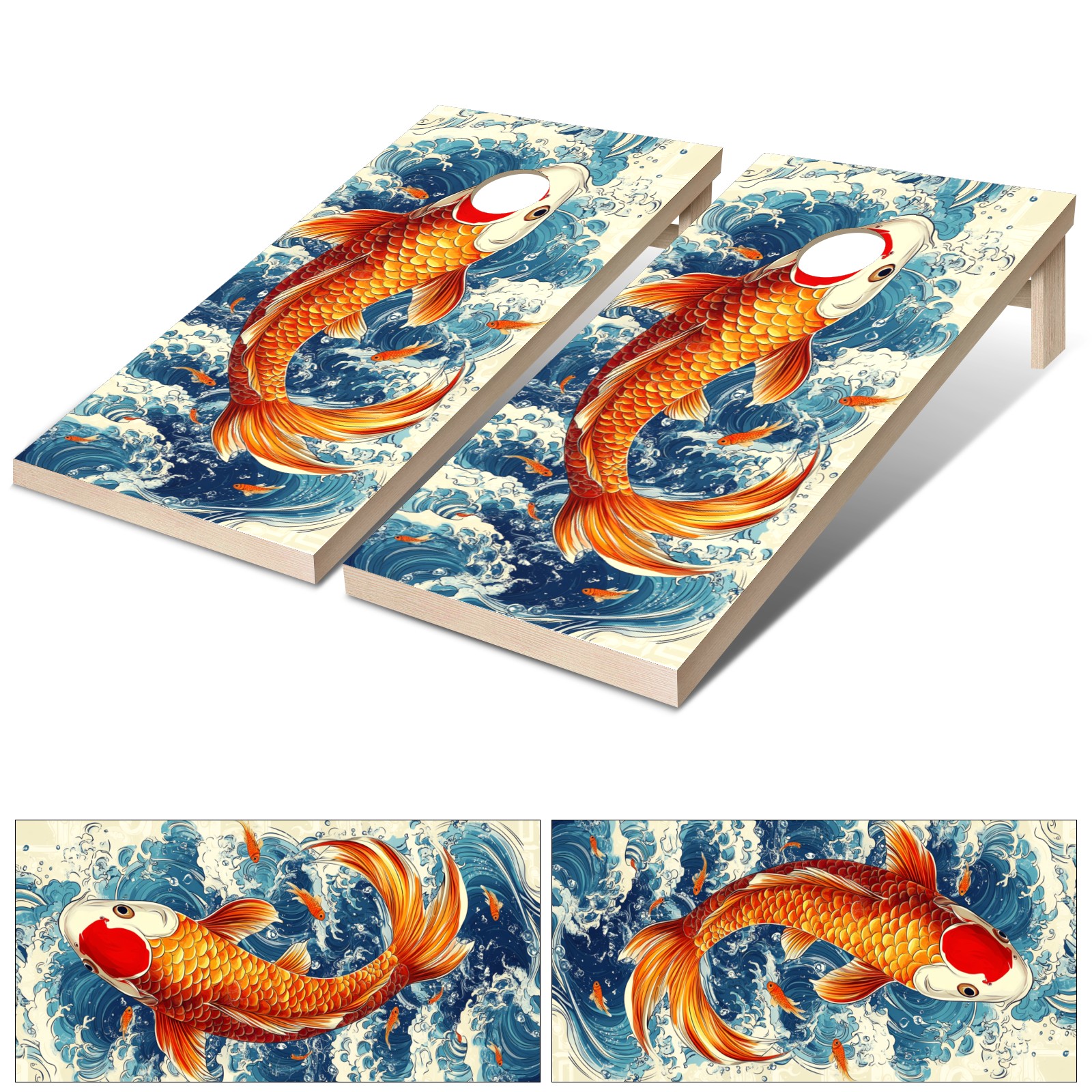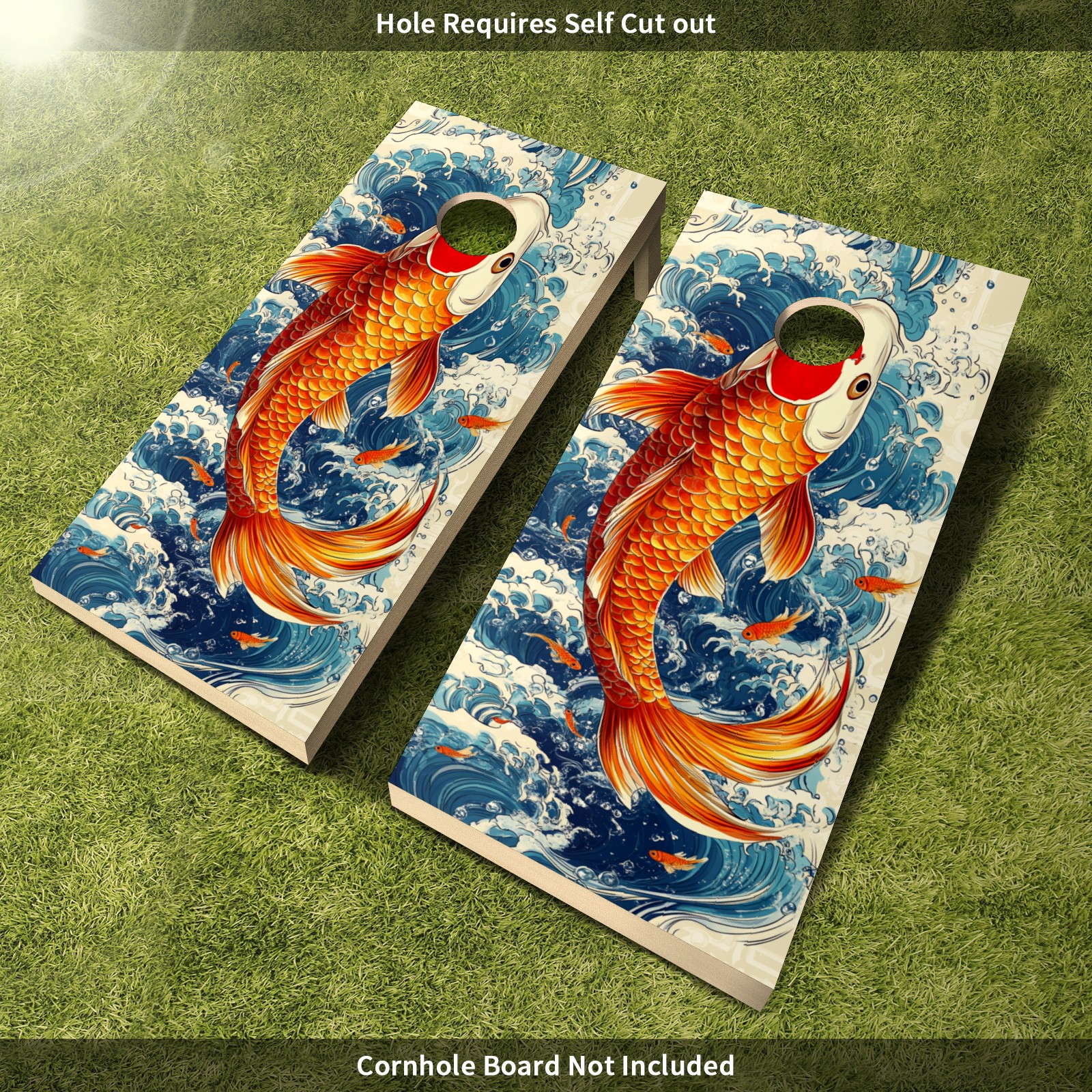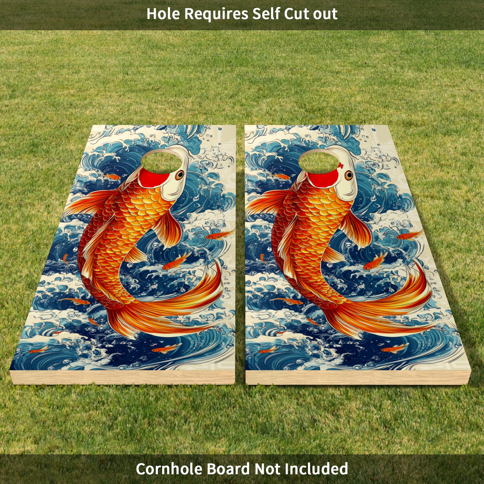 Portable 4x2 Ft Cornhole Boards Set with Two-piece Game Sticker(Decals ONLY), Easy to Apply - Corn Hole Games for Adults Outdoor Bean Bag Toss Game Goldfish Pattern