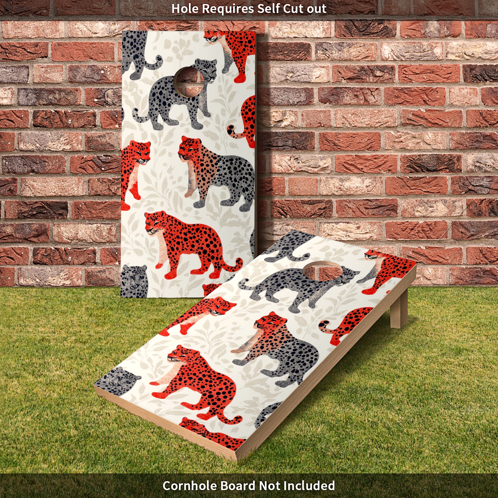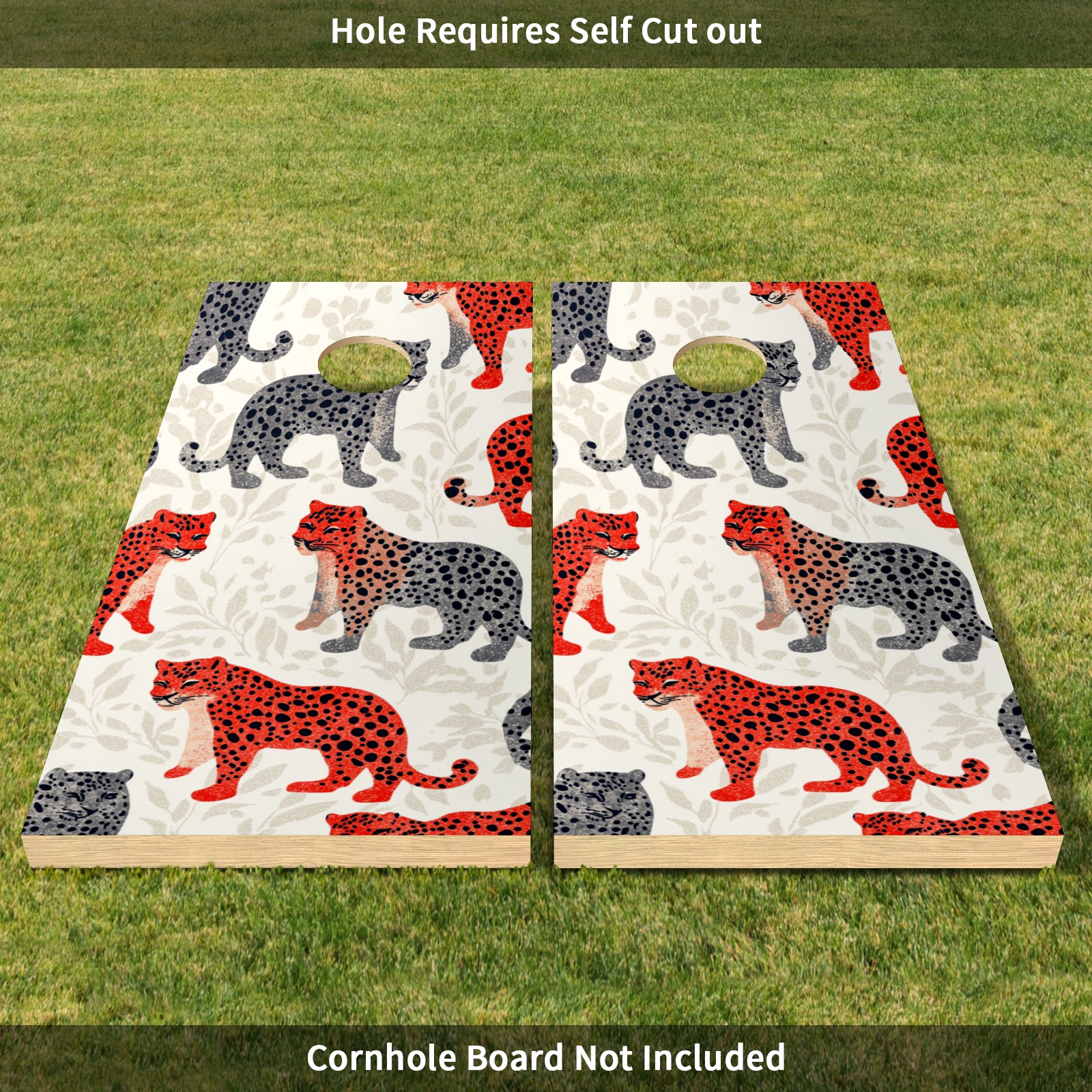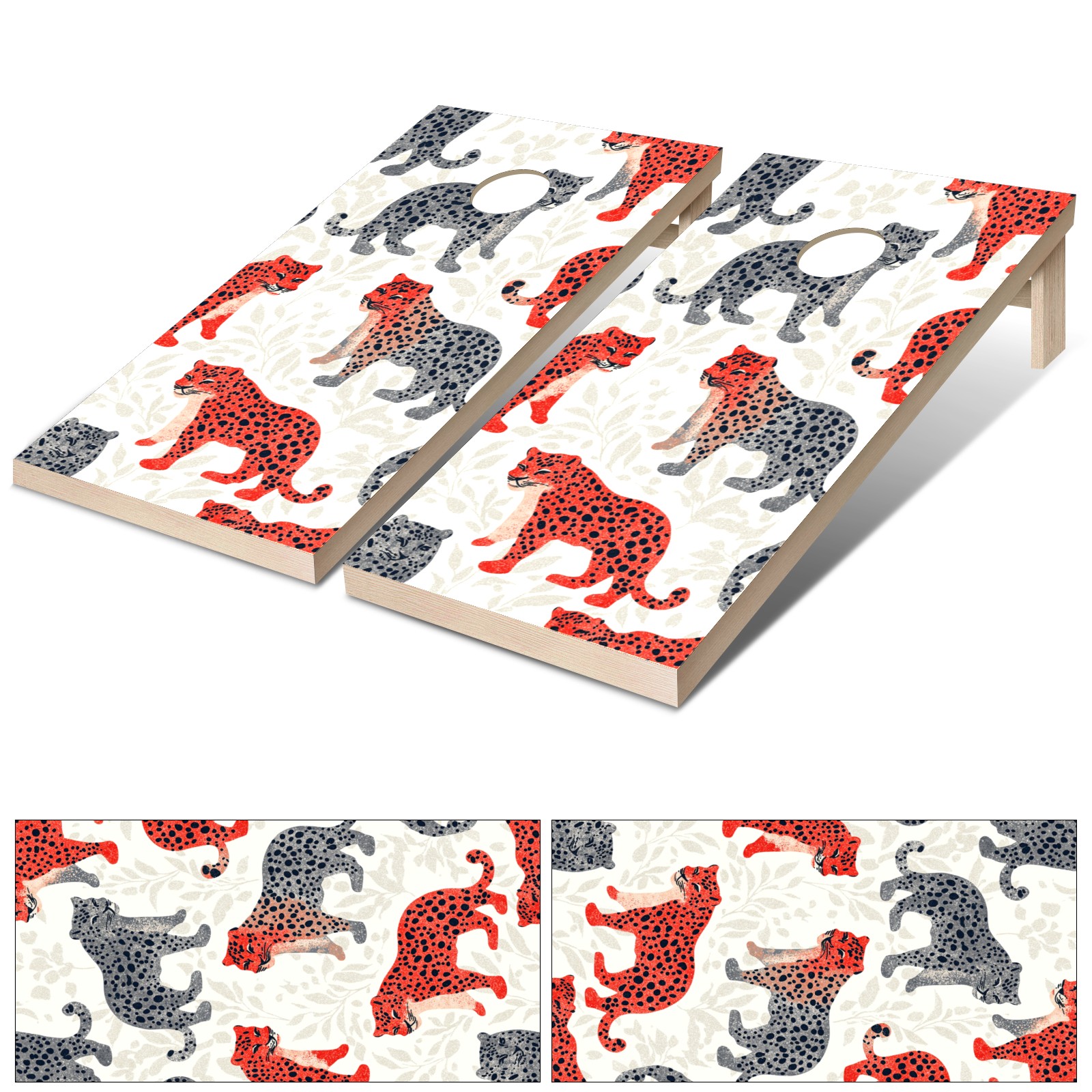 Portable 4x2 Ft Cornhole Boards Set with Two-piece Game Sticker(Decals ONLY), Easy to Apply - Corn Hole Games for Adults Outdoor Bean Bag Toss Game Spotted Tiger Pattern