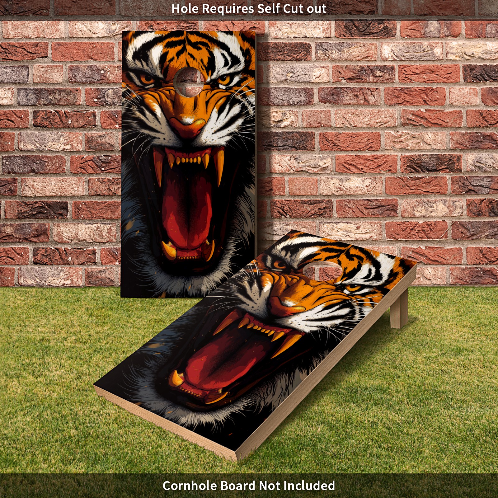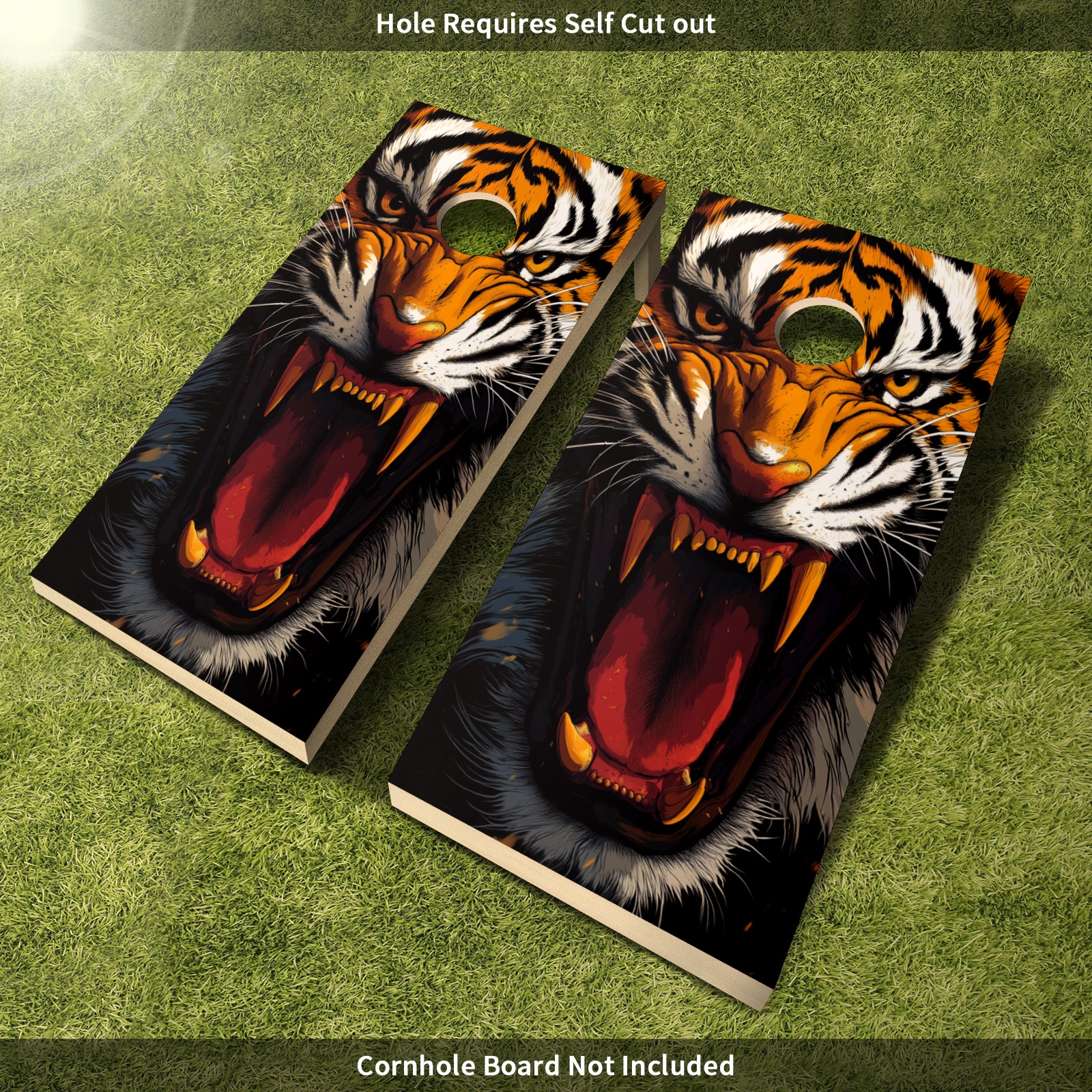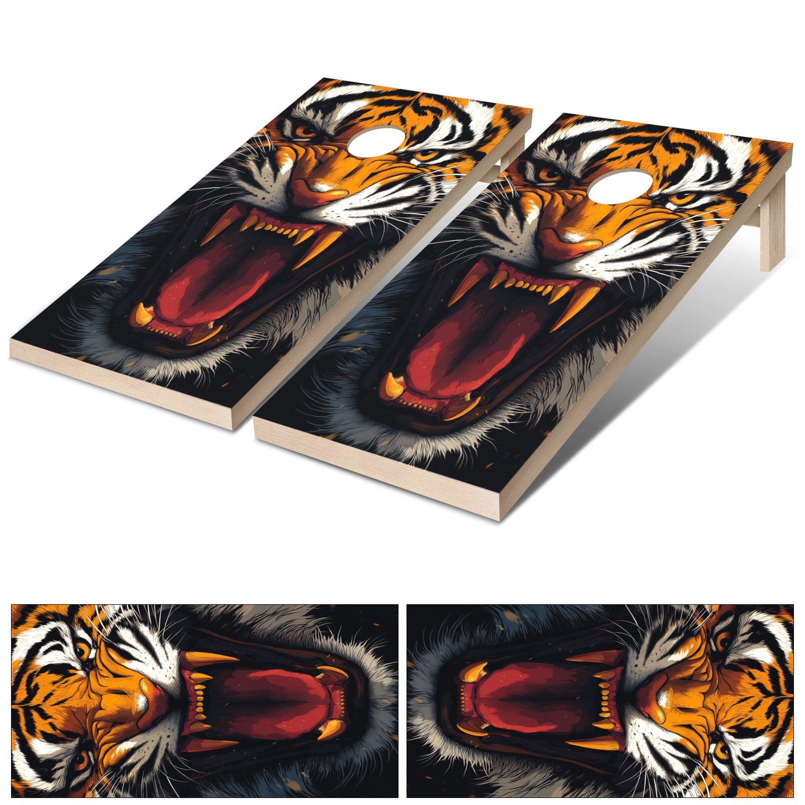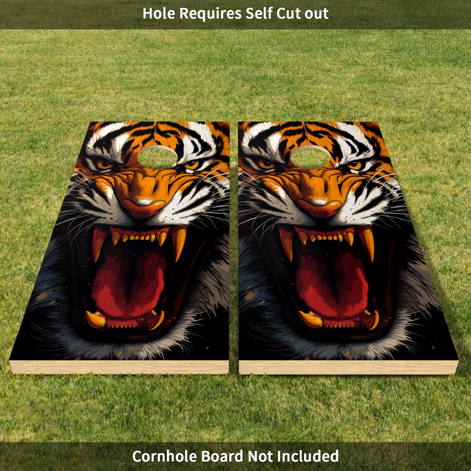 Portable 4x2 Ft Cornhole Boards Set with Two-piece Game Sticker(Decals ONLY), Easy to Apply - Corn Hole Games for Adults Outdoor Bean Bag Toss Game Tiger Pattern