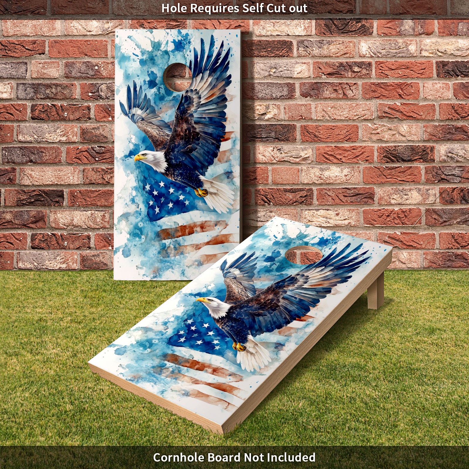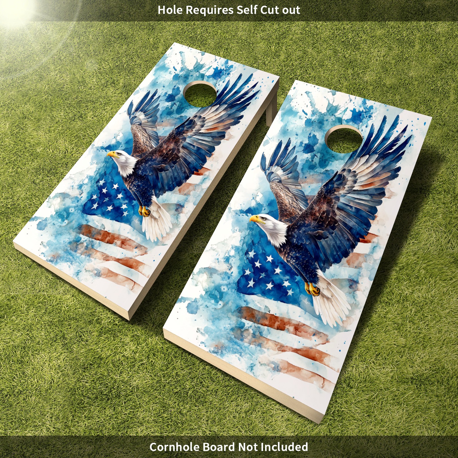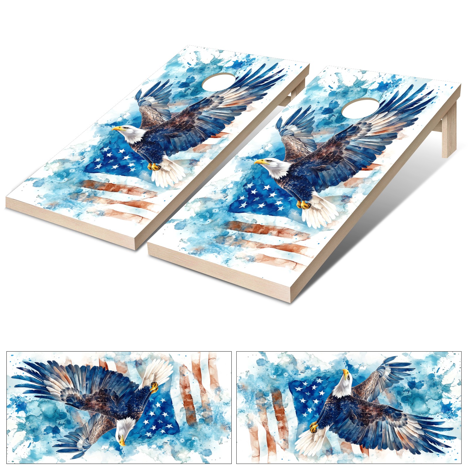 Portable 4x2 Ft Cornhole Boards Set with Two-piece Game Sticker(Decals ONLY), Easy to Apply - Corn Hole Games for Adults Outdoor Bean Bag Toss Game Blue Eagle Pattern