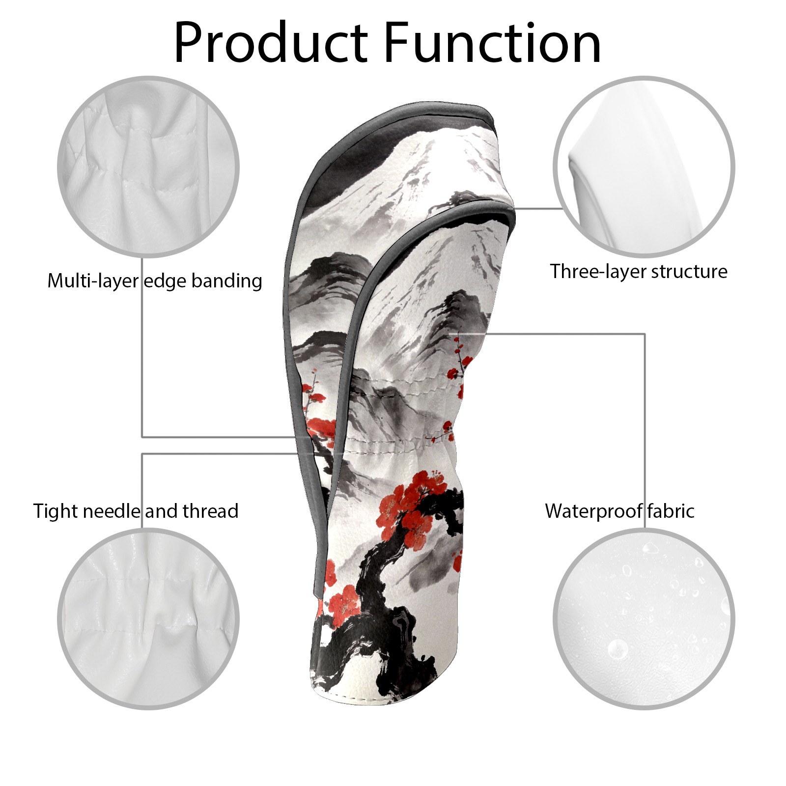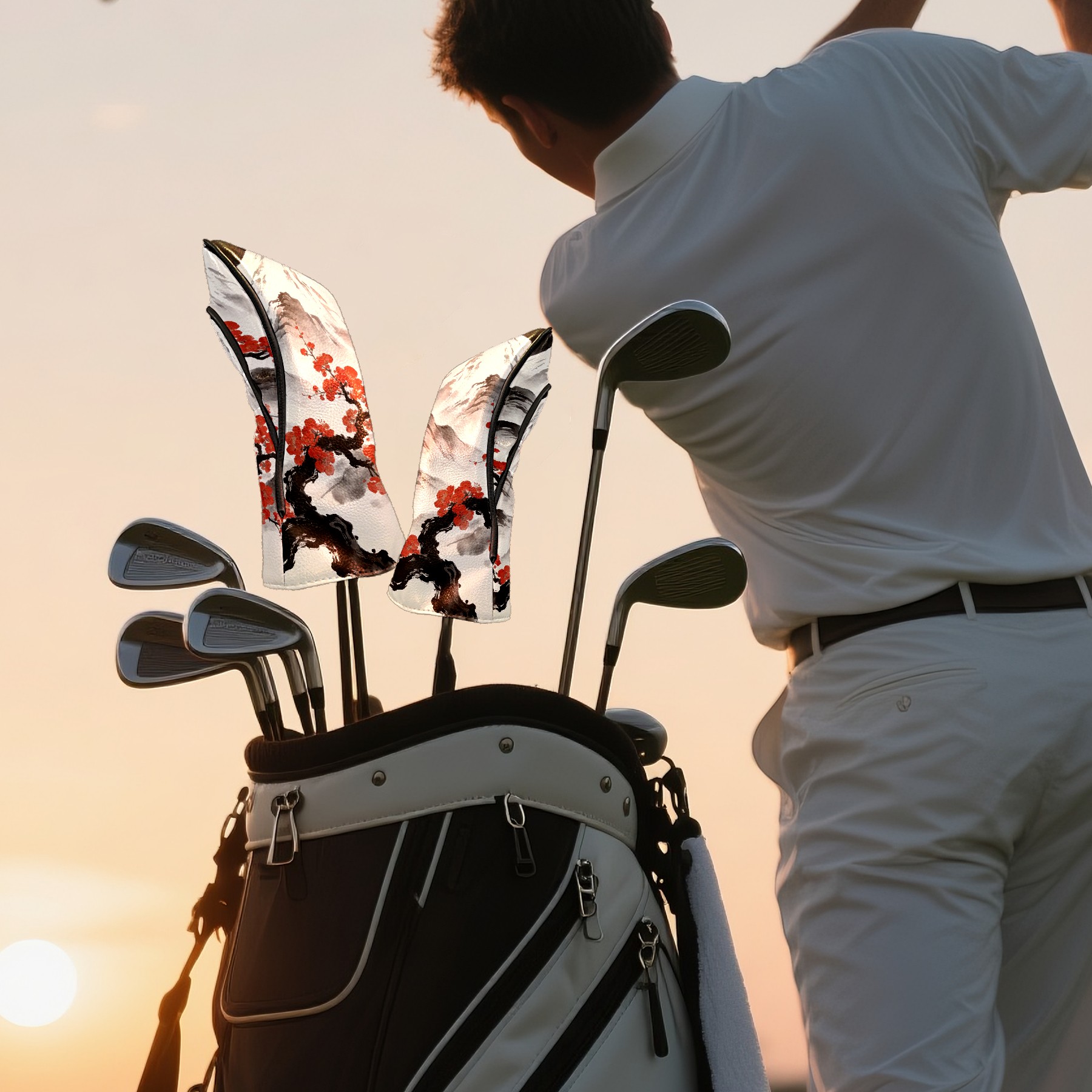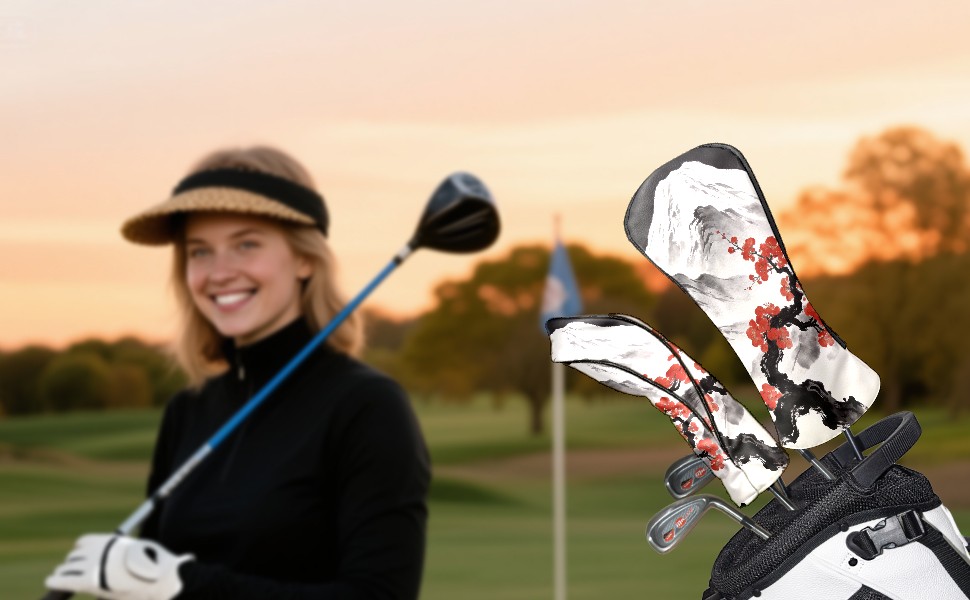 Golf Head Covers Leather Driver Head Cover, Premium Golf Club Covers with Anti-Scratch Lining for Women Men 1/3/5 Wood Cover for Golf Clubs (Mountain Flowers)