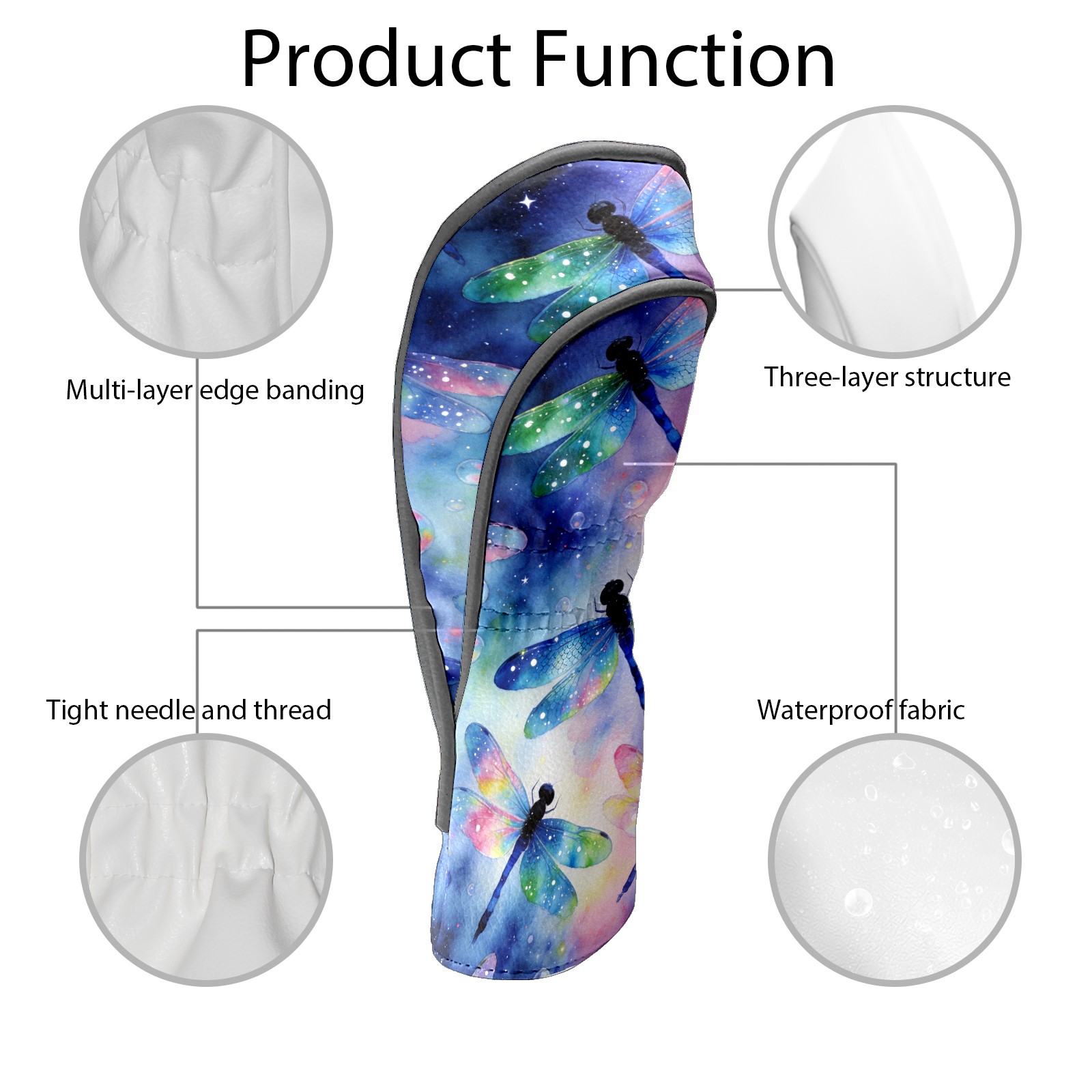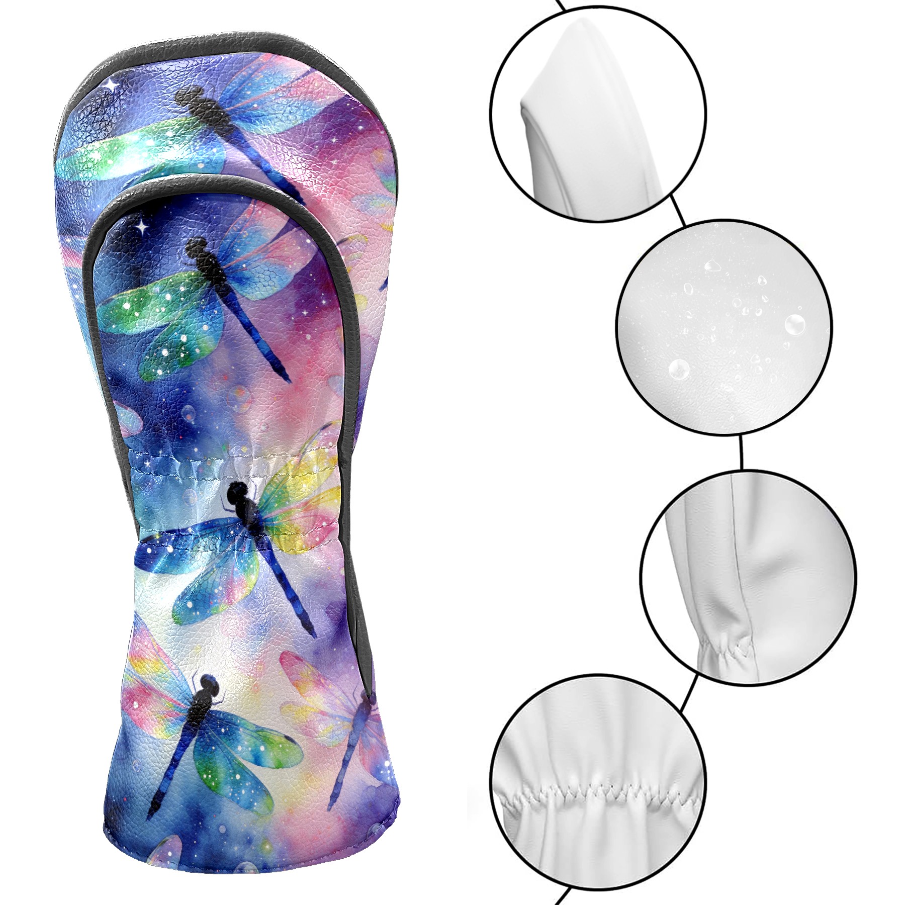 Golf Head Covers Leather Driver Head Cover, Premium Golf Club Covers with Anti-Scratch Lining for Women Men 1/3/5 Wood Cover for Golf Clubs (Dragonfly Theme)