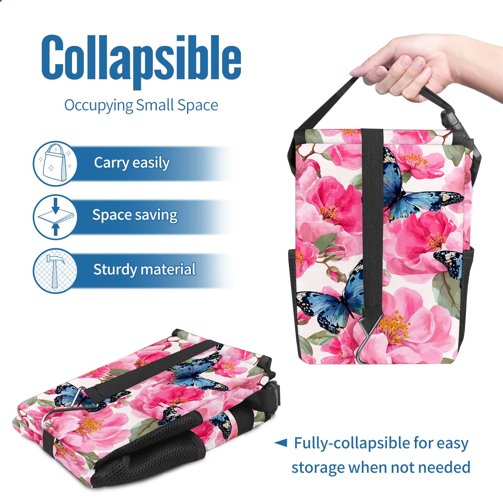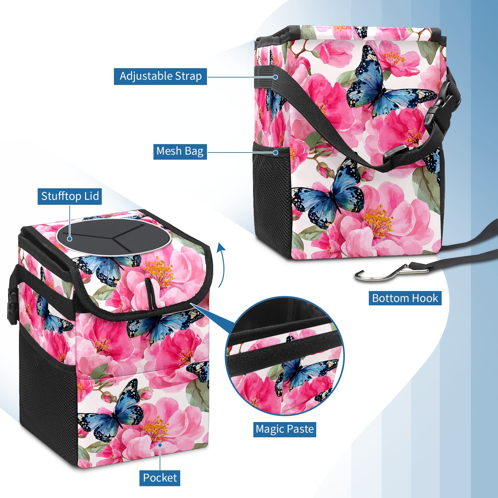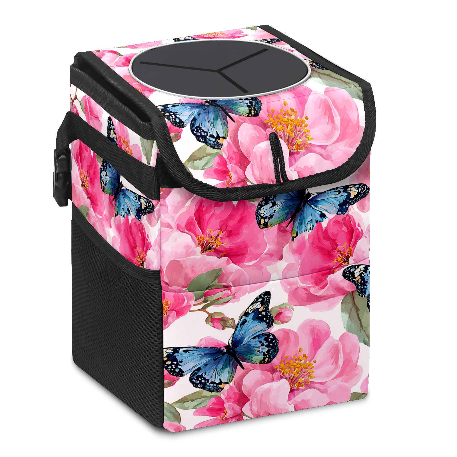 MSINMKOK Car Trash Bin with Lid Auto Garbage Bag Hanging for Back Seat - Leakproof Trash Can for Cars SUVs Trucks Vehicle Car Accessories (Pink Flowers Butterflies)
