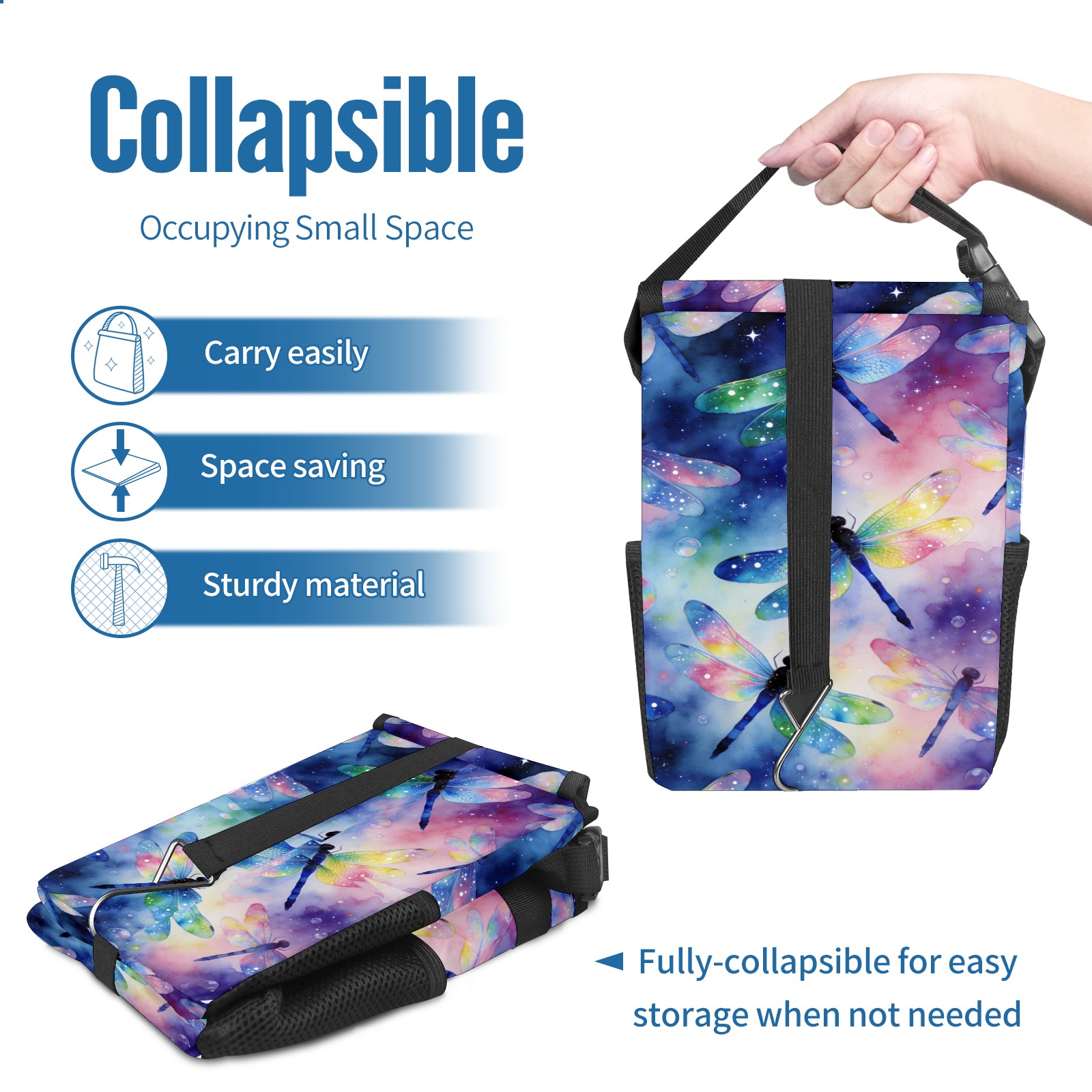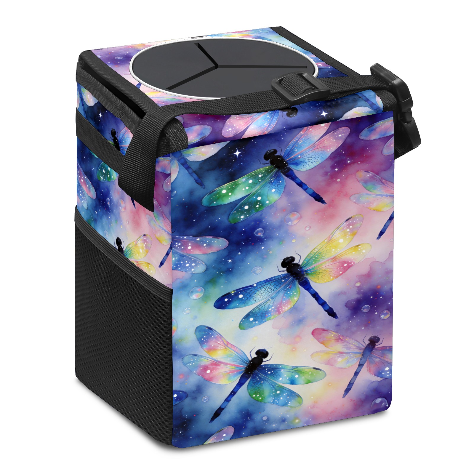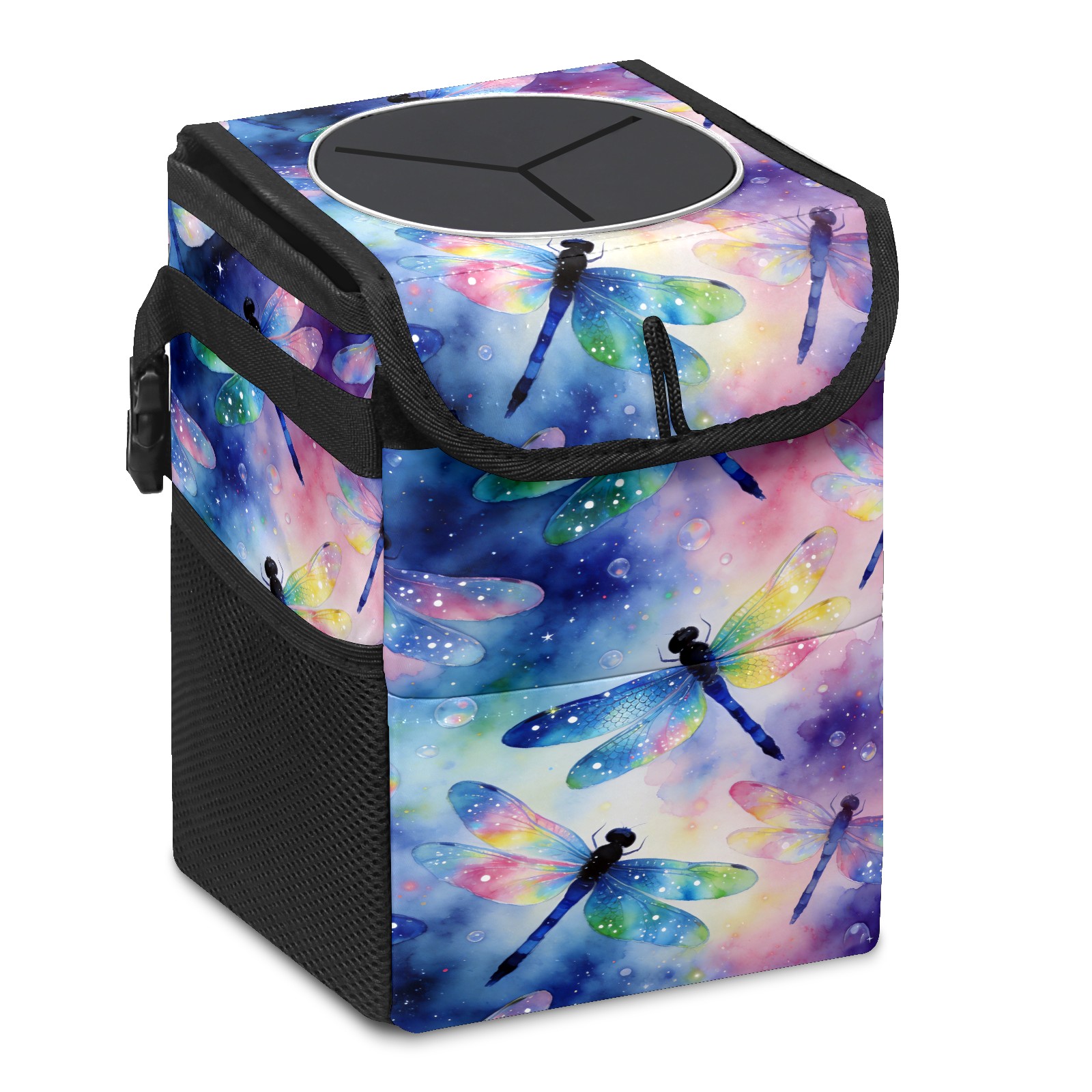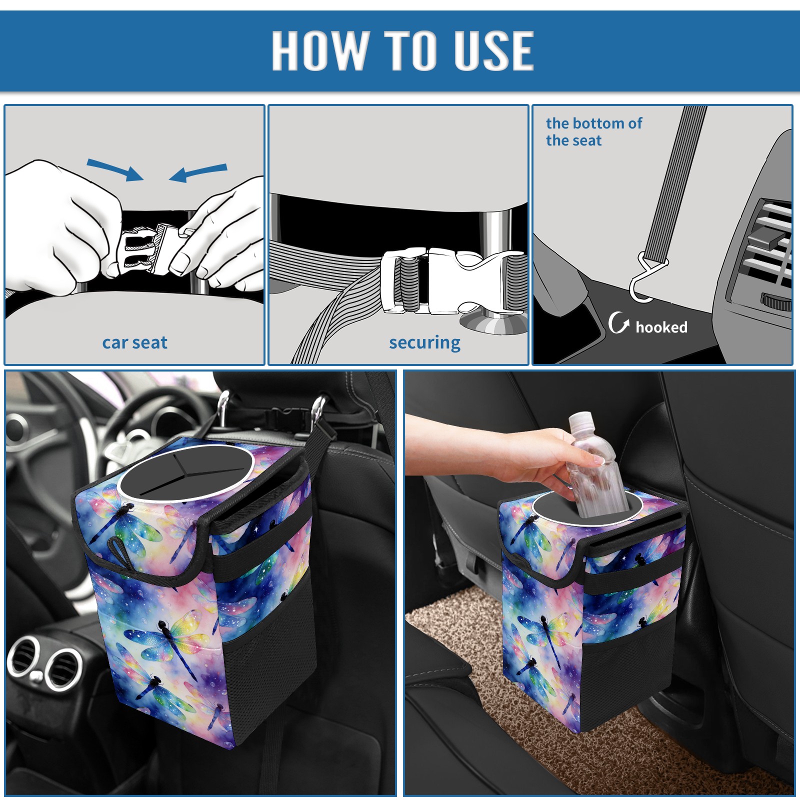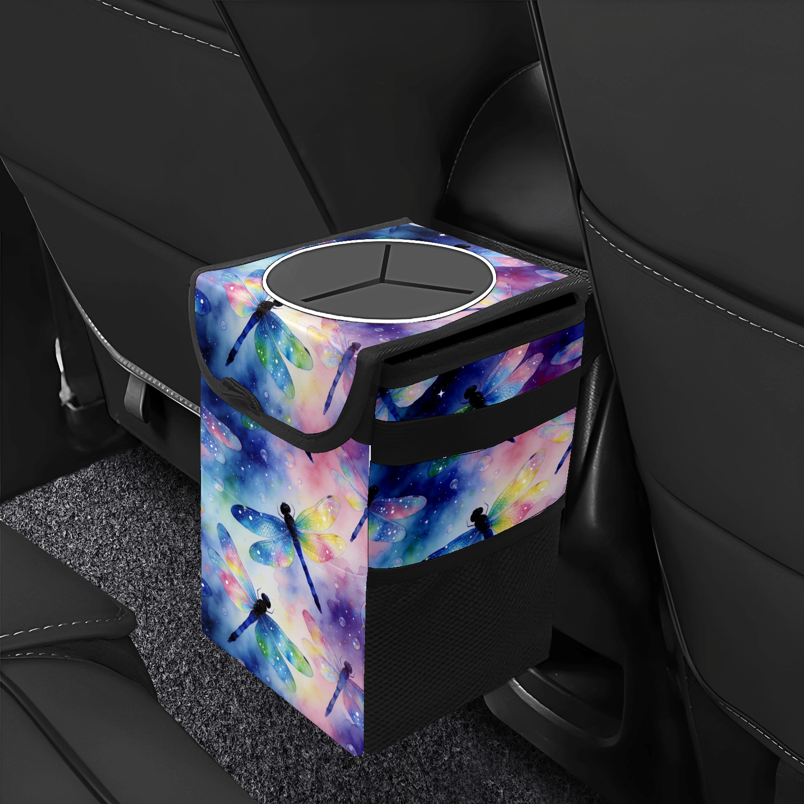 MSINMKOK Car Trash Bin with Lid Auto Garbage Bag Hanging for Back Seat - Leakproof Trash Can for Cars SUVs Trucks Vehicle Car Accessories (Dragonfly Theme)