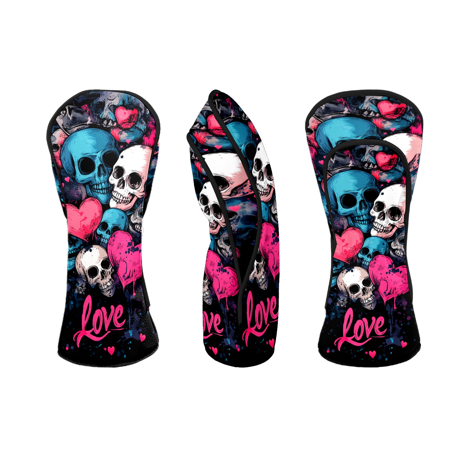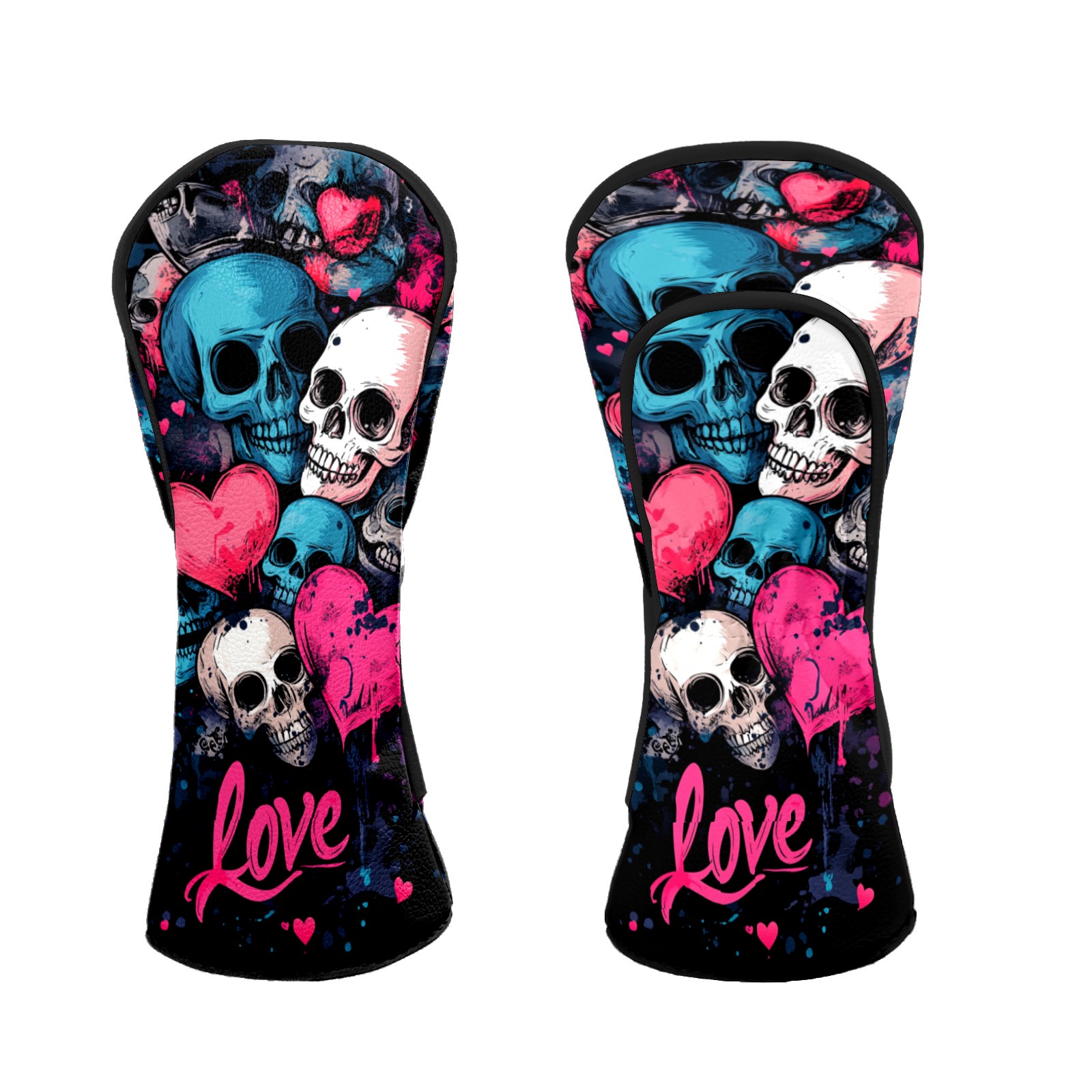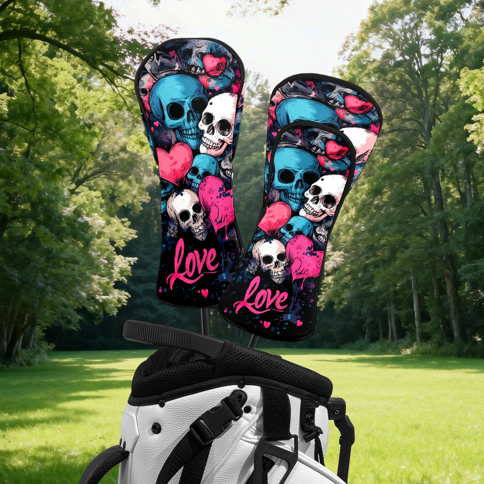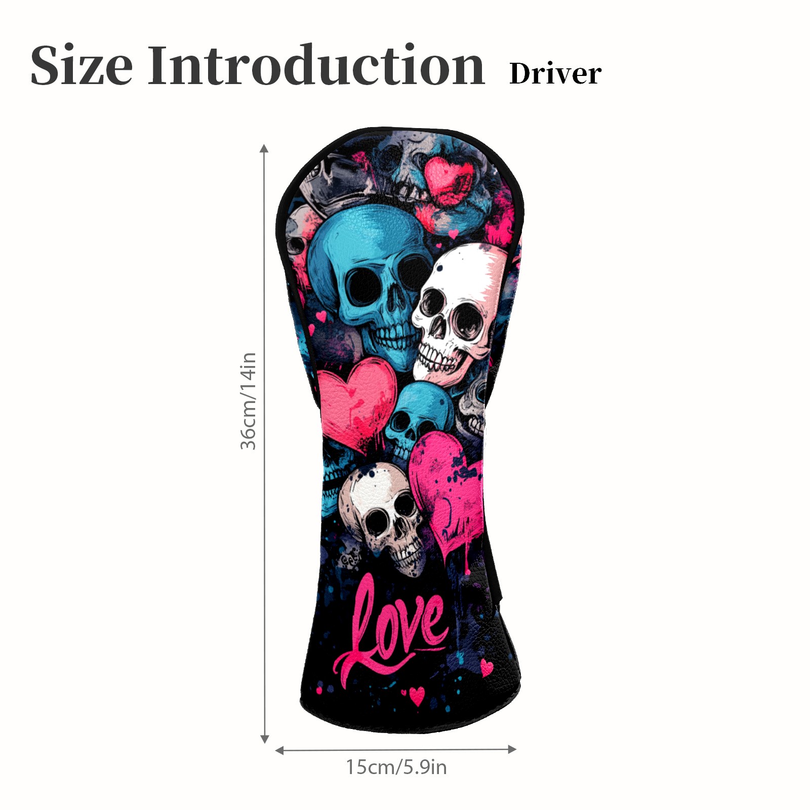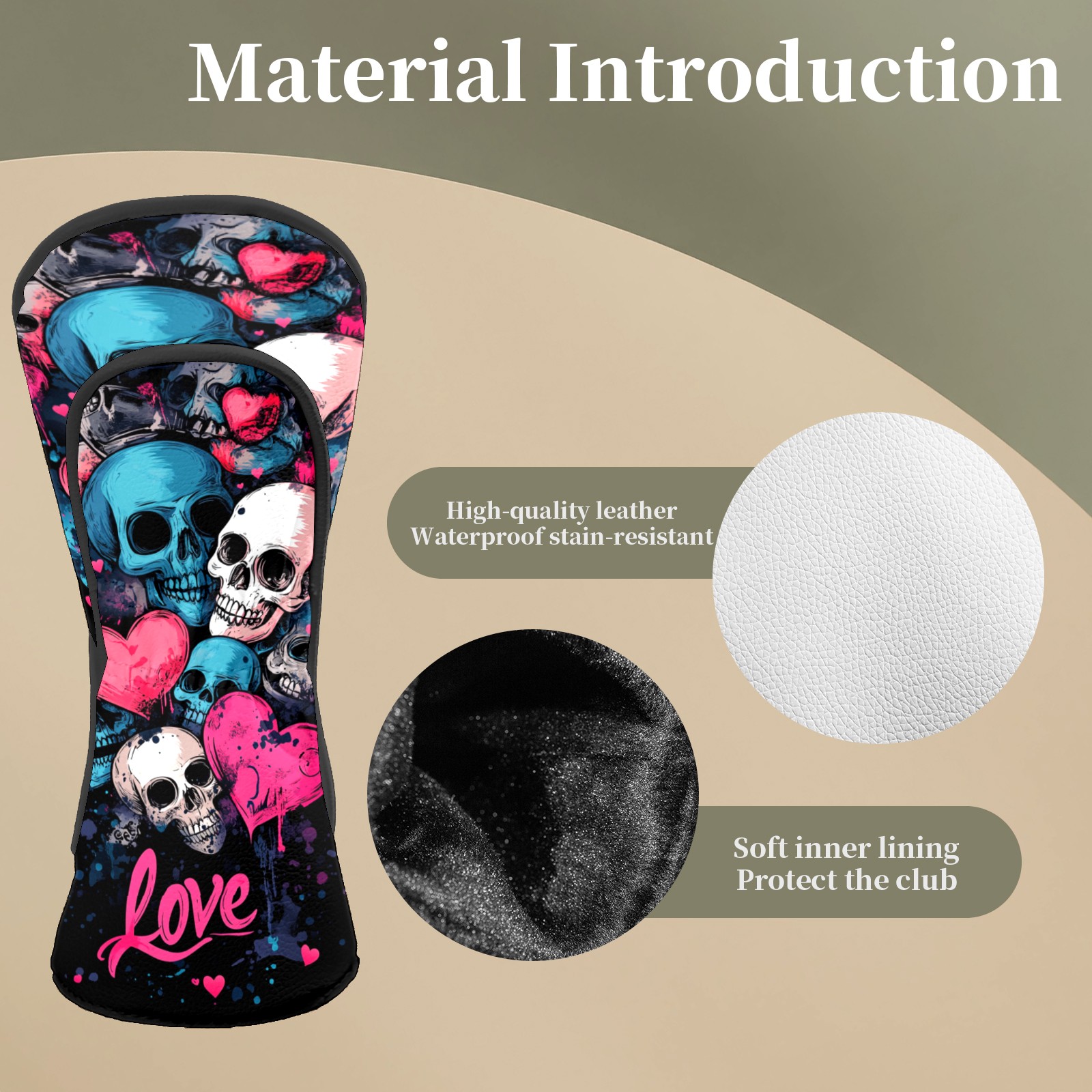 Golf Head Covers Fit Driver Headcover, Fairway Wood, and Hybrid Covers for Skull Pattern Design, Waterproof PU Leather, Classic Golf Gift & Accessories for Golfers