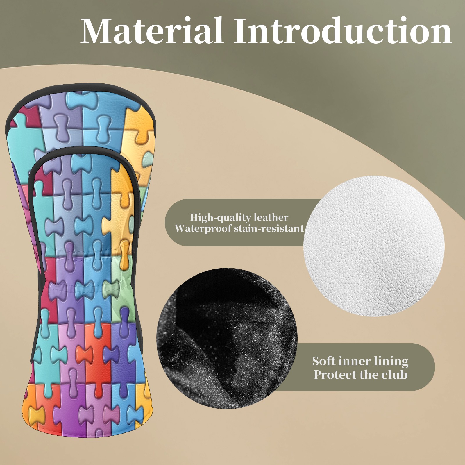 • <p>Made of PU leather, it can be easily cleaned with a damp cloth. The club head protectors safeguard your clubs from impacts inside the bag, weather conditions, and accidental damage, while also keeping your clubs clearly visible and adding a touch of personal style.</p> <p>Suitable for various club types including Driver, Fairway Woods, Hybrids, Putters, and Irons. Artisan Golf is committed to providing high-quality accessories to enhance your golfing experience.</p>