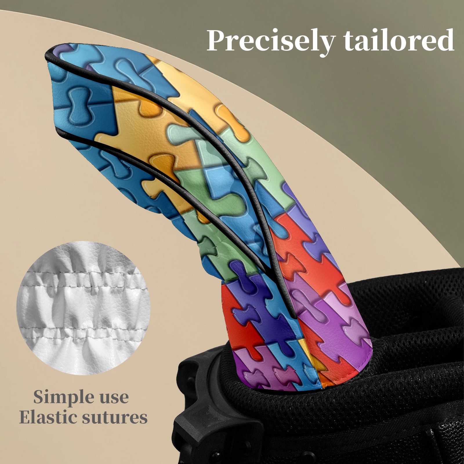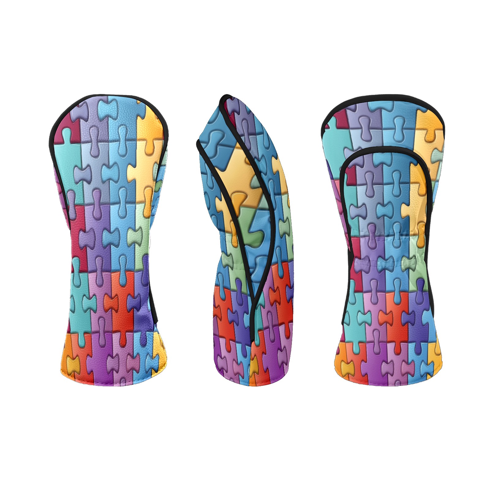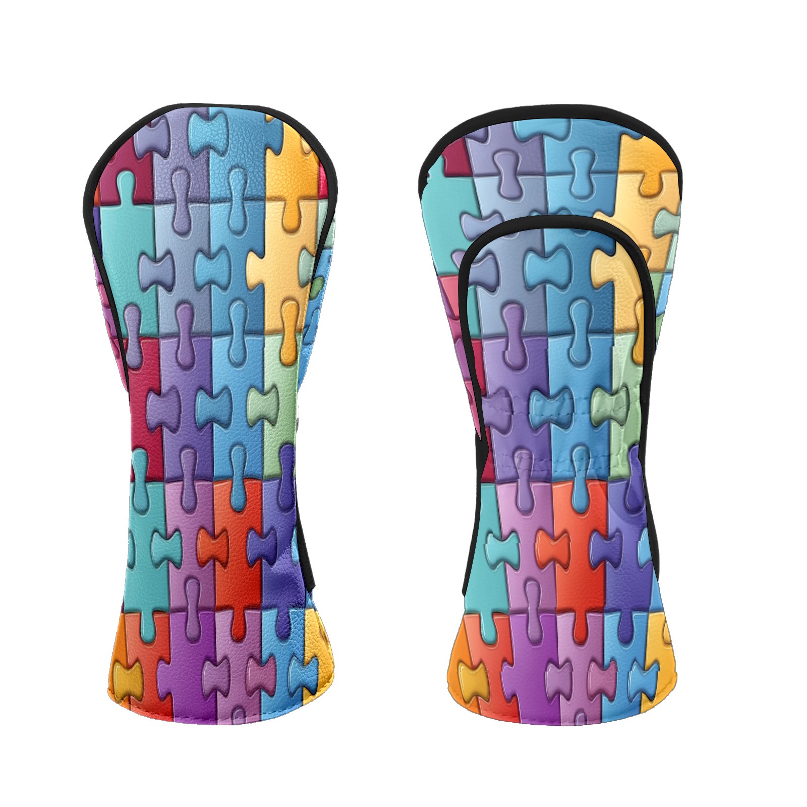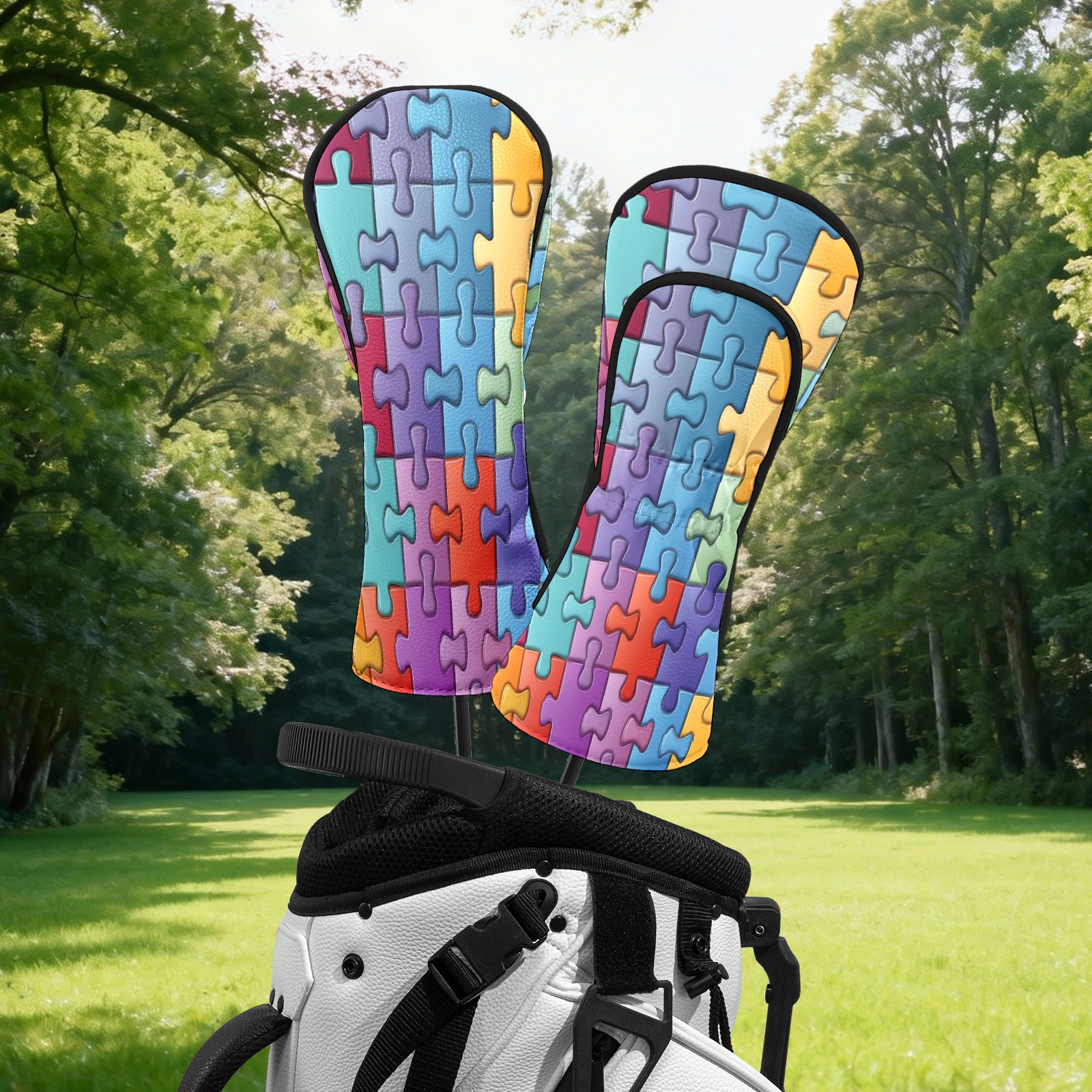 Golf Head Covers Fit Driver Headcover, Fairway Wood, and Hybrid Covers for Puzzle Pattern Design, Waterproof PU Leather, Classic Golf Gift & Accessories for Golfers